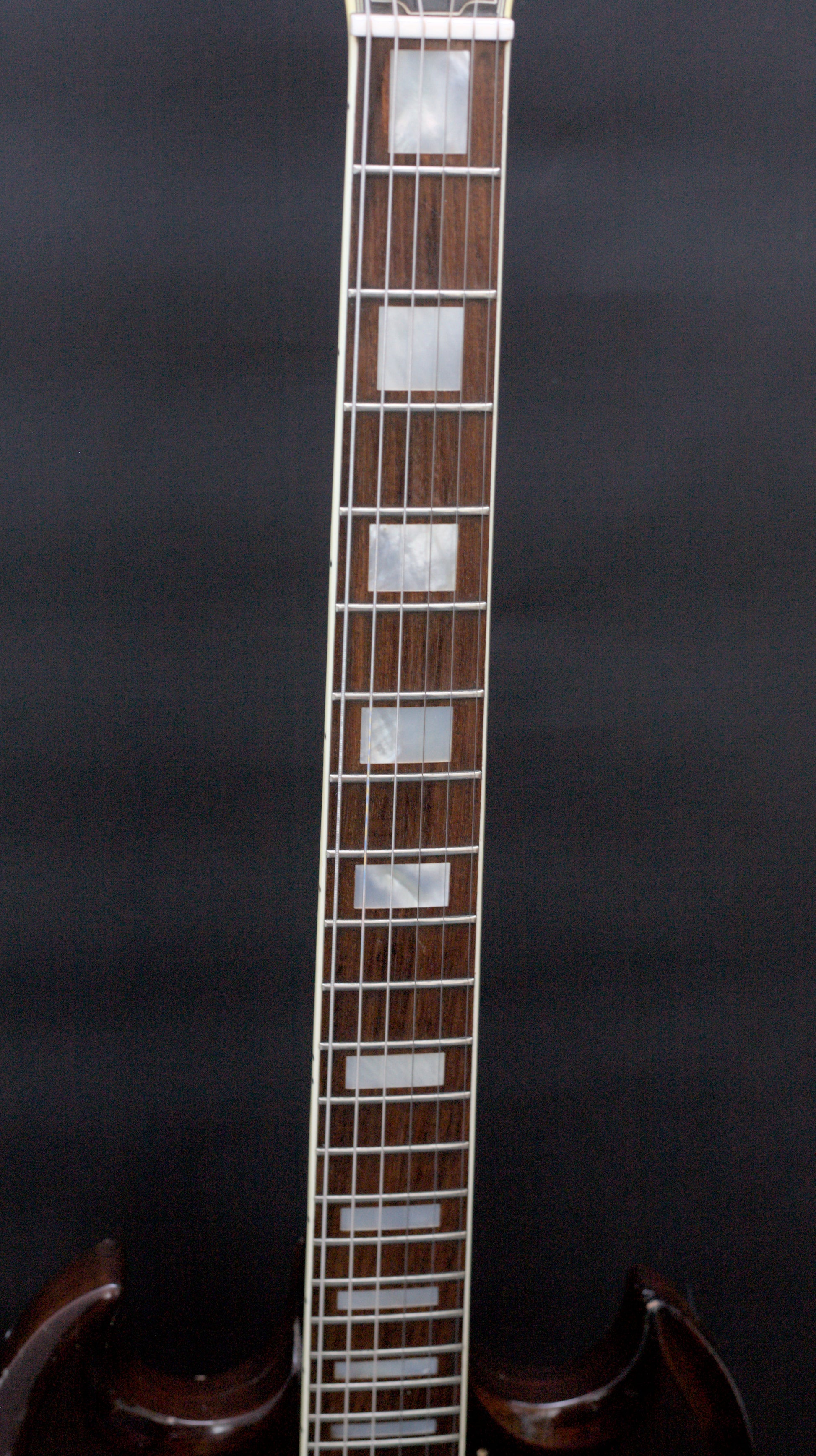 Lawsuit guitars are high-quality copies of popular American brand name guitars (like Fender and Gibson) produced by Japanese companies in the 1970s. These Japanese lawsuit guitars are of legendary quality and are highly sought after. This SG Custom copy is no different. The build quality is great and compares favourably to its far more expensive American cousin.