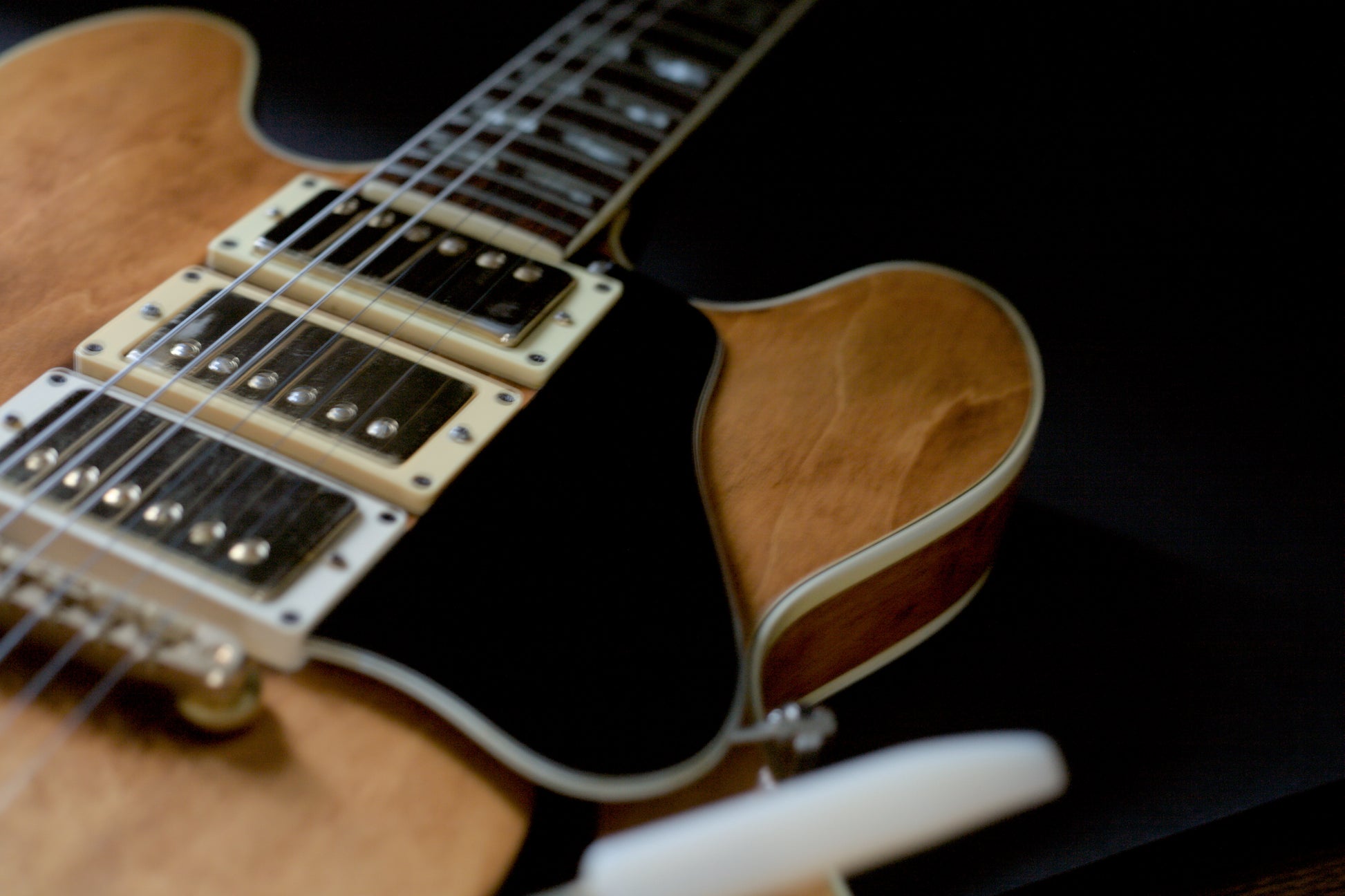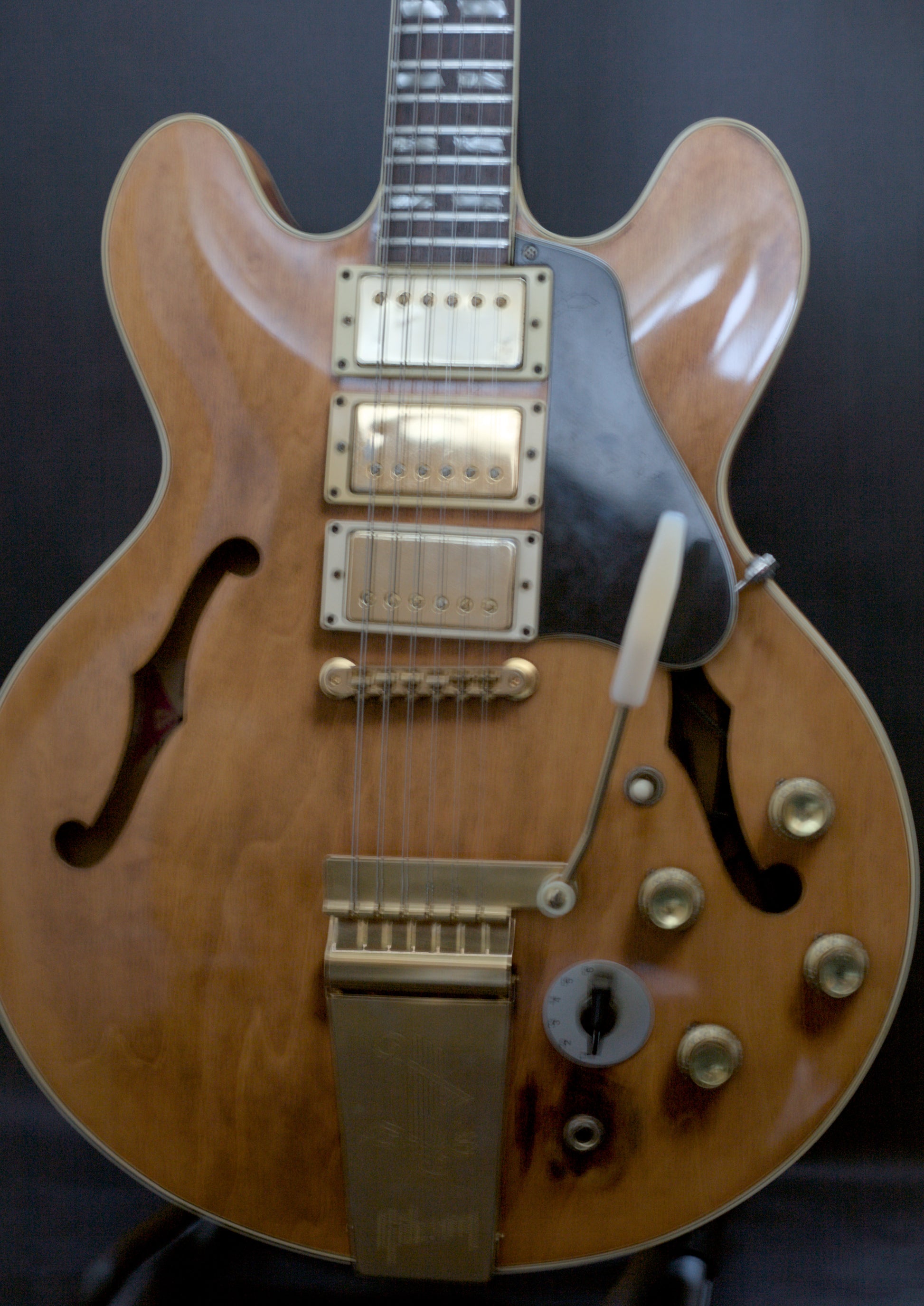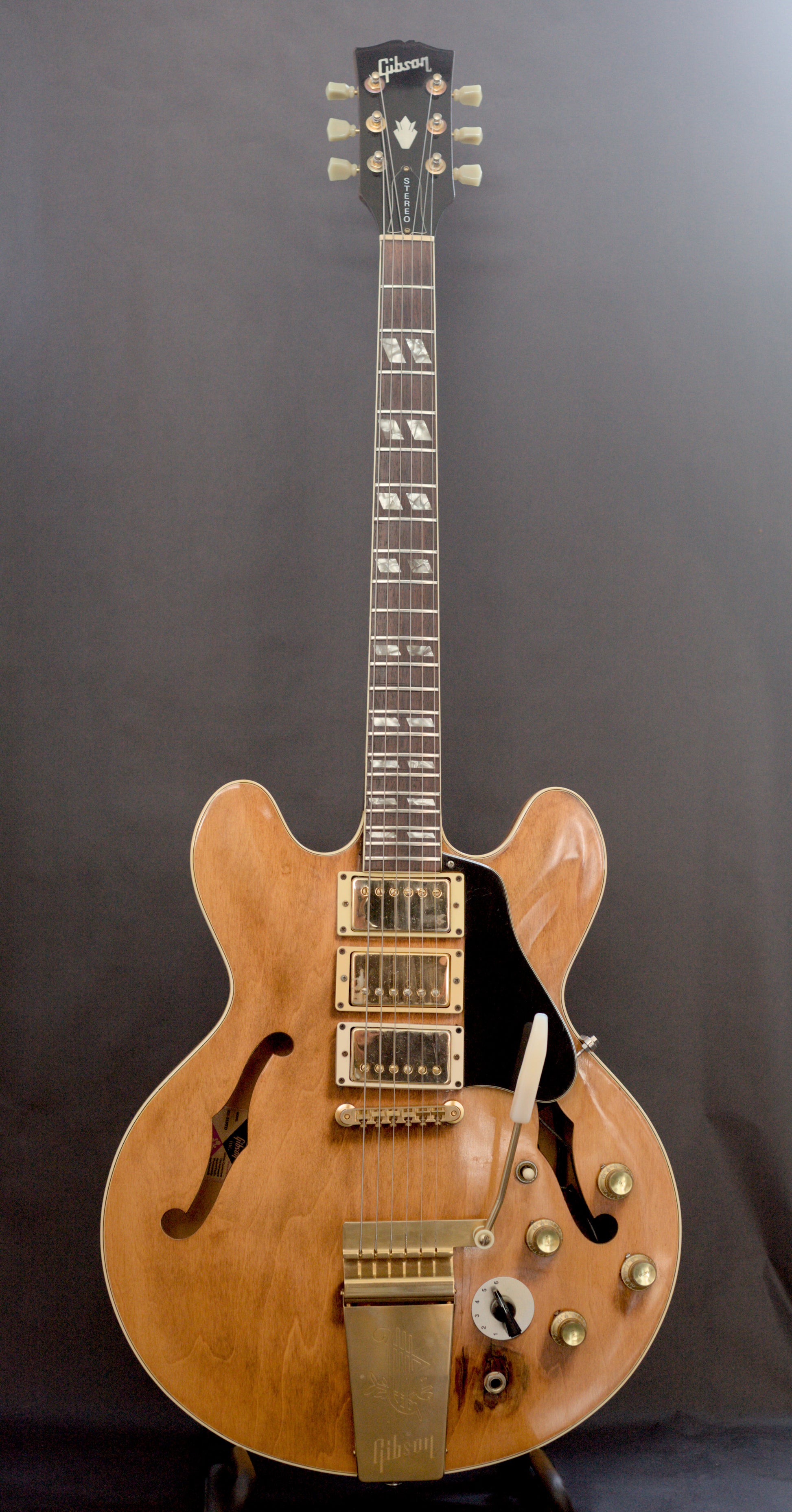 The ES-345 is essentially an upscale version of the 335, and sports the classy double-parallelogram fretboard inlays and a chunky neck.