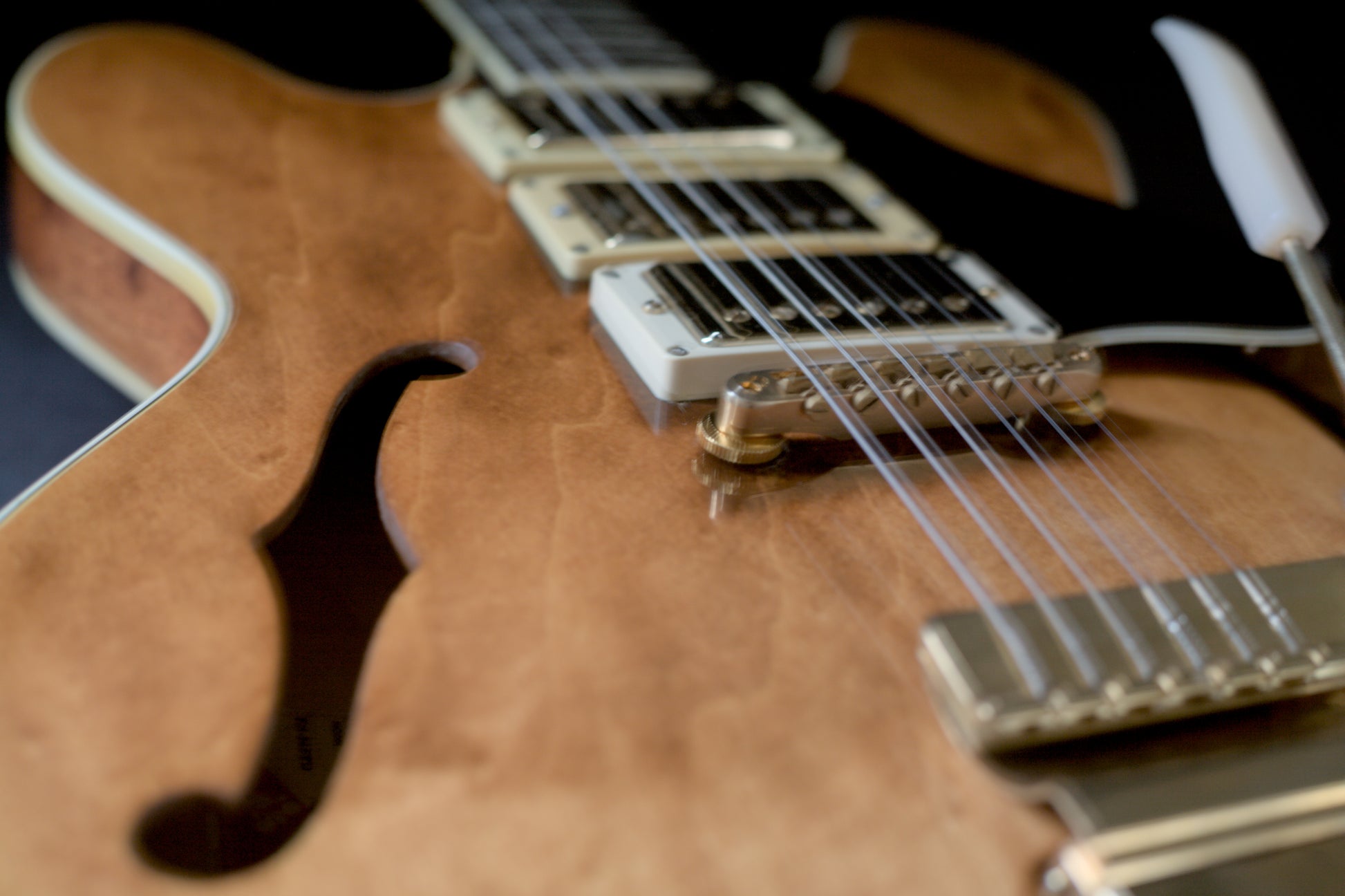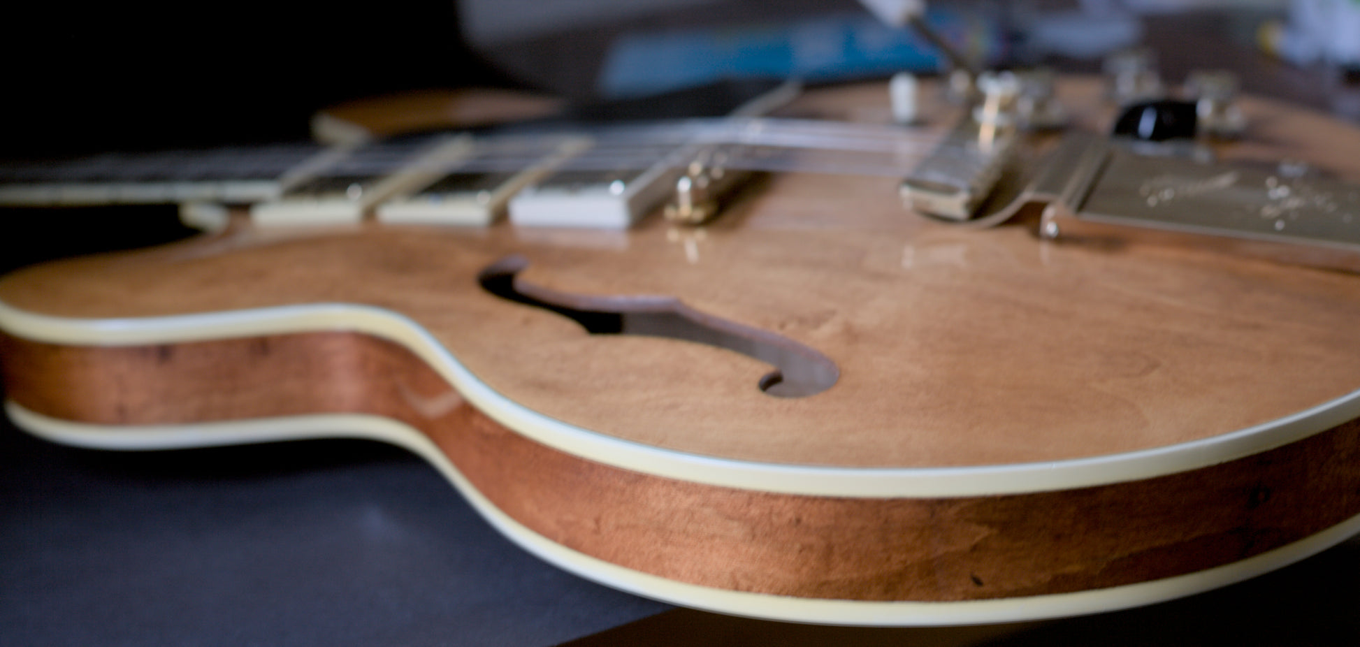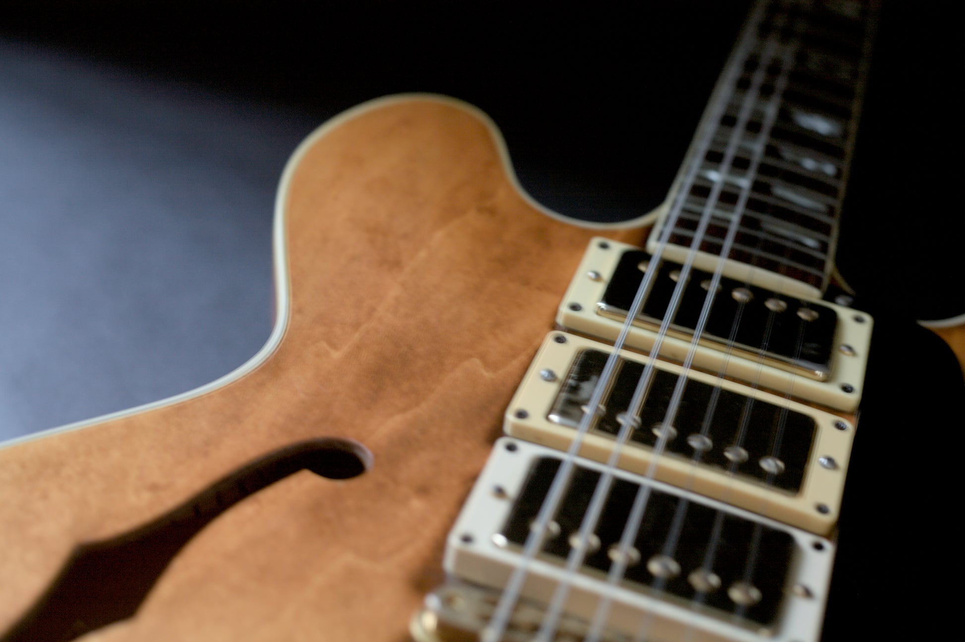 The ES-345 is essentially an upscale version of the 335, and sports the classy double-parallelogram fretboard inlays and a chunky neck.