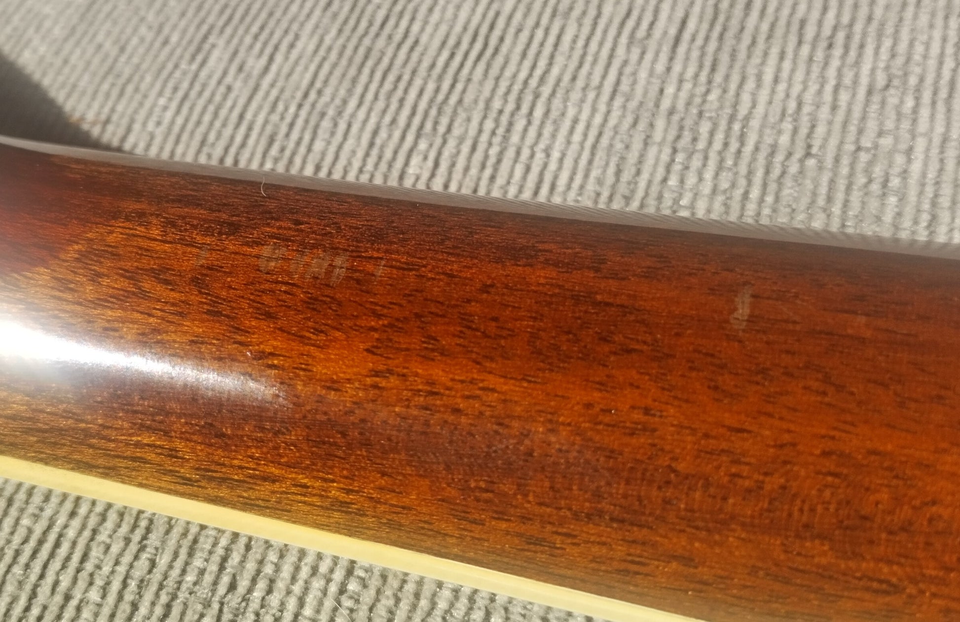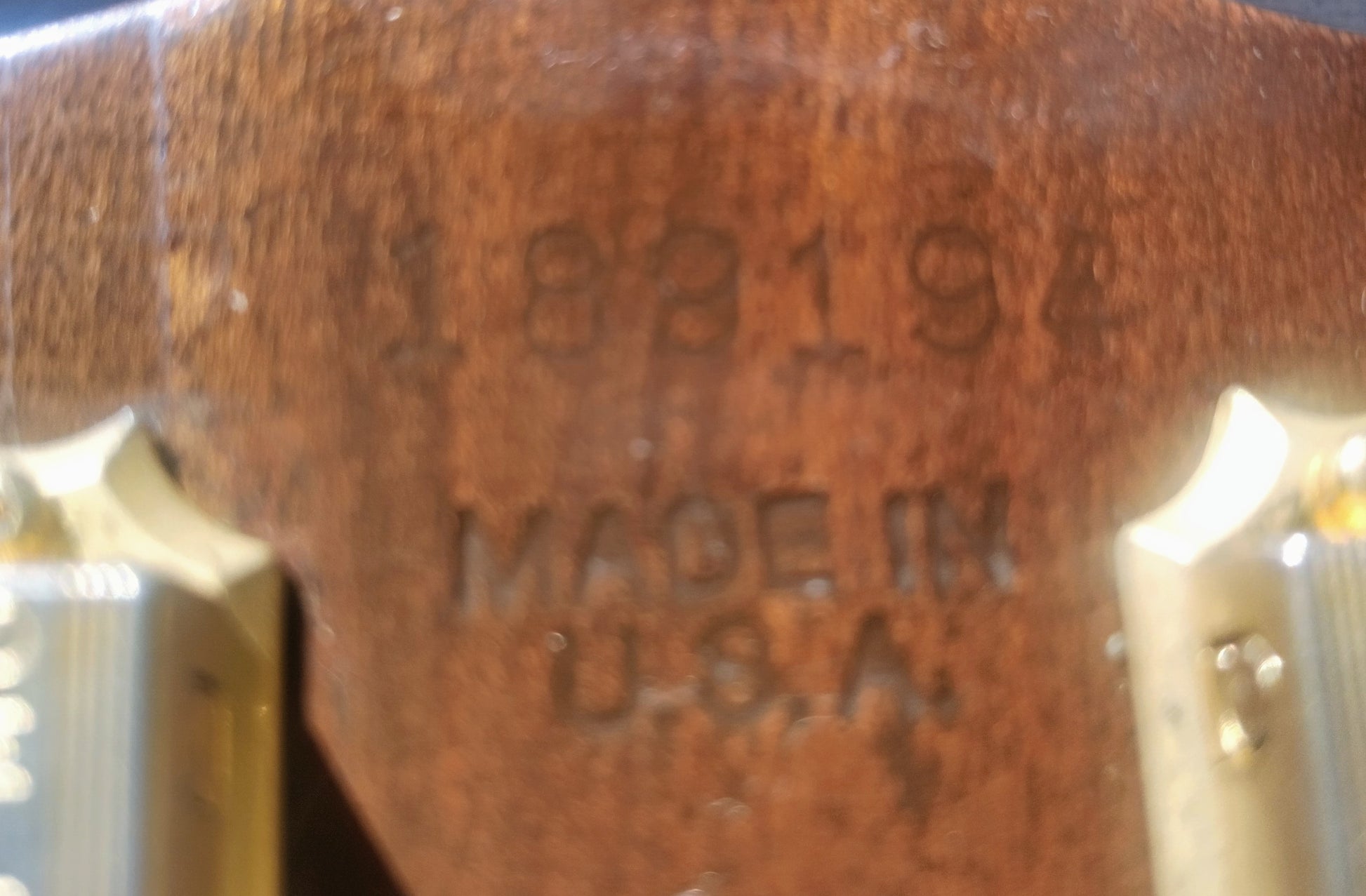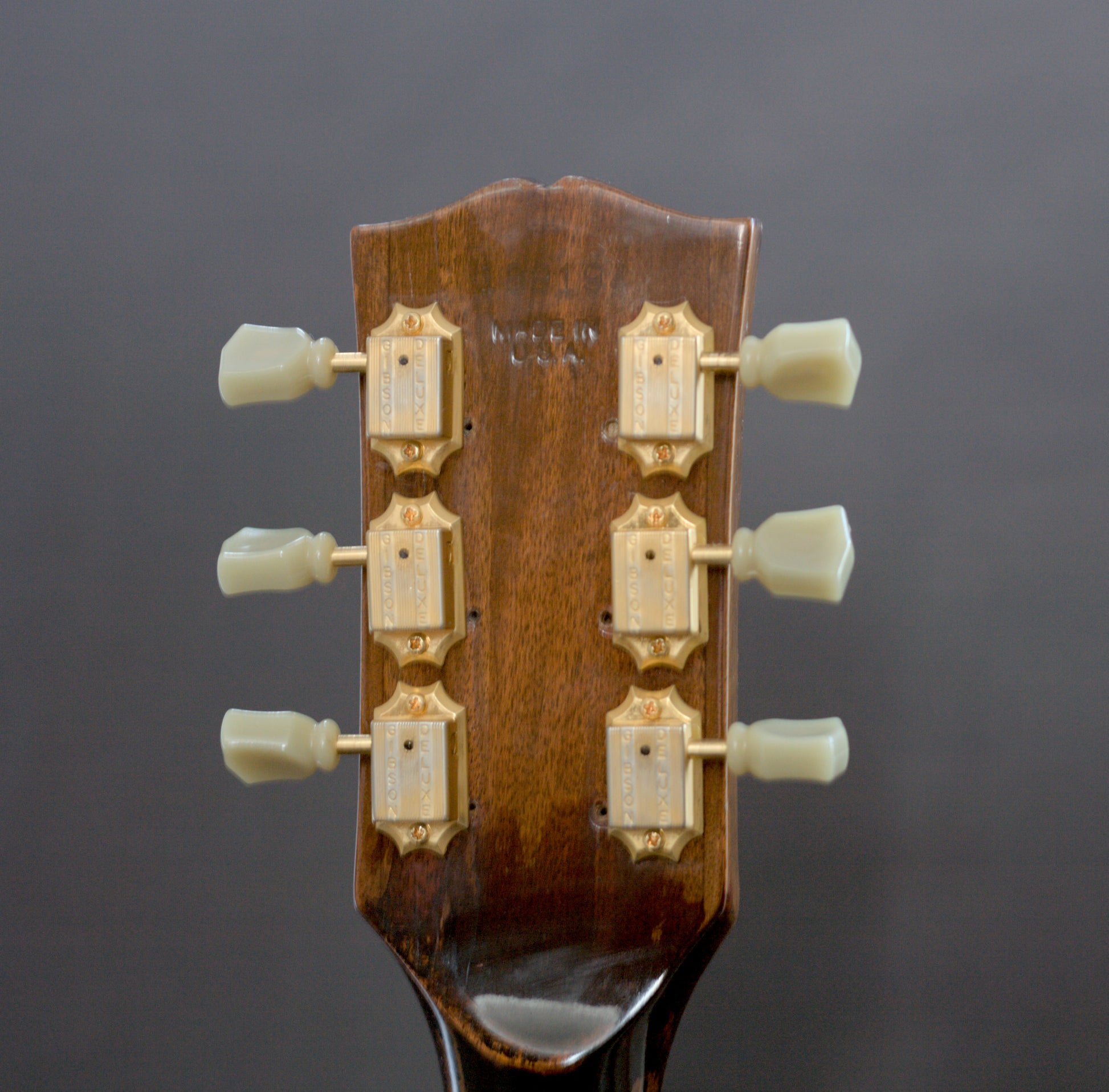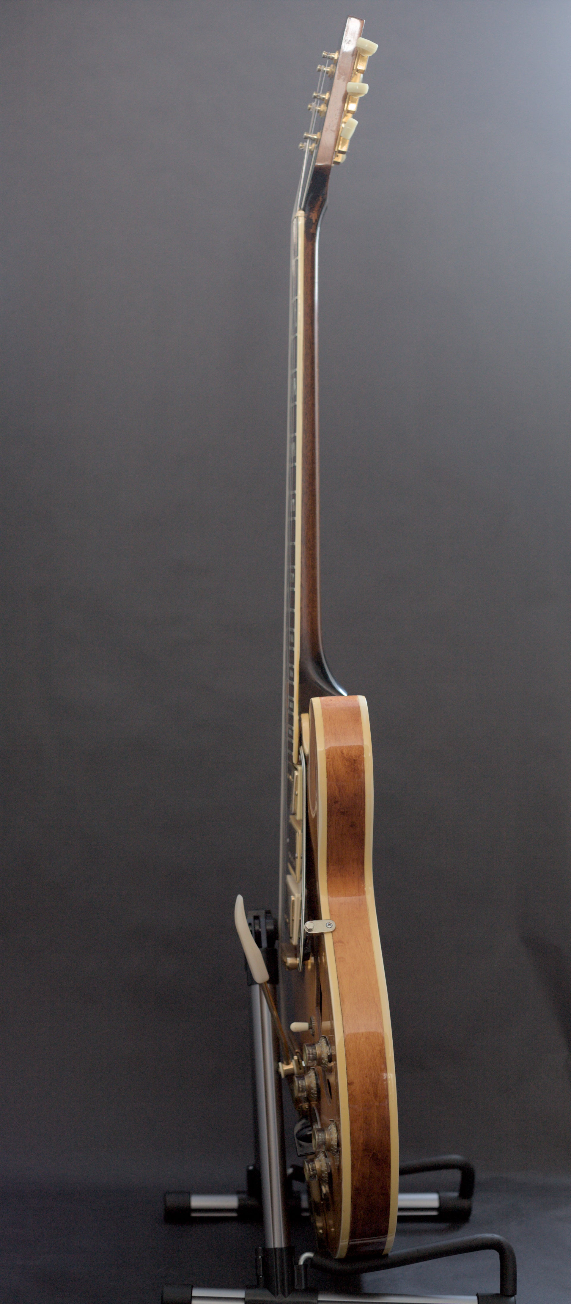 There are no breaks or cracks and the guitar has been x-rayed to have this confirmed. There is a tidy repair to the output jack area. The gold on the pickups covers and bridge have tarnished some.he binding has yellowed over the years, as to be expected. There are some light some light dings to the front of the body, although these are all very faint. There are some light pick marks to the scratch plate. There is some small ding marks to the reverse of the body and some light buckle scratches. There are some faint scuff marks to the back of the neck at the 2nd, 3rd and 5th fret regions, although these do not affect playing at all. There is a fine lacquer crack to the left hand side of the reverse of the headstock where the replacement tuners have been fitted, as is often the case. There are couple of small dings to the top of the headstock.
