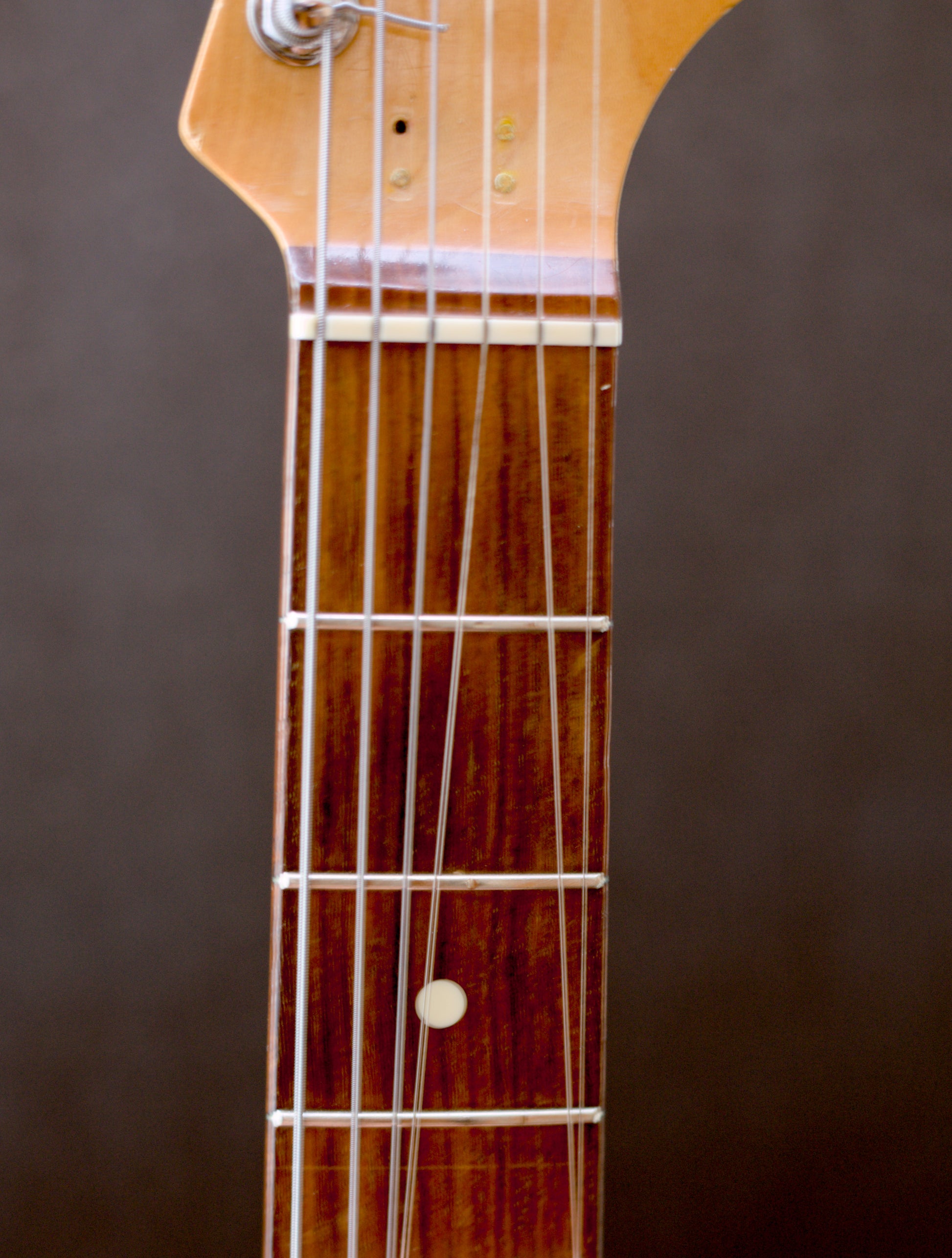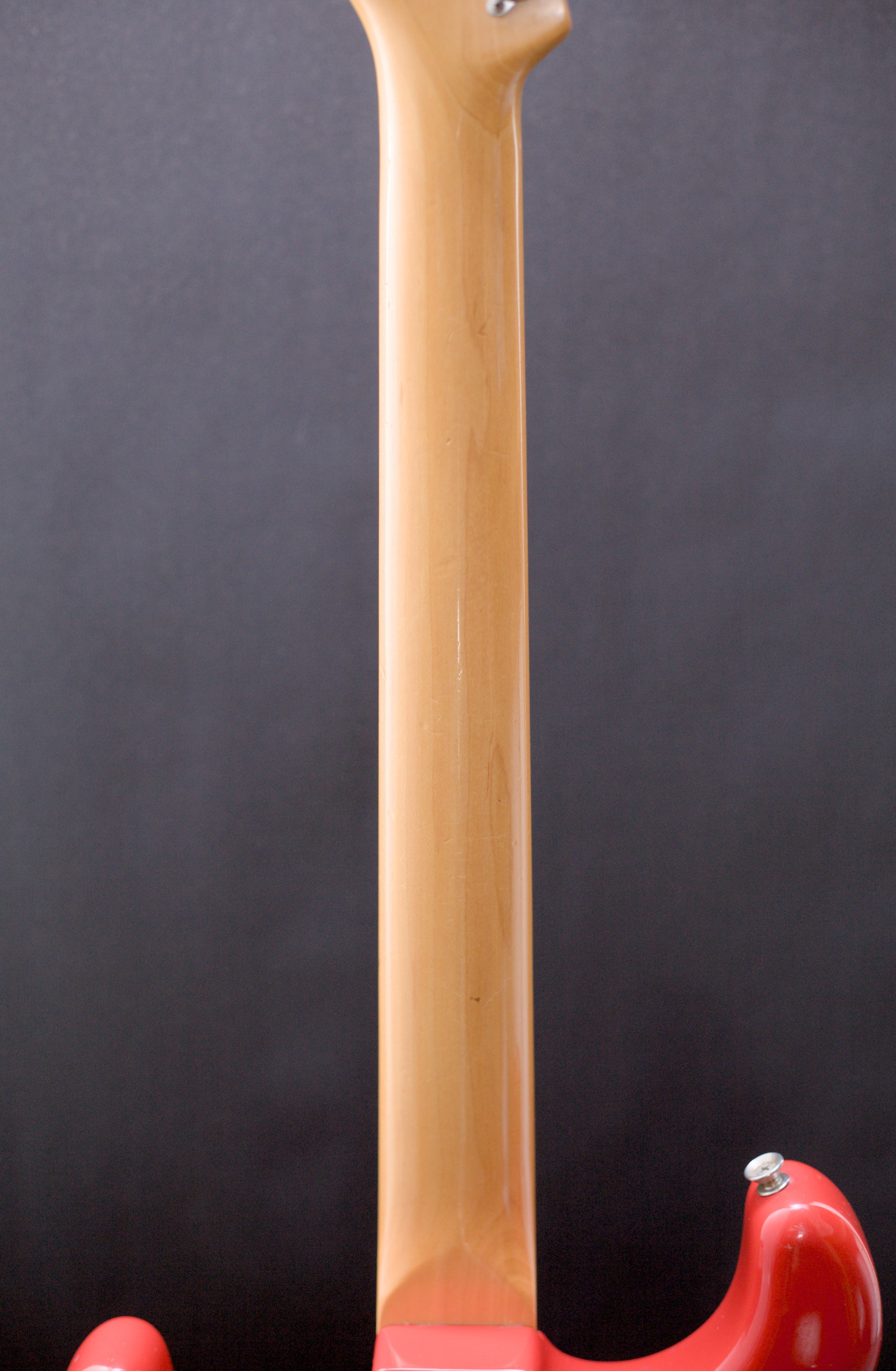 This Strat is a brilliant player. It has had quite a life, as so many of the best playing instruments do, and has plenty of nicks and dings. It has at some point had a locking nut and tremolo installed, so has a hole at the lower head stock and indentations below the bridge where they used to be. This therefore is not one for the collector. It is though in great working order throughout and is an excellent playing and sounding guitar, one for a player who wants a fantastic quality, Japanese made Stratocaster which is not going to break the bank.