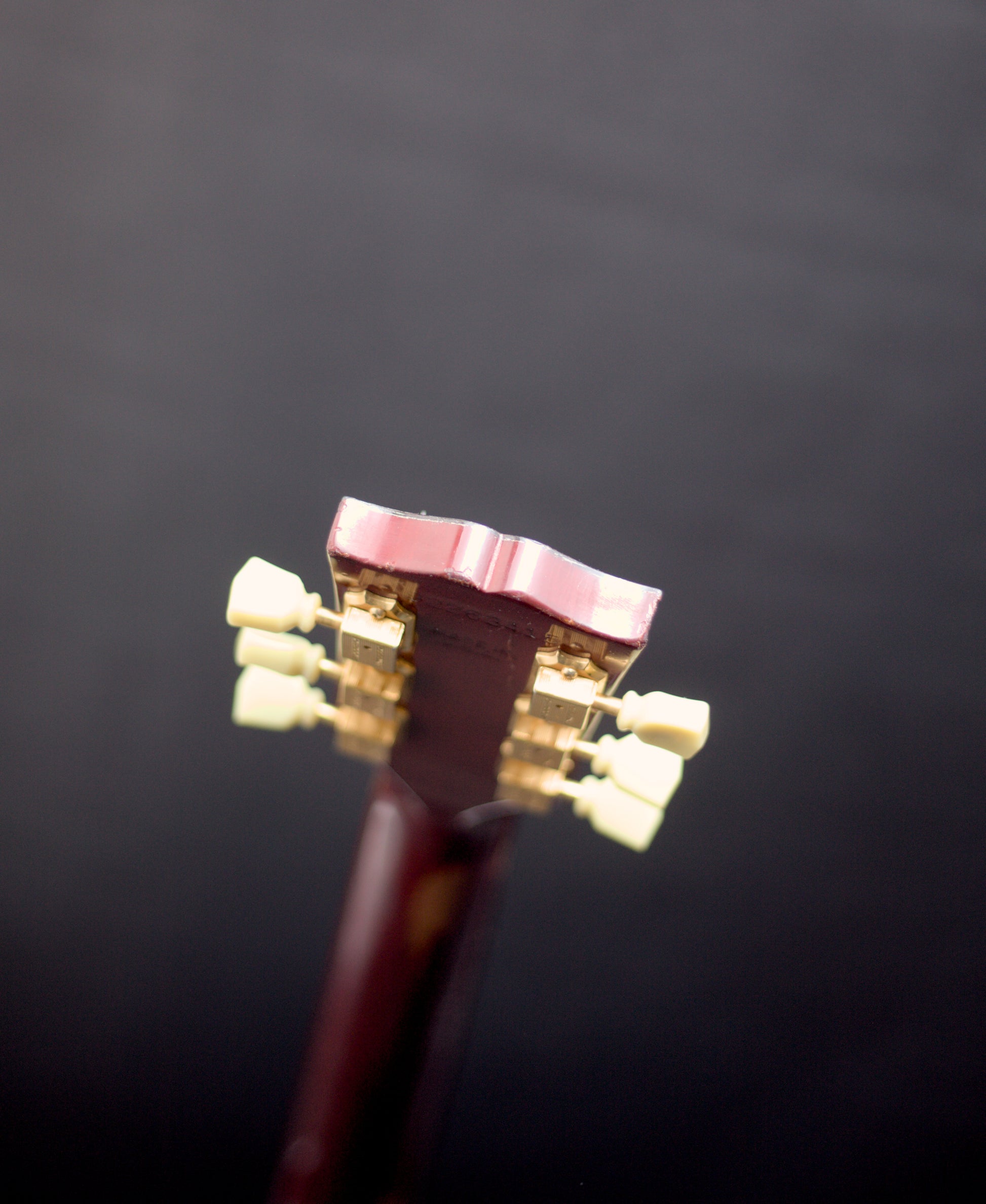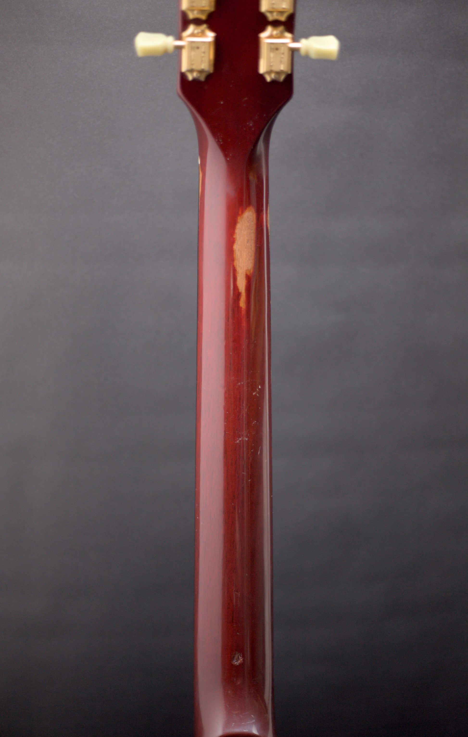 It is well played with plenty of dings, light scratches and playwear. The gold has tarnished with age. It is though completely original, with no breaks or repairs, and the frets are in good shape.