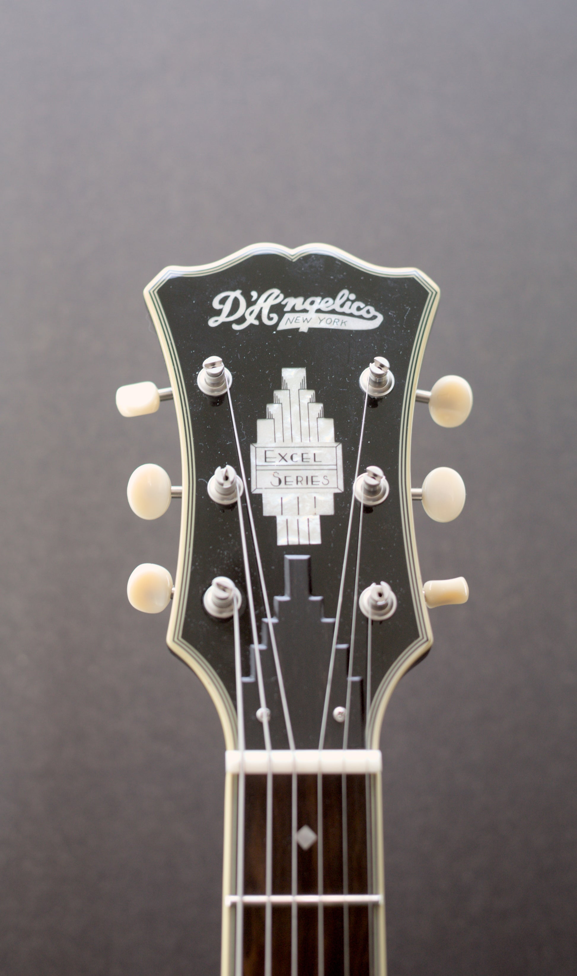 Representing a more minimalistic D'Angelico aesthetic, the Excel DC Tour features a Throwback Scroll-Style headstock with custom Vintage Deluxe tuners from Grover and small diamond fingerboard inlays complemented by 1930s-inspired diamond f-holes on its 16-inch wide body.
