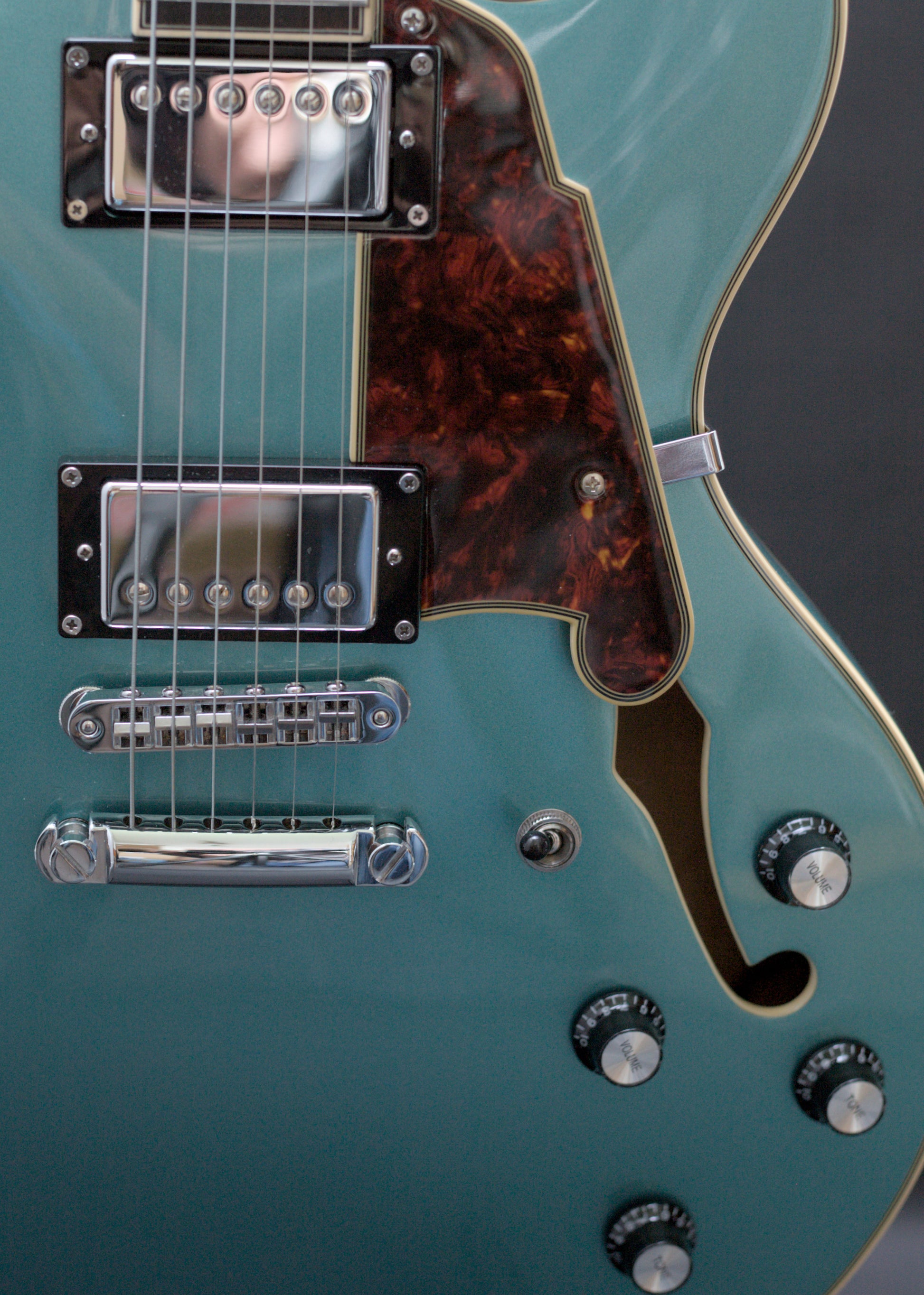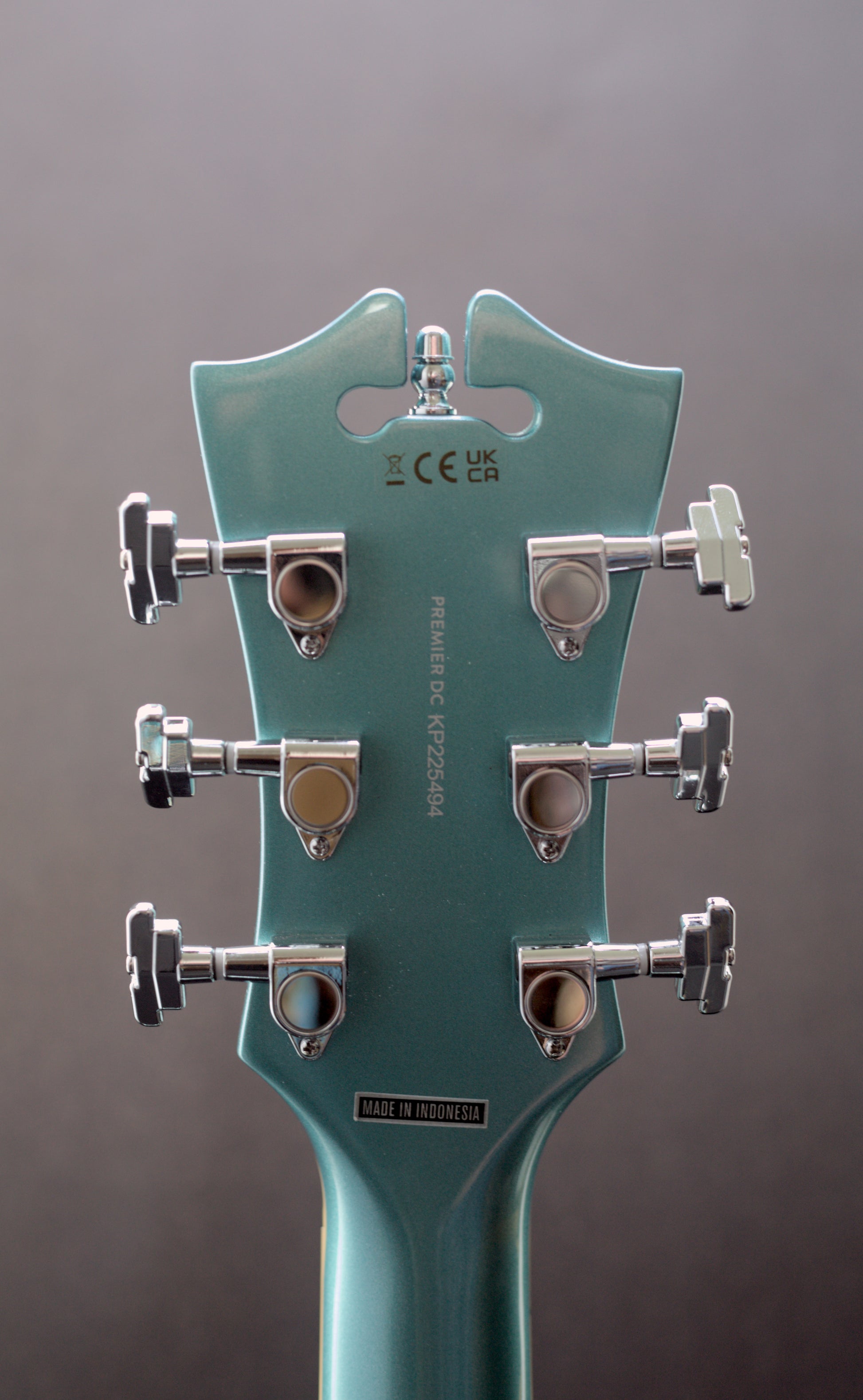 The Premier DC is a powerful double-cutaway semi-hollow offering bold tones.