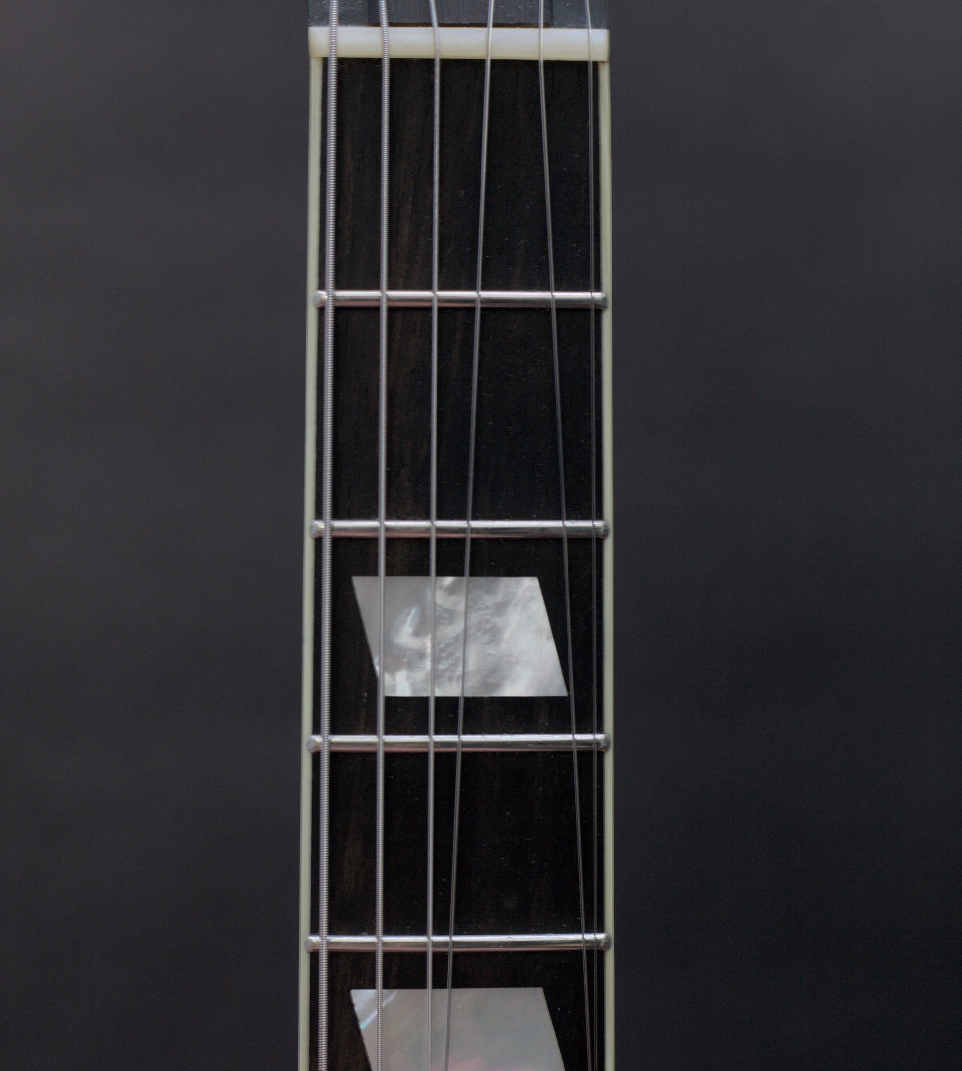 The Maple neck has a sweet Ebony fingerboard that benefits from 22 Jescar frets, a 24.75" scale length and 12" radius. With parallelogram inlays it has a real vintage vibe. It’s C-shape feels smooth, comfortable and familiar.