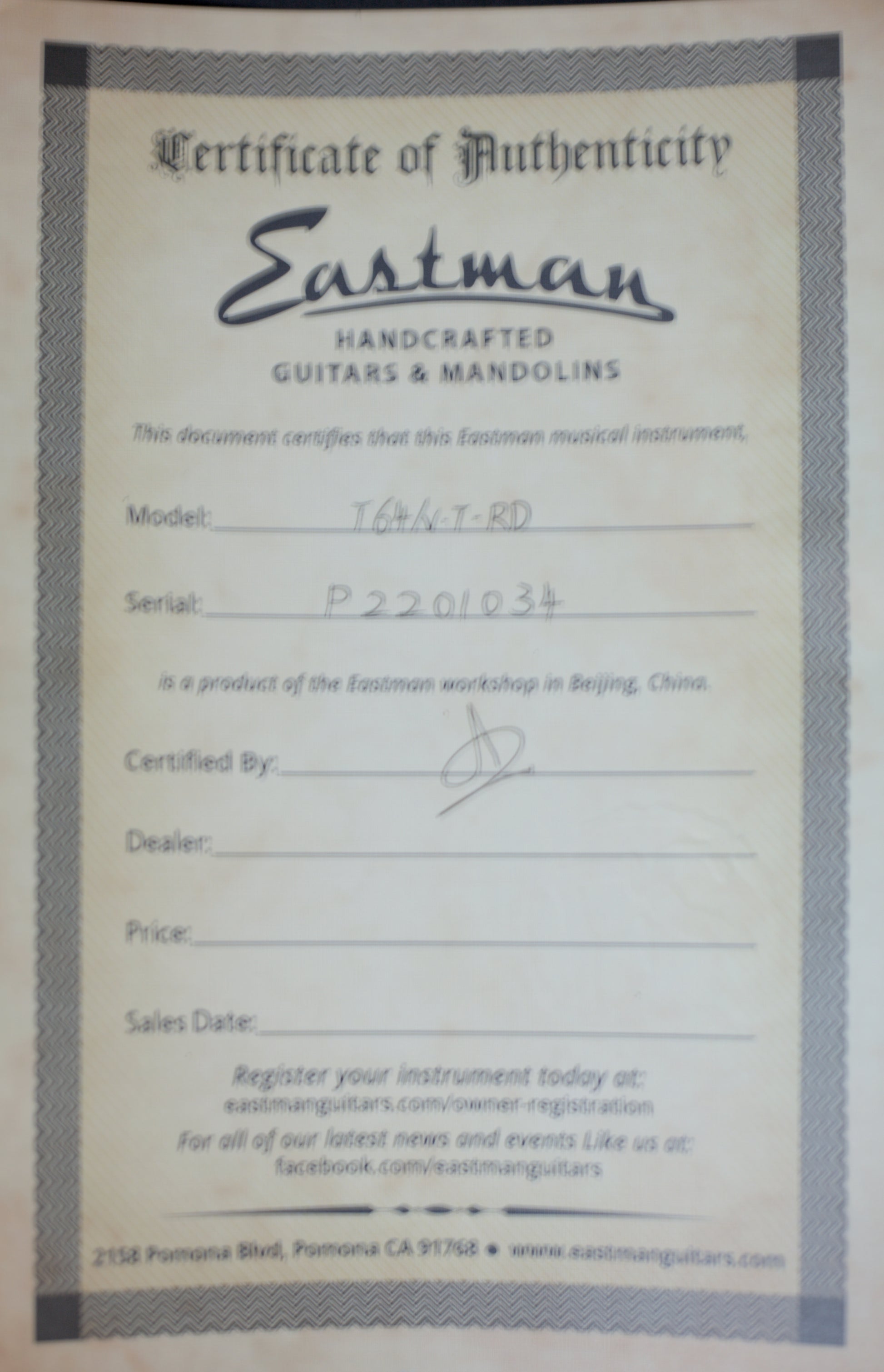 Eastman T64/V-RD Thinline 2022- Antique Red Varnish - MINT
