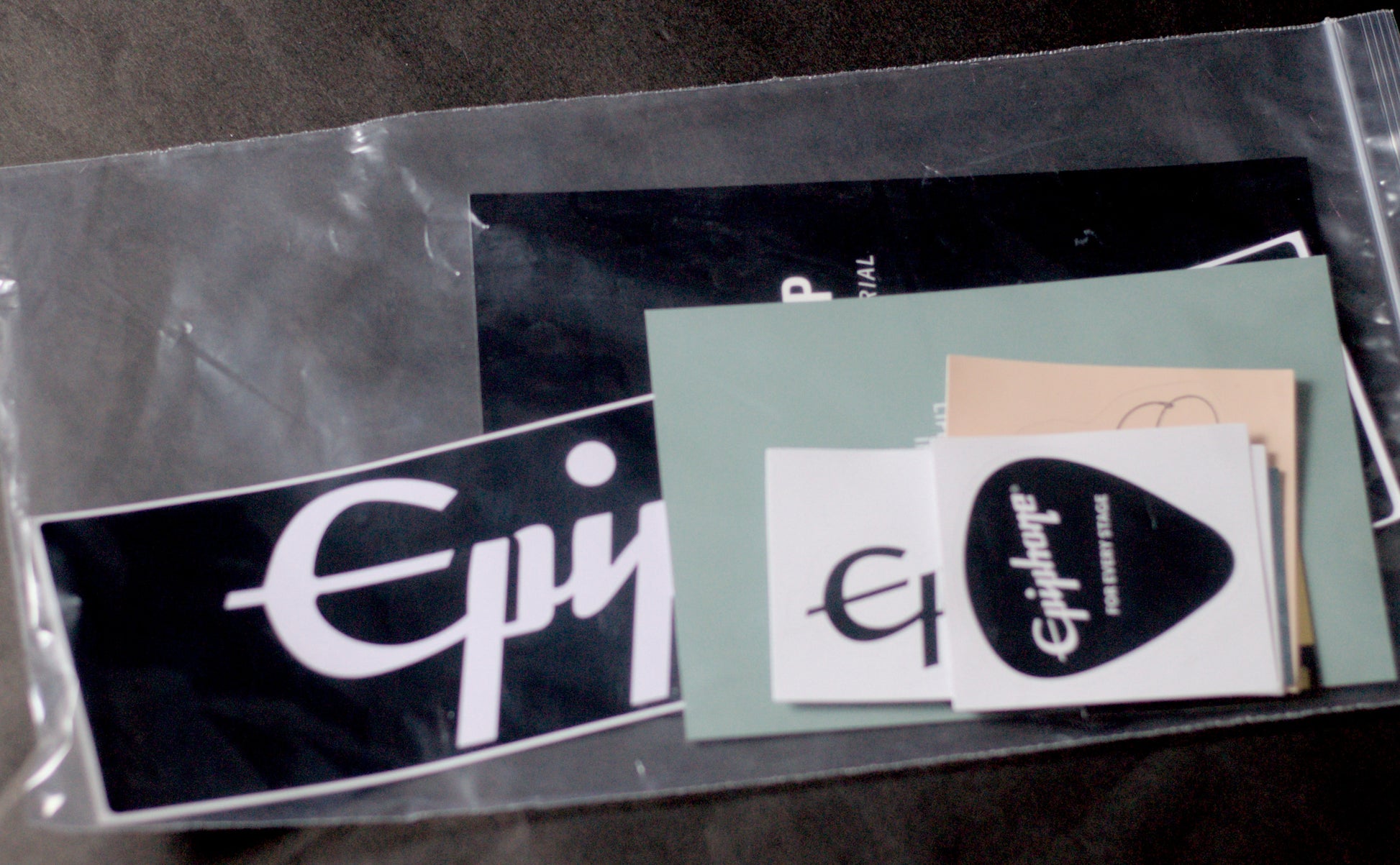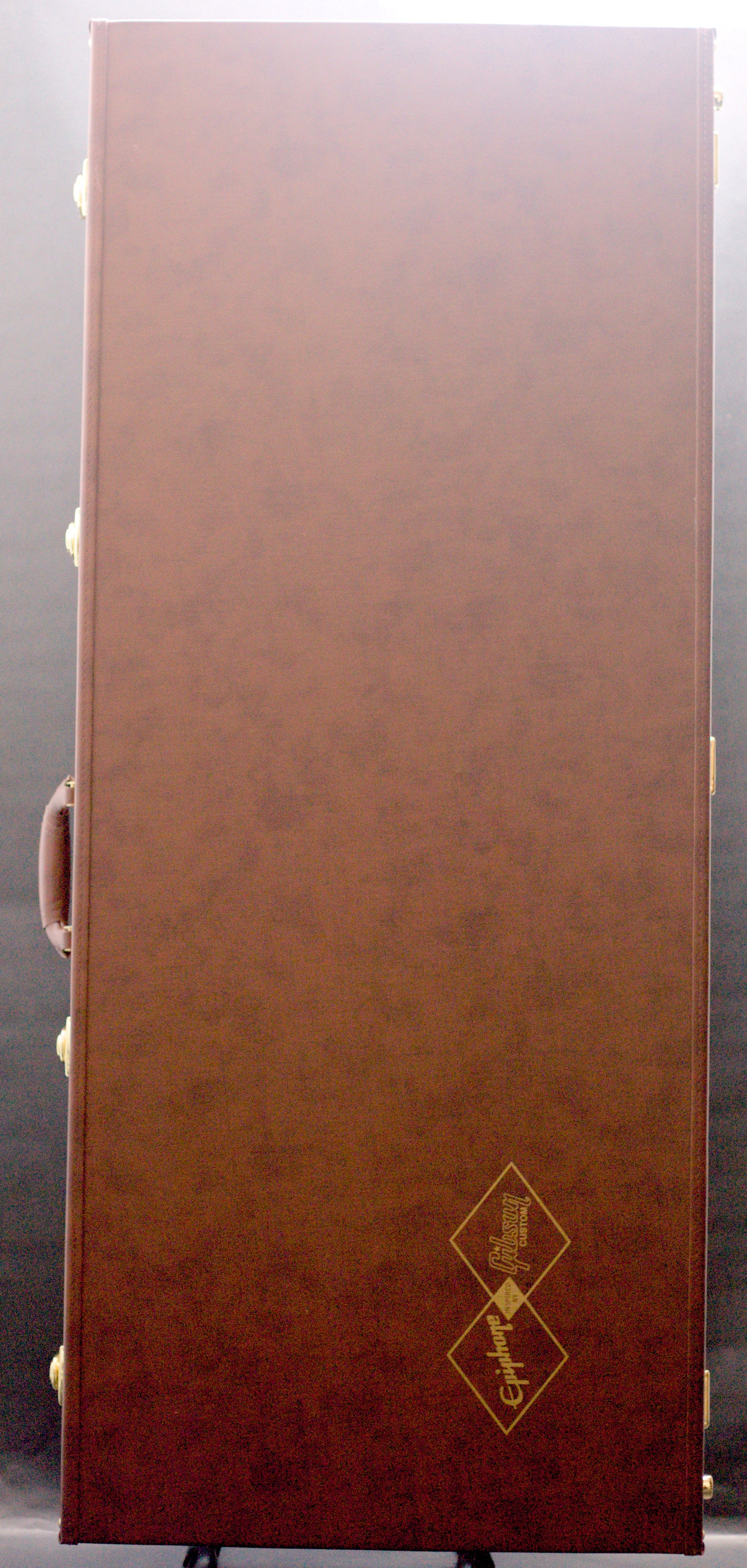 This beautiful instrument is in mint condition throughout. It still has the plastic on the pickguard and control cavity cover. It comes in its original hard case with Epiphone branded stickers and case candy.
