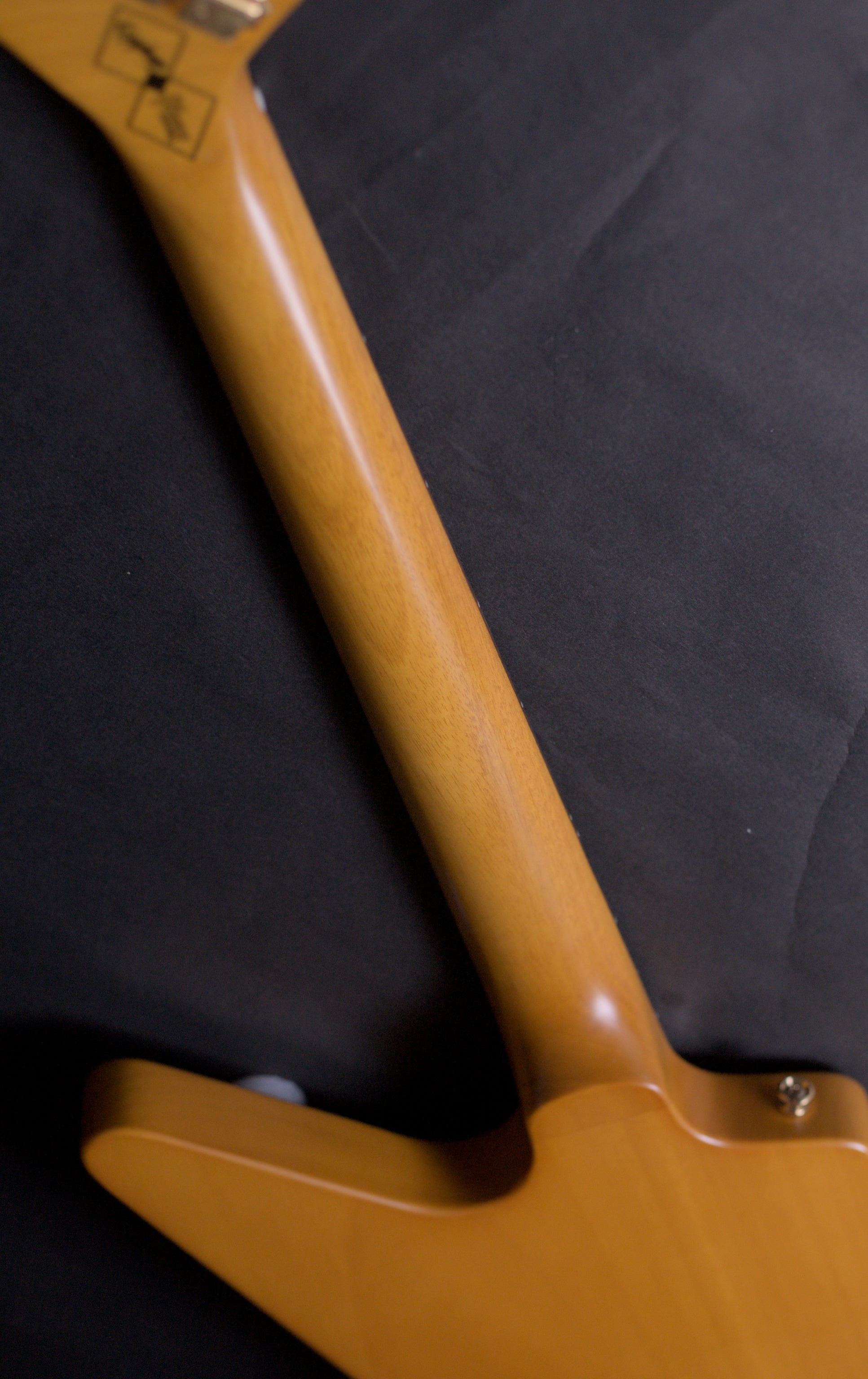 Drawing inspiration from the ultra-rare original Gibson models from 1958, this extraordinary guitar effortlessly captures the essence of its predecessors. At its core lies a solid Korina body, meticulously crafted to replicate the vintage aesthetics and tonal characteristics that have enthralled guitar enthusiasts for decades. The accompanying Korina neck features a long neck tenon, a hallmark of the 1958 Explorer, ensuring unparalleled sustain, resonance, and overall playability. With a 1958 Explorer neck profile, this instrument offers a supremely comfortable and familiar feel, empowering you to unleash your musical creativity with absolute confidence.