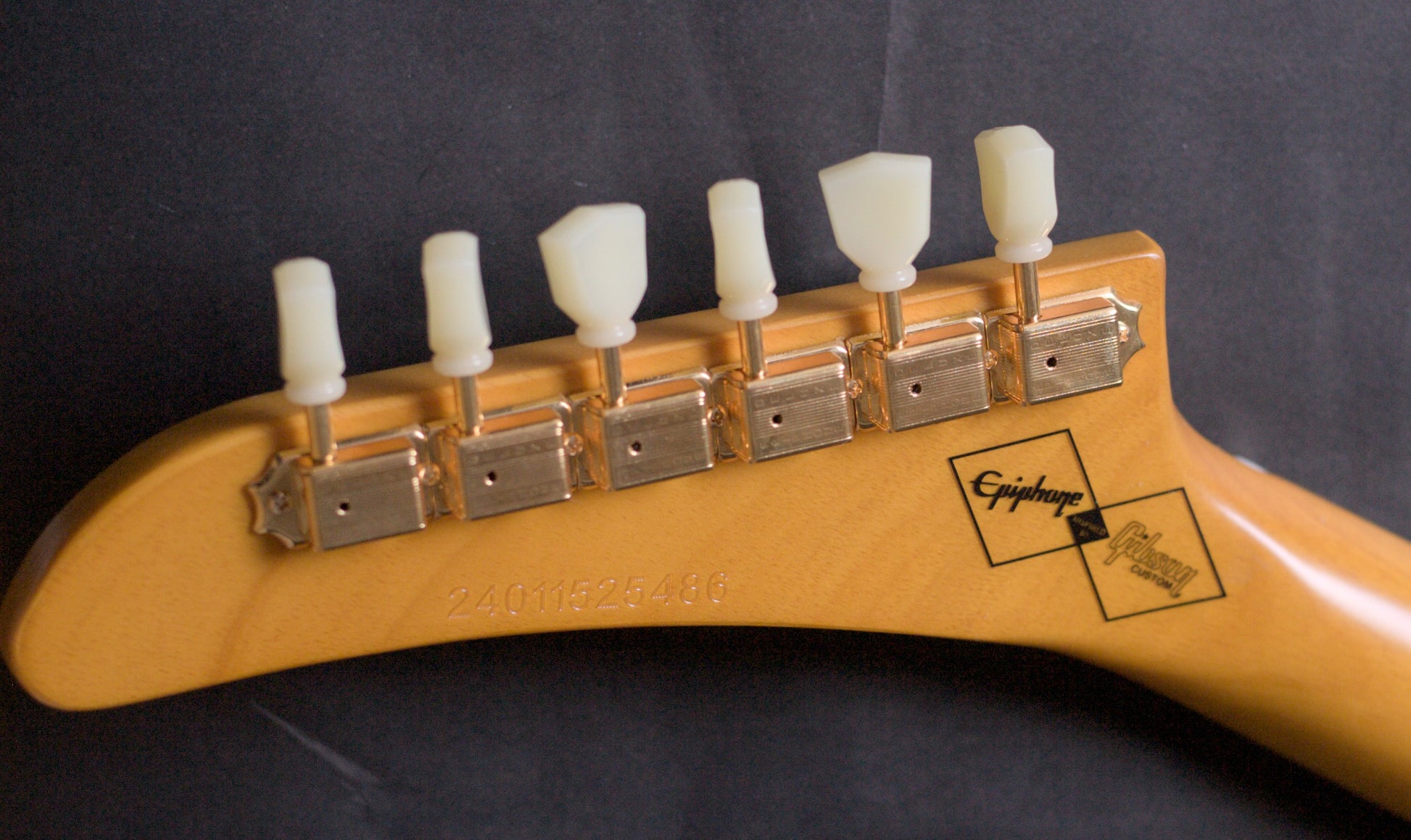 To further elevate its appeal, the Epiphone 1958 Korina Explorer is adorned with exquisite appointments. The Indian laurel fretboard exudes elegance and smoothness, providing the perfect platform for your fingers to effortlessly glide across the 22 medium jumbo frets. The Graph Tech nut ensures precise string spacing and impeccable tuning stability, allowing you to explore the full spectrum of your musical expression without compromise.