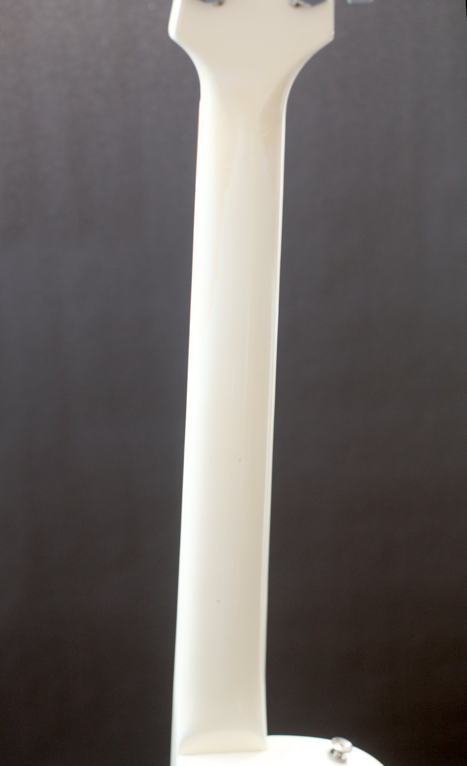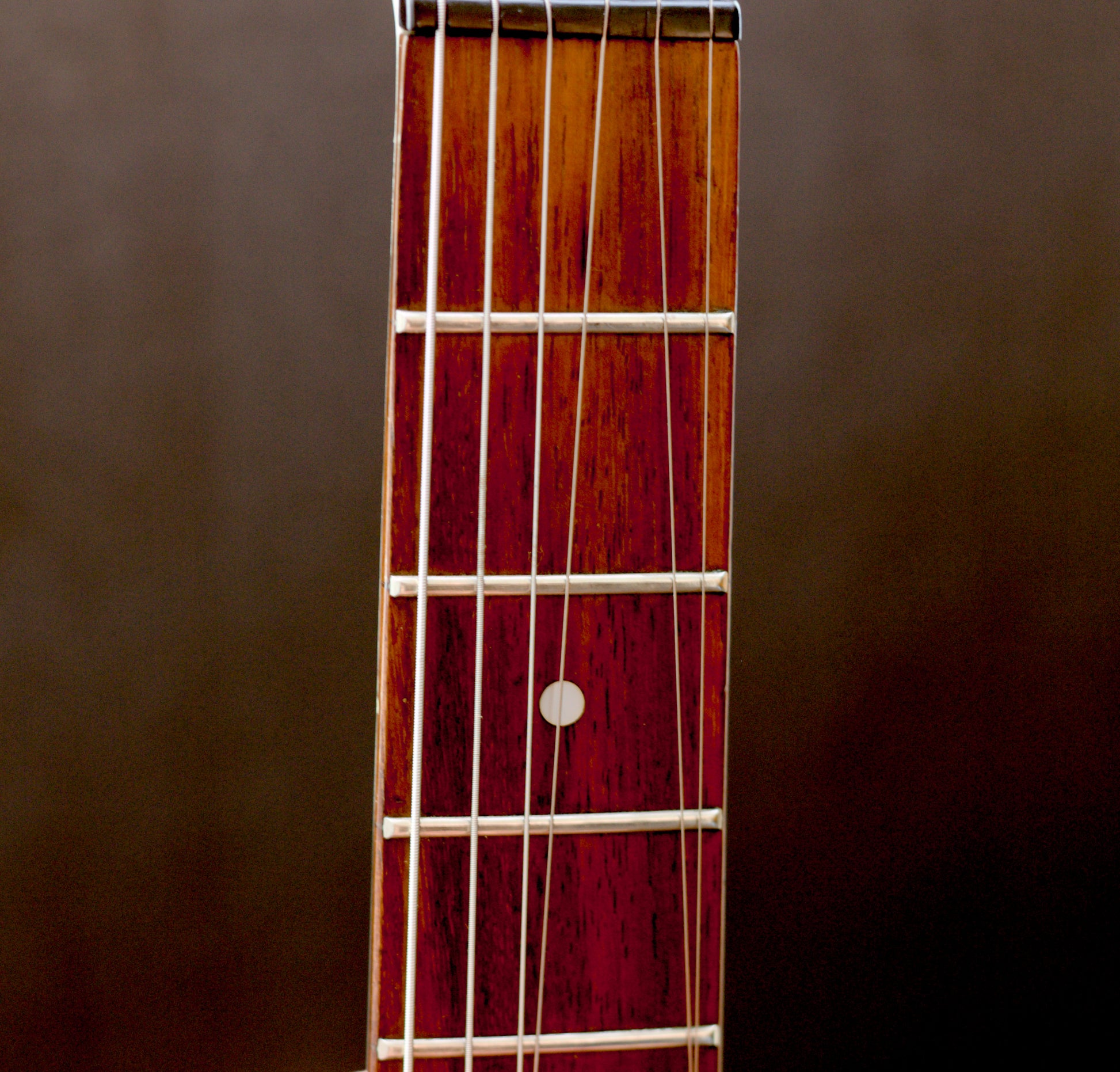 It is well played and shows signs of use throughout. It is in excellent working order though, there are no breaks, cracks or repairs, and it is totally original. There are some dings to the body and some fine finish cracks at neck pocket. The frets are in good shape.