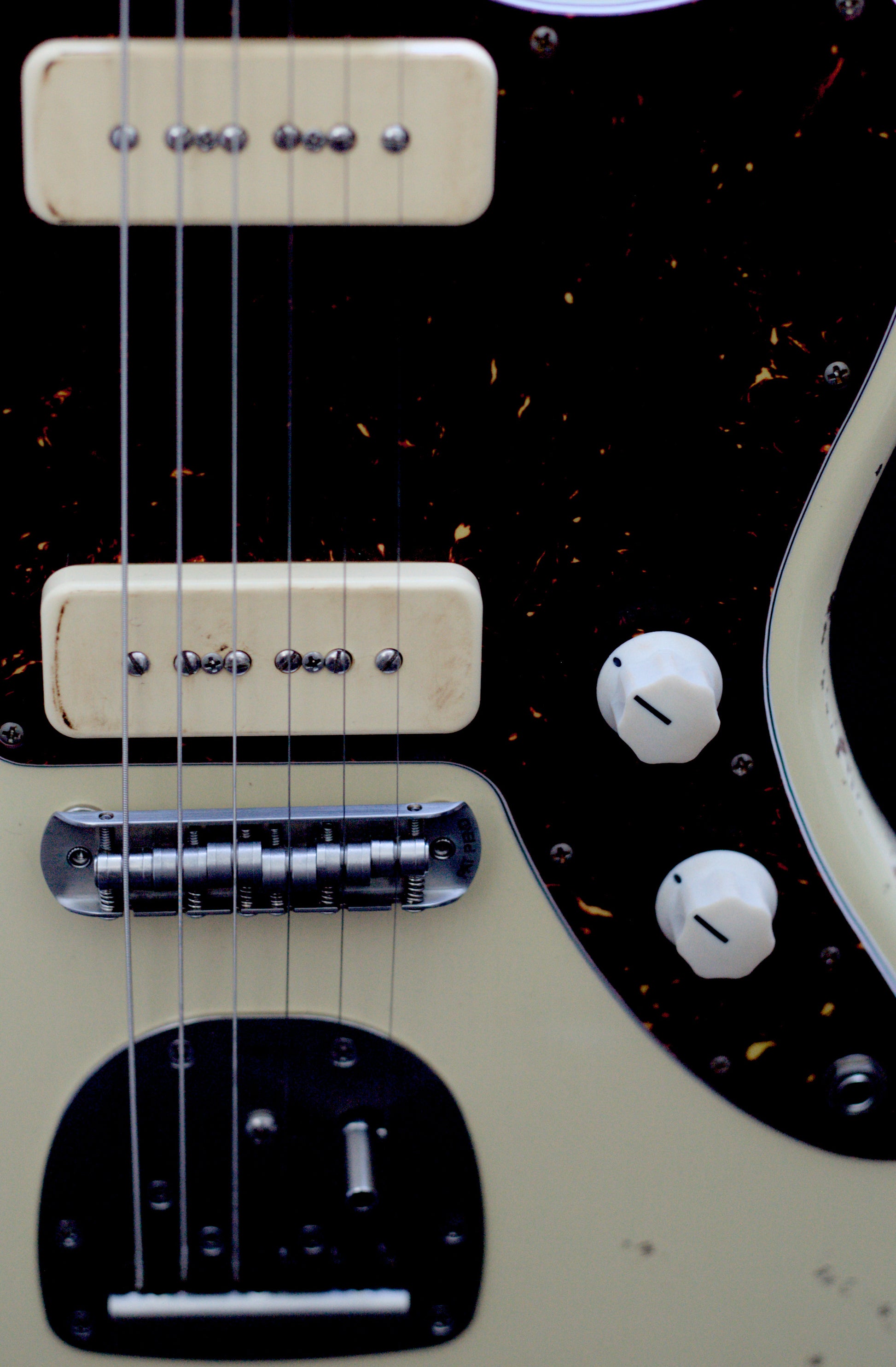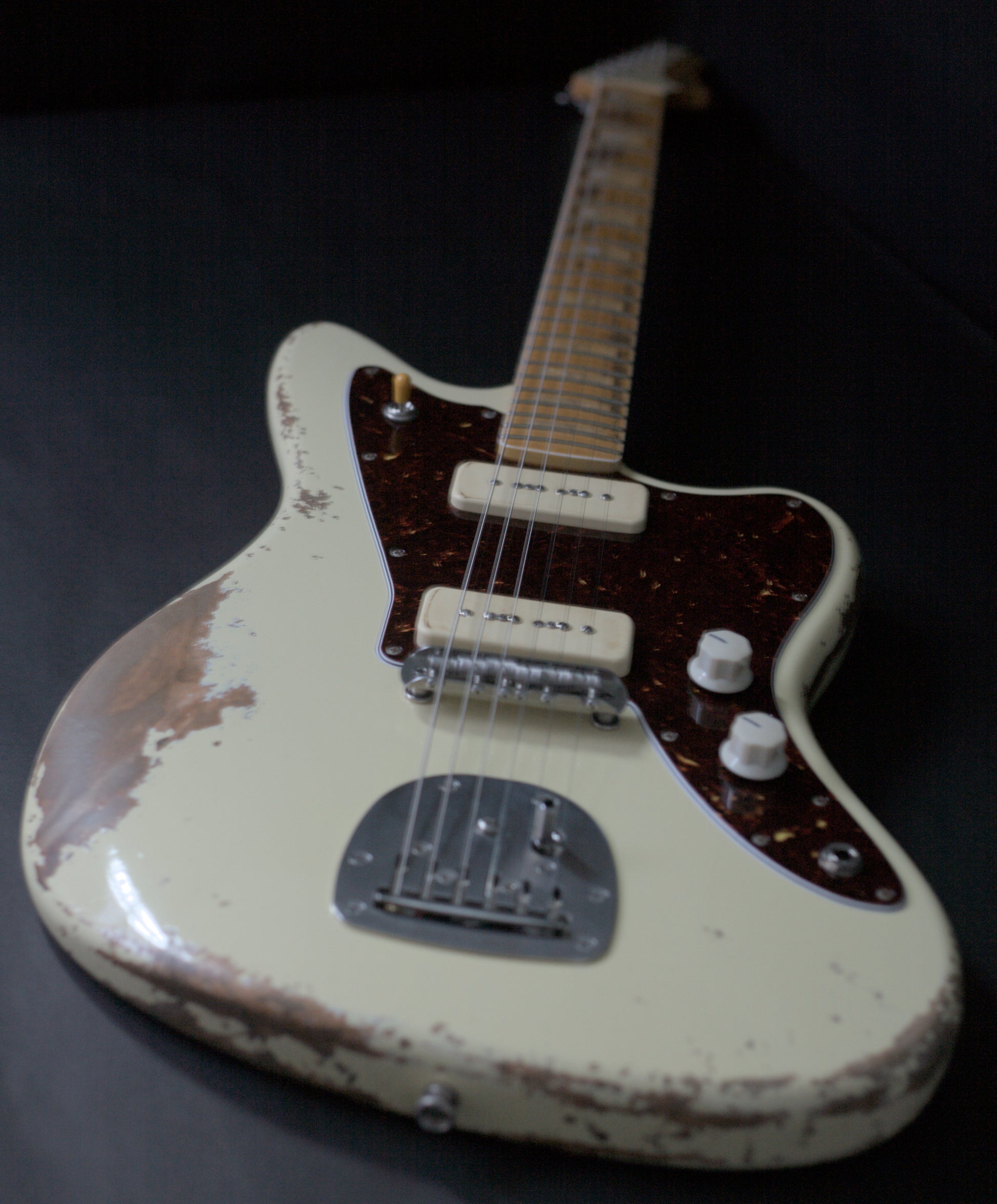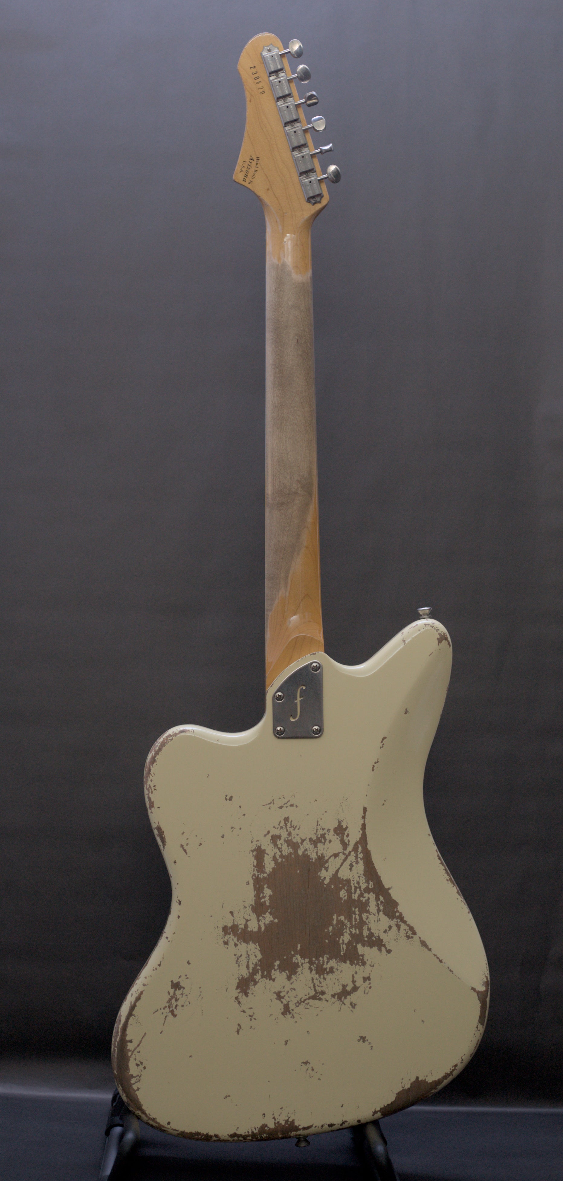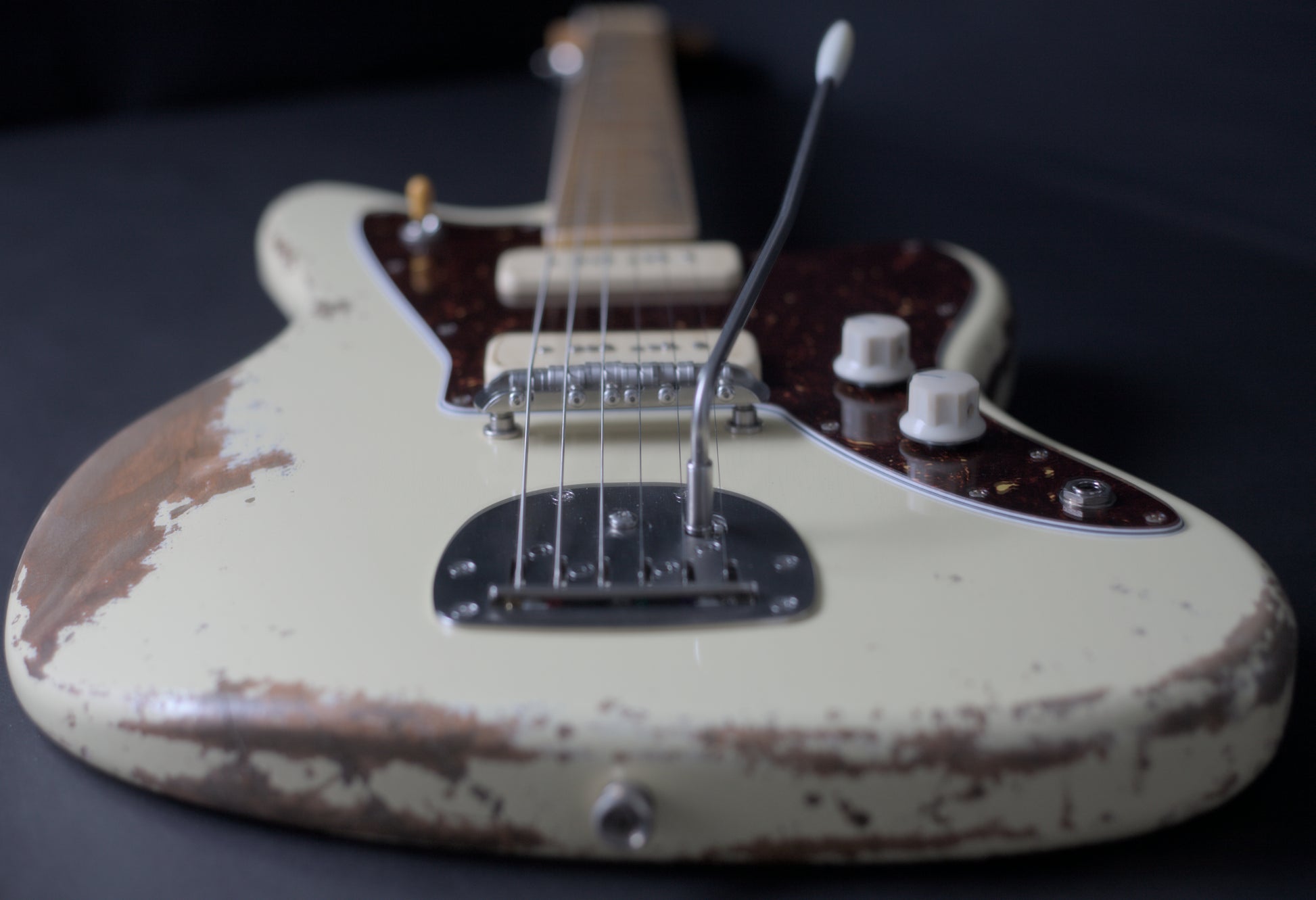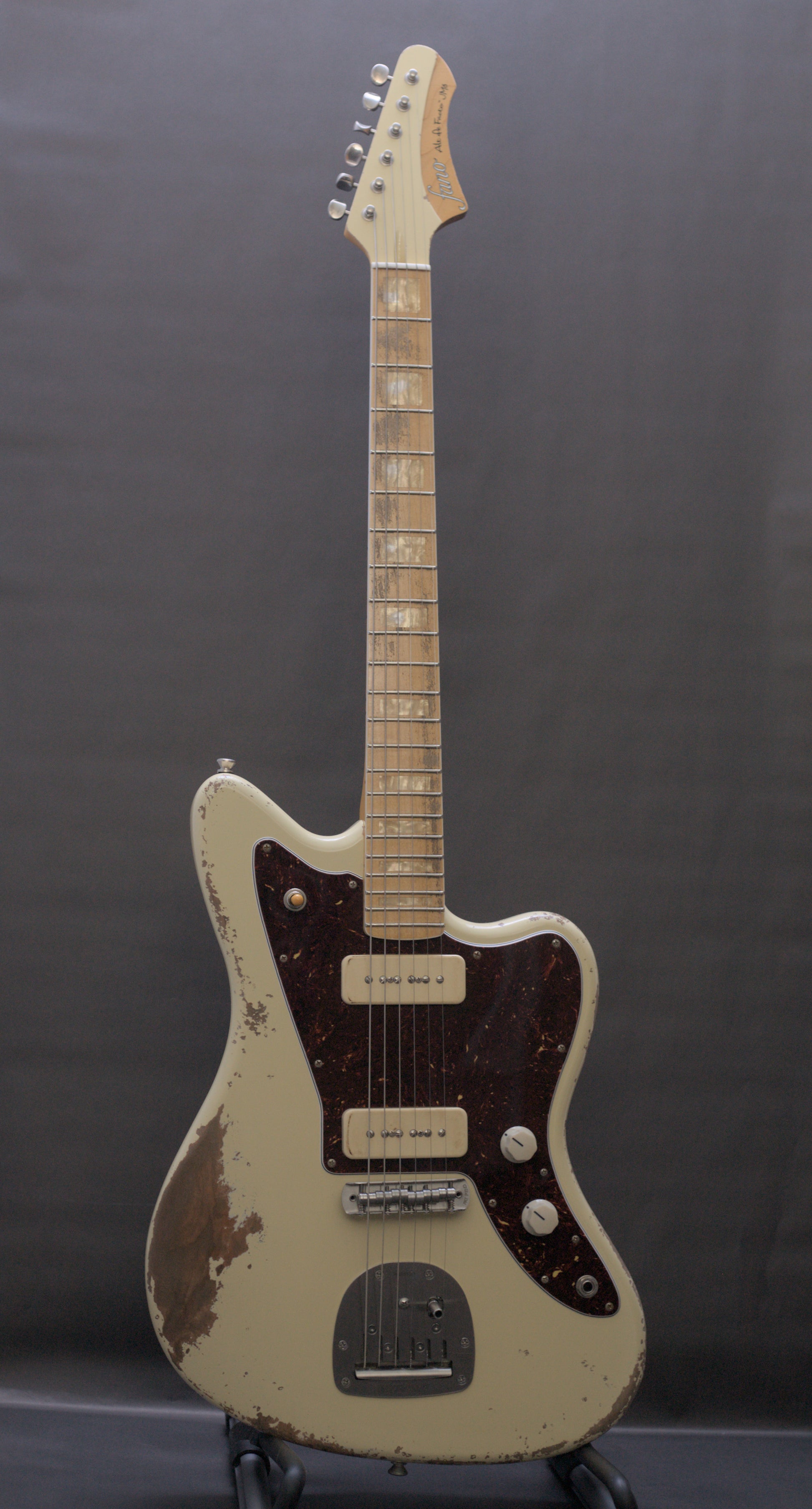 This incredible Alt De Facto JM6 has an Alder body, 25.5" scale Maple neck and Rosewood Fingerboard. It is fitted with a Descendent bridge and vibrato, and a pair of Bare Knuckle Blue Note P90 Pickups.