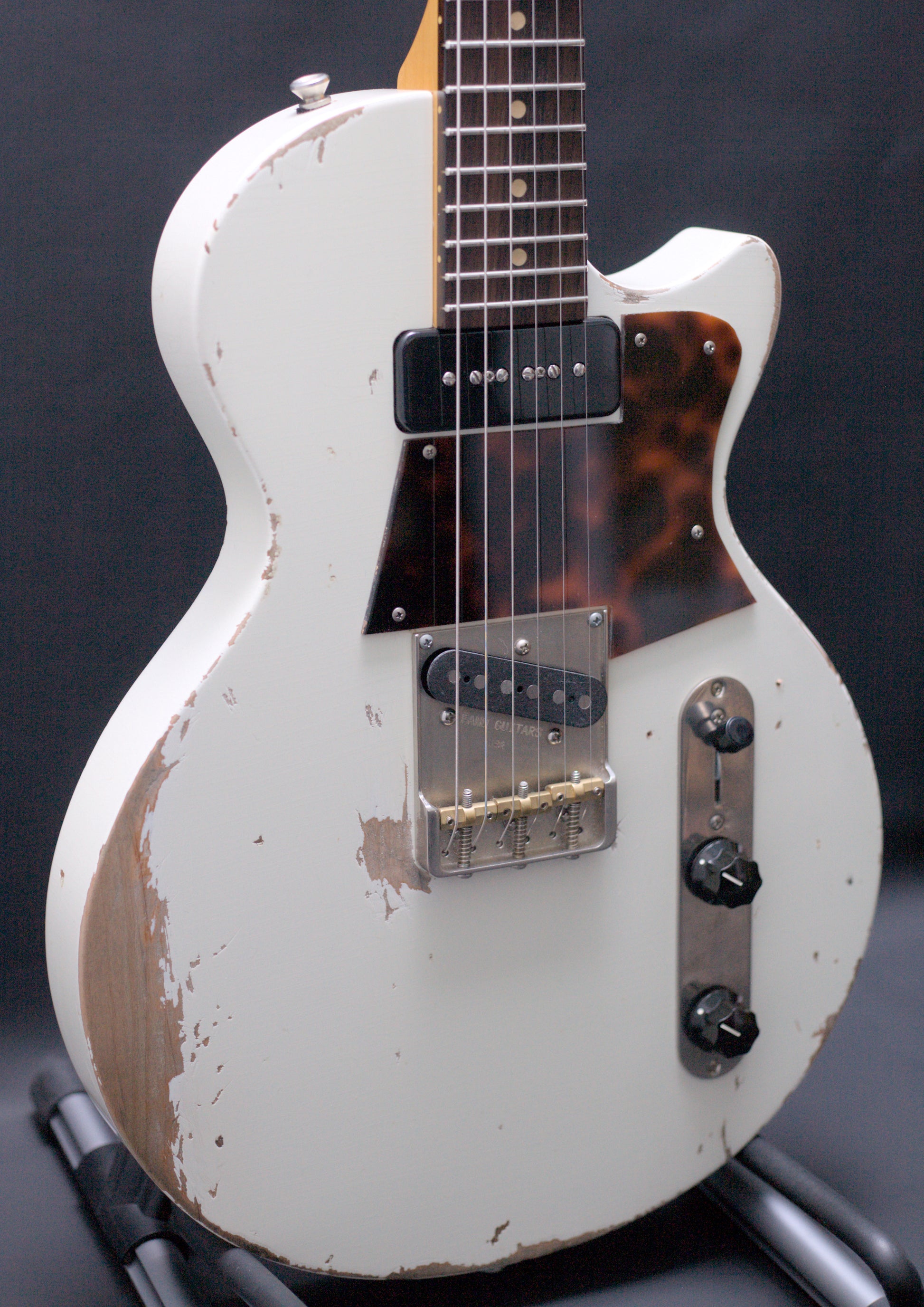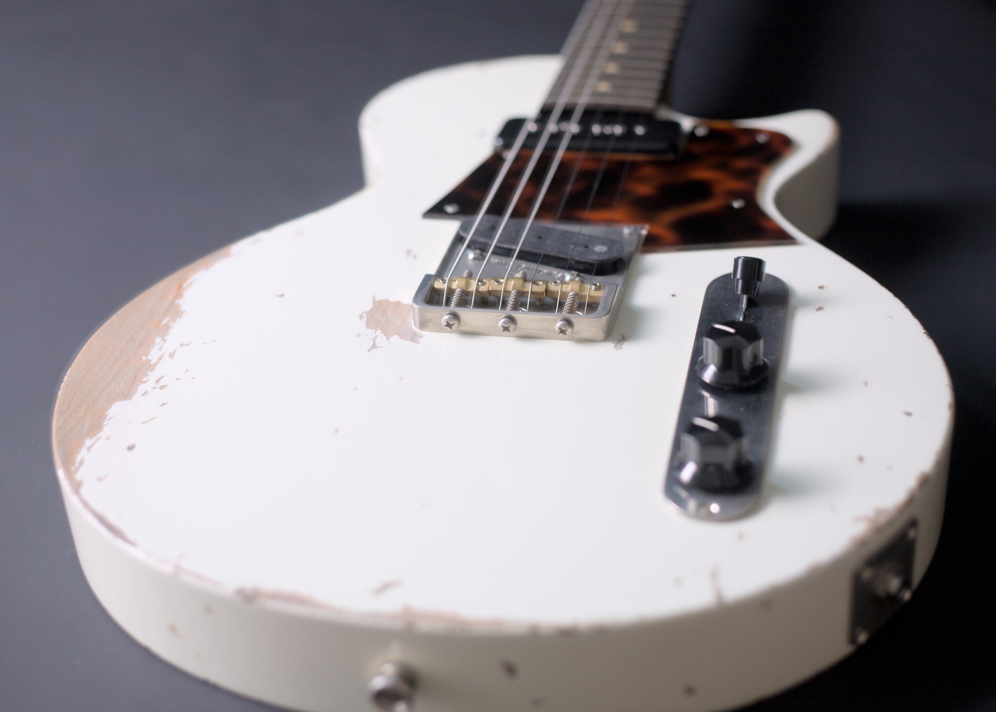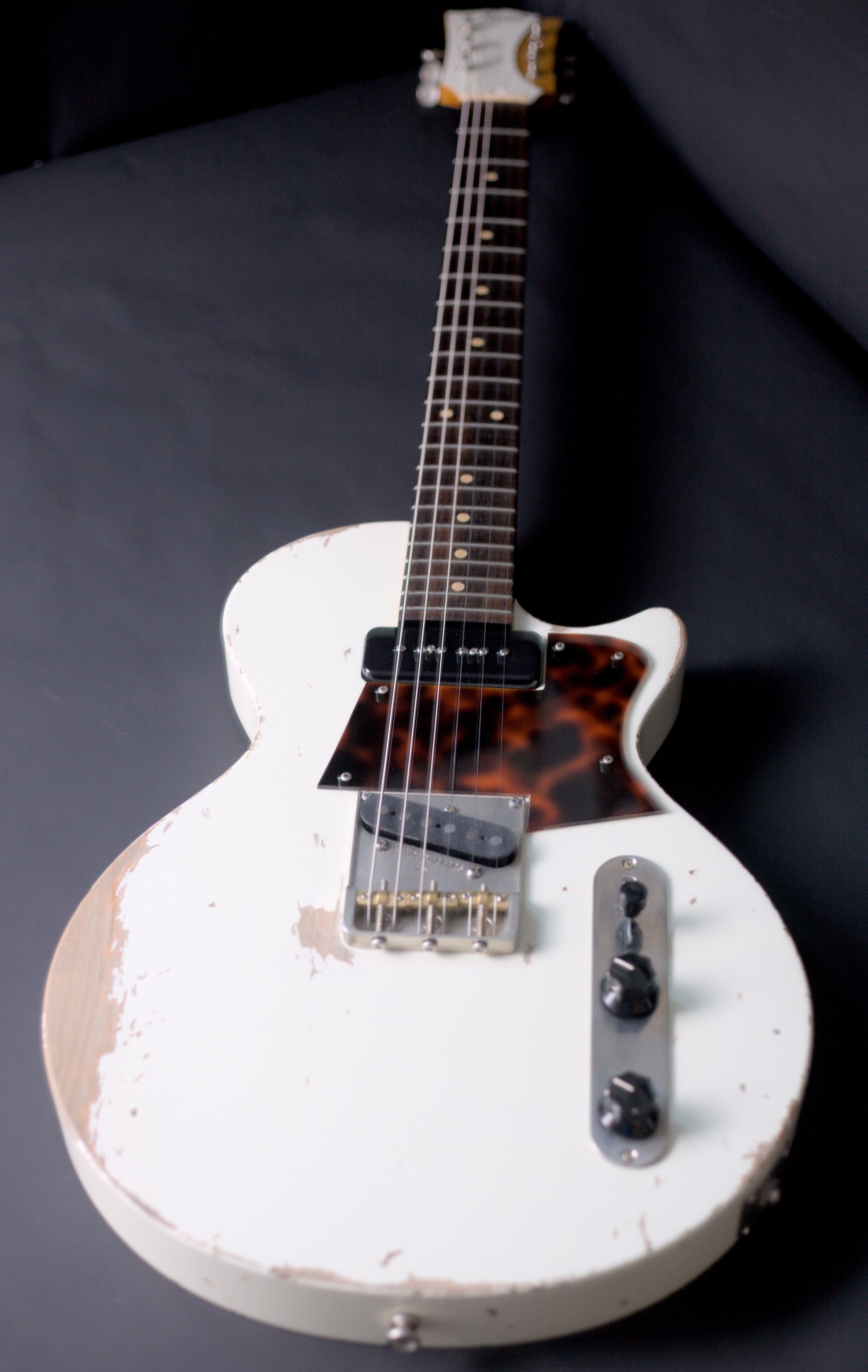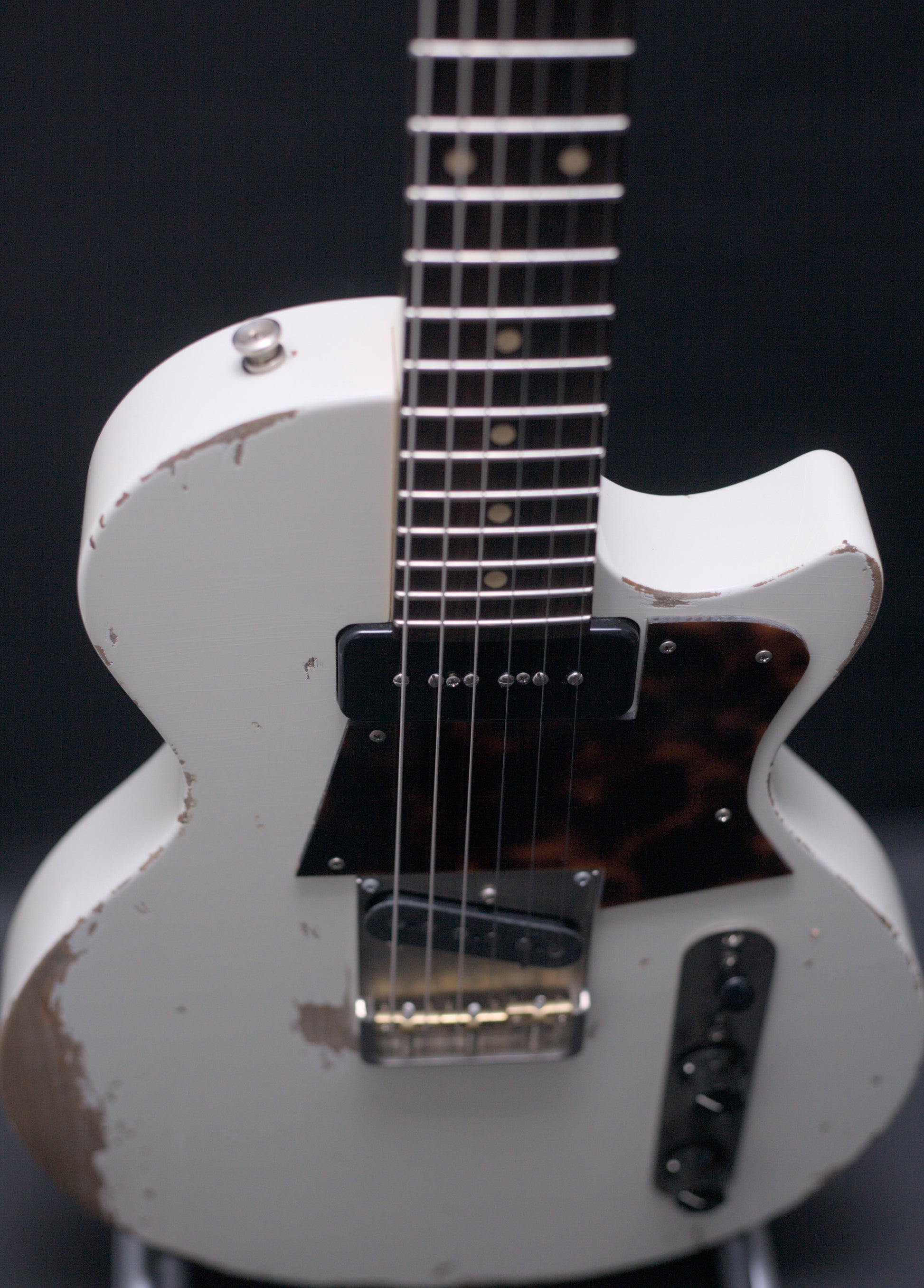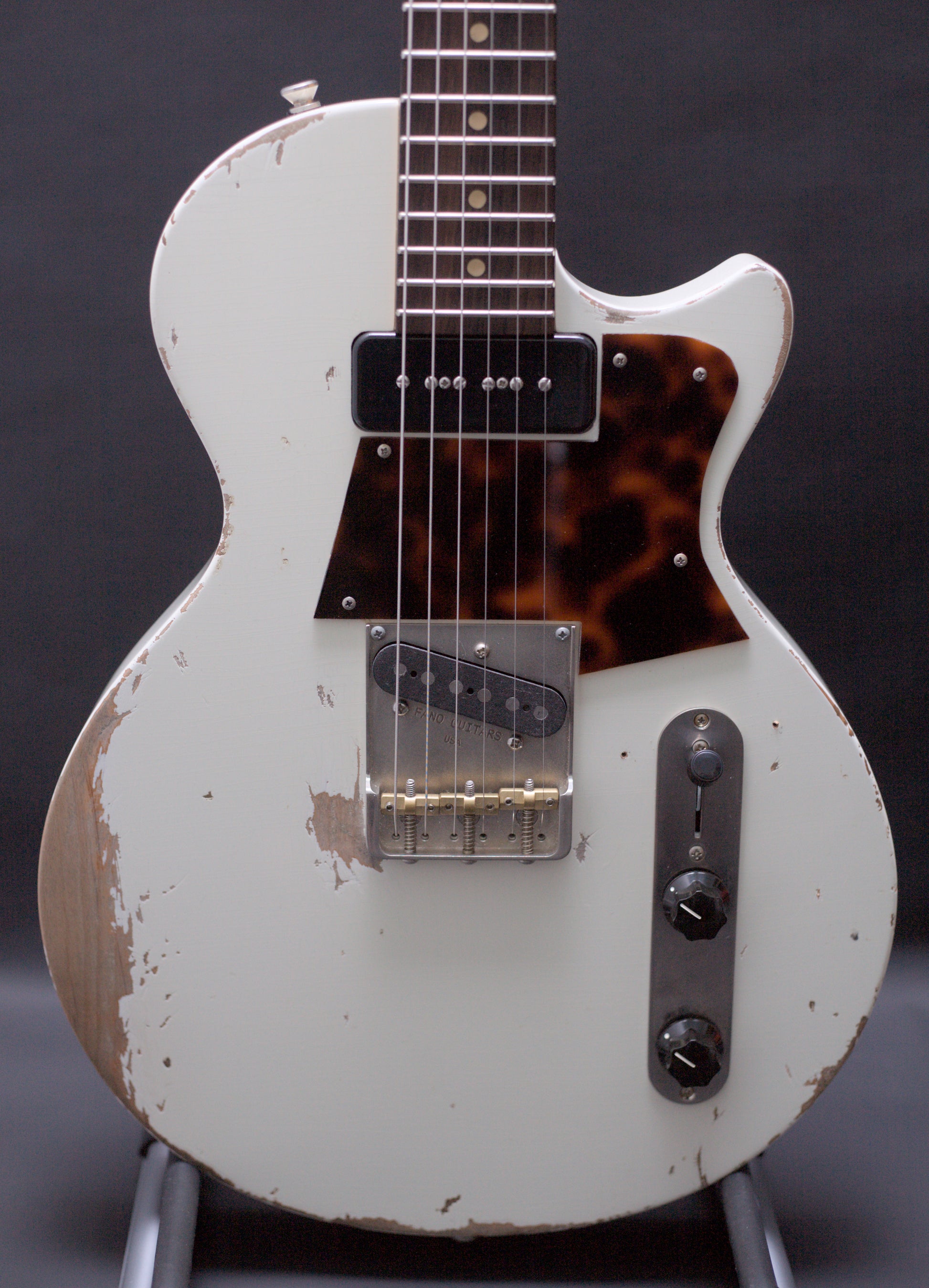 The neck position P-90 is fat and warm, with a rich midrange balanced by an open top end. Clean tones are warm and sweet, dirt tones anything from bluesy to swampy depending on your amp settings. And if you ever get tired of the outer positions, the middle position blends the voices of the two pickups in harmonious accord with a spanky attack and mildly scooped EQ.