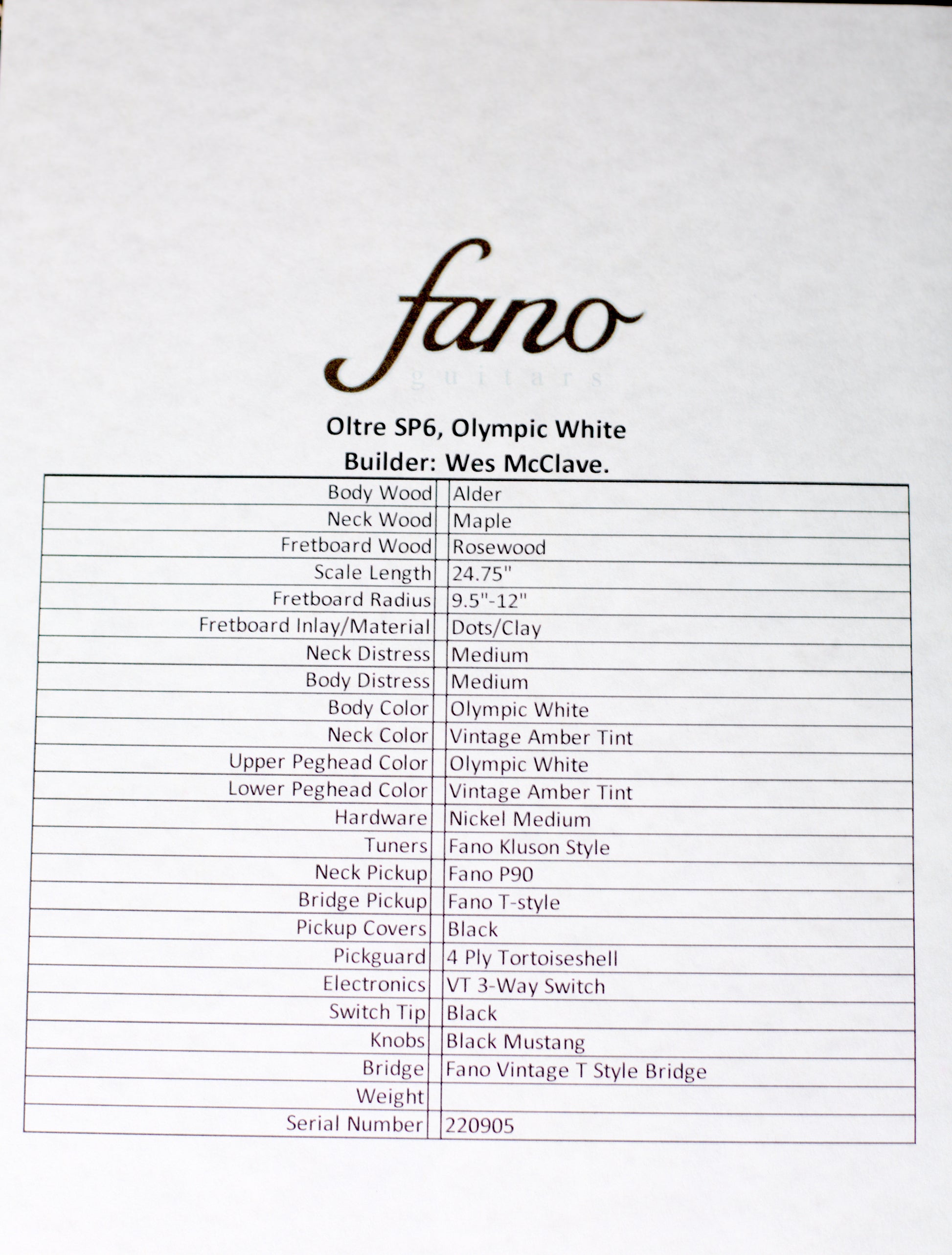 Each Fano Oltre series guitar is handbuilt in the USA using an old-growth North American Alder body, maple neck and a nitrocellulose lacquer finish. The result is a resonant, lively instrument crafted with care and precision.