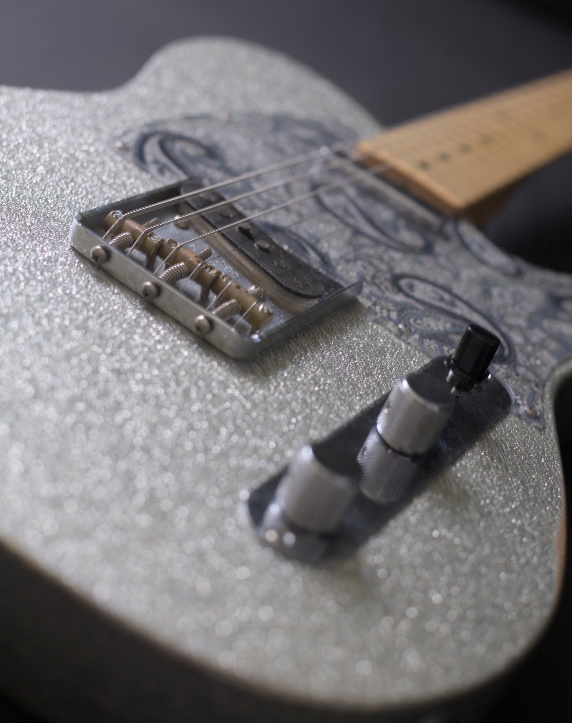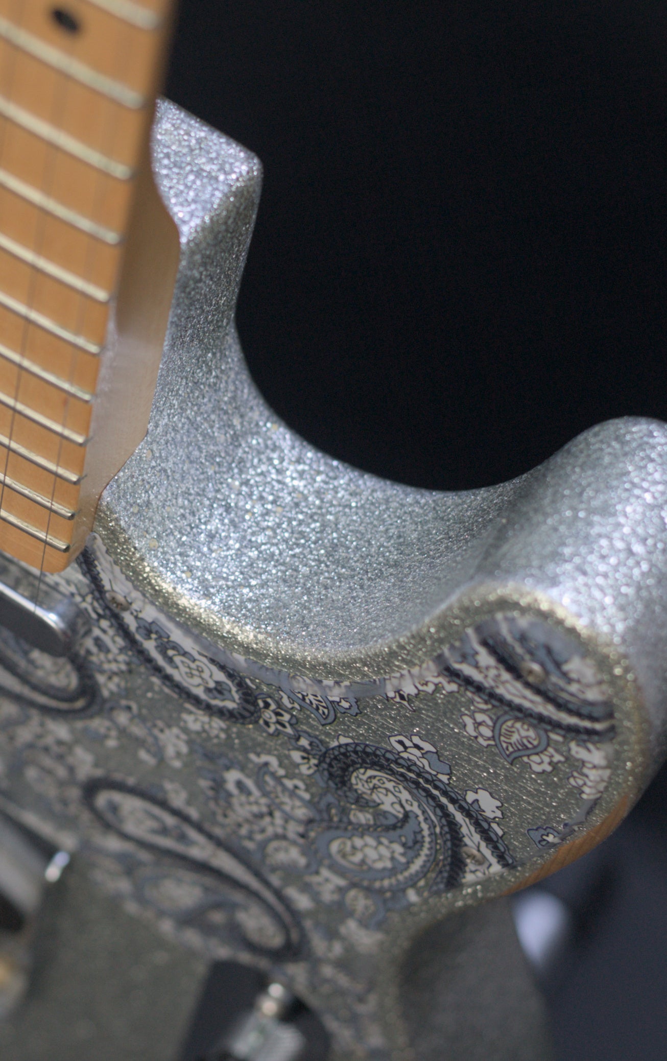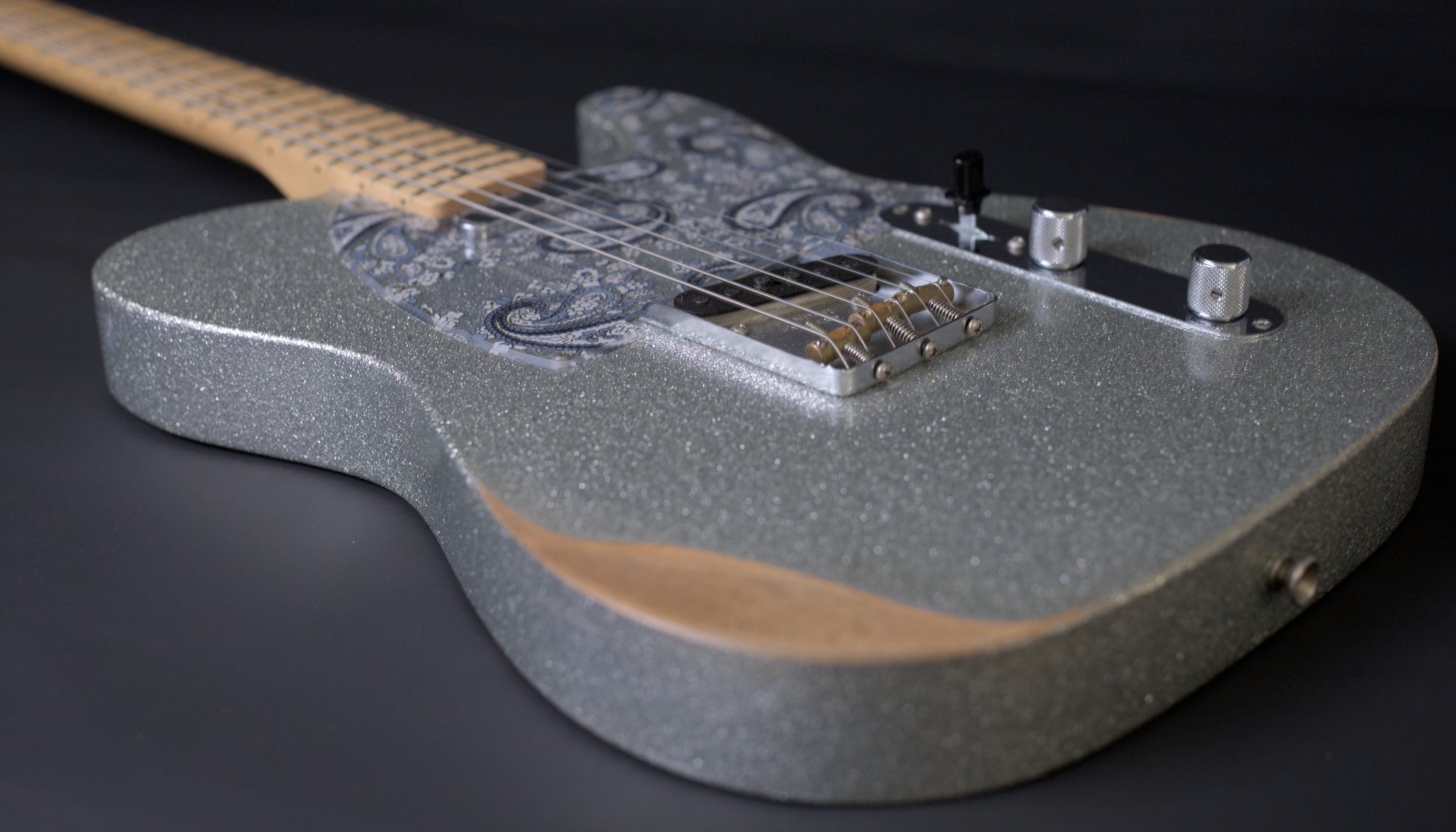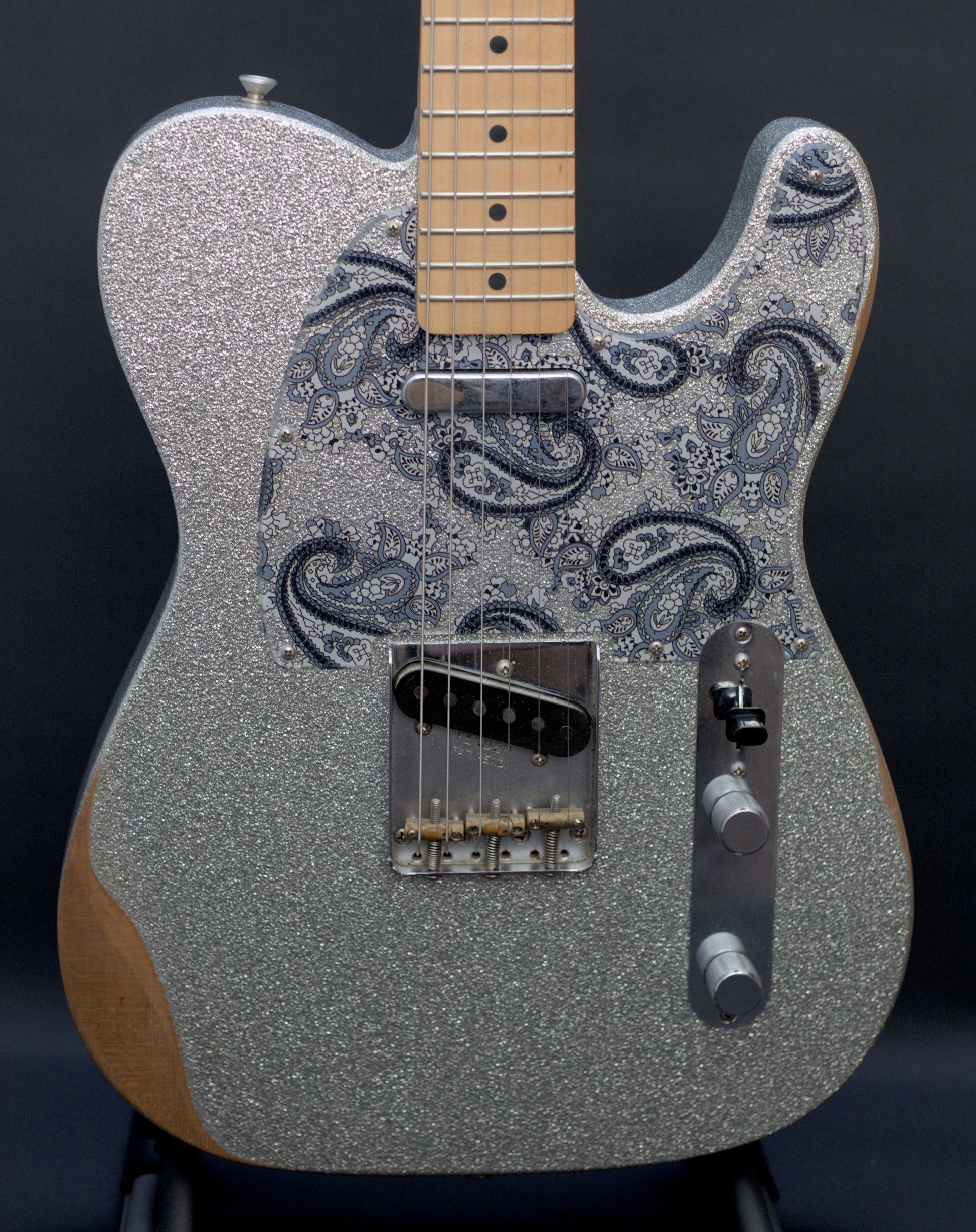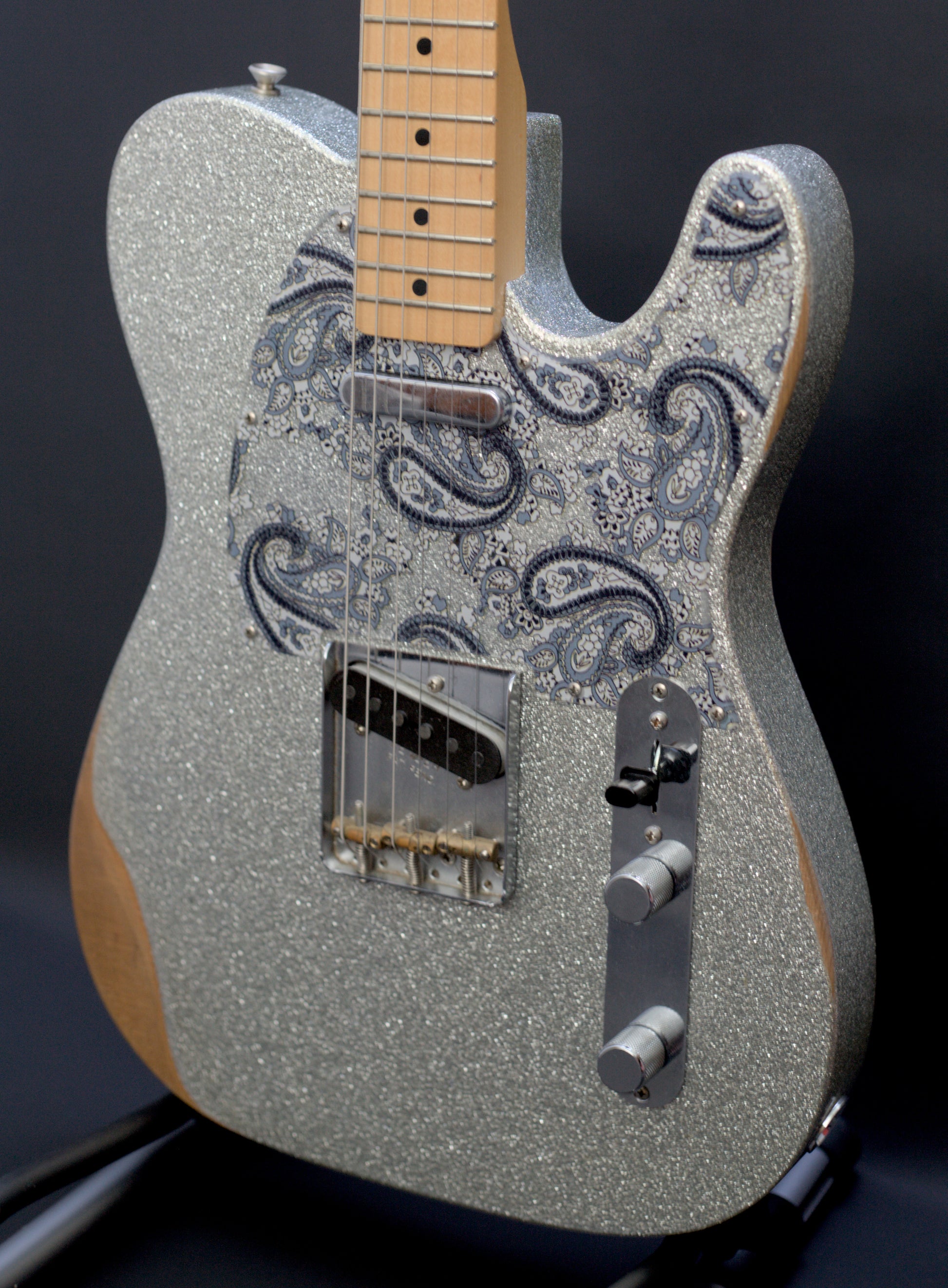 This Tele wears a sparkle Road Worn lacquer finish and aged hardware, inspired by many years on the touring trail. Elegant signature touches include a custom clear pickguard with black and silver paisleys and a cowboy hat insignia on the headstock. Simply put, this easy-playing music machine is a must for Tele lovers and belongs center-stage in any country collection.