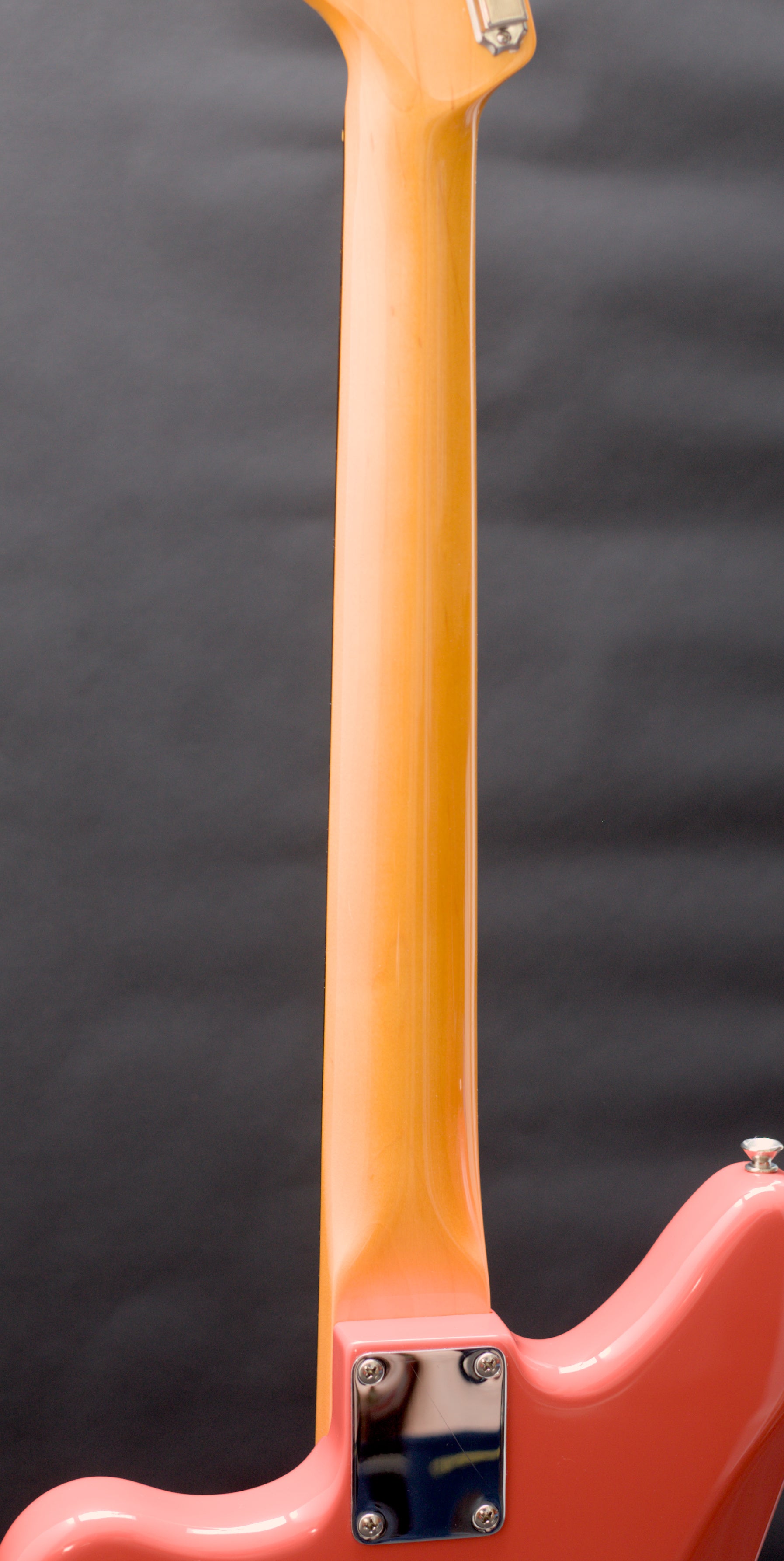 We love the lacquer finish on this really cool 60s Jag. These don't come up very often, and this one has the added touch of having the more sought after Rosewood, rather than Pau Ferro, fretboard.