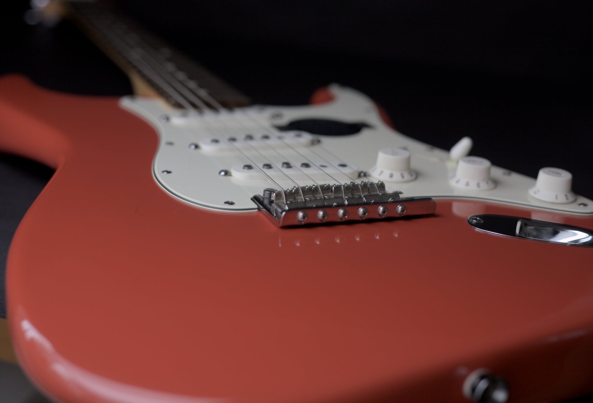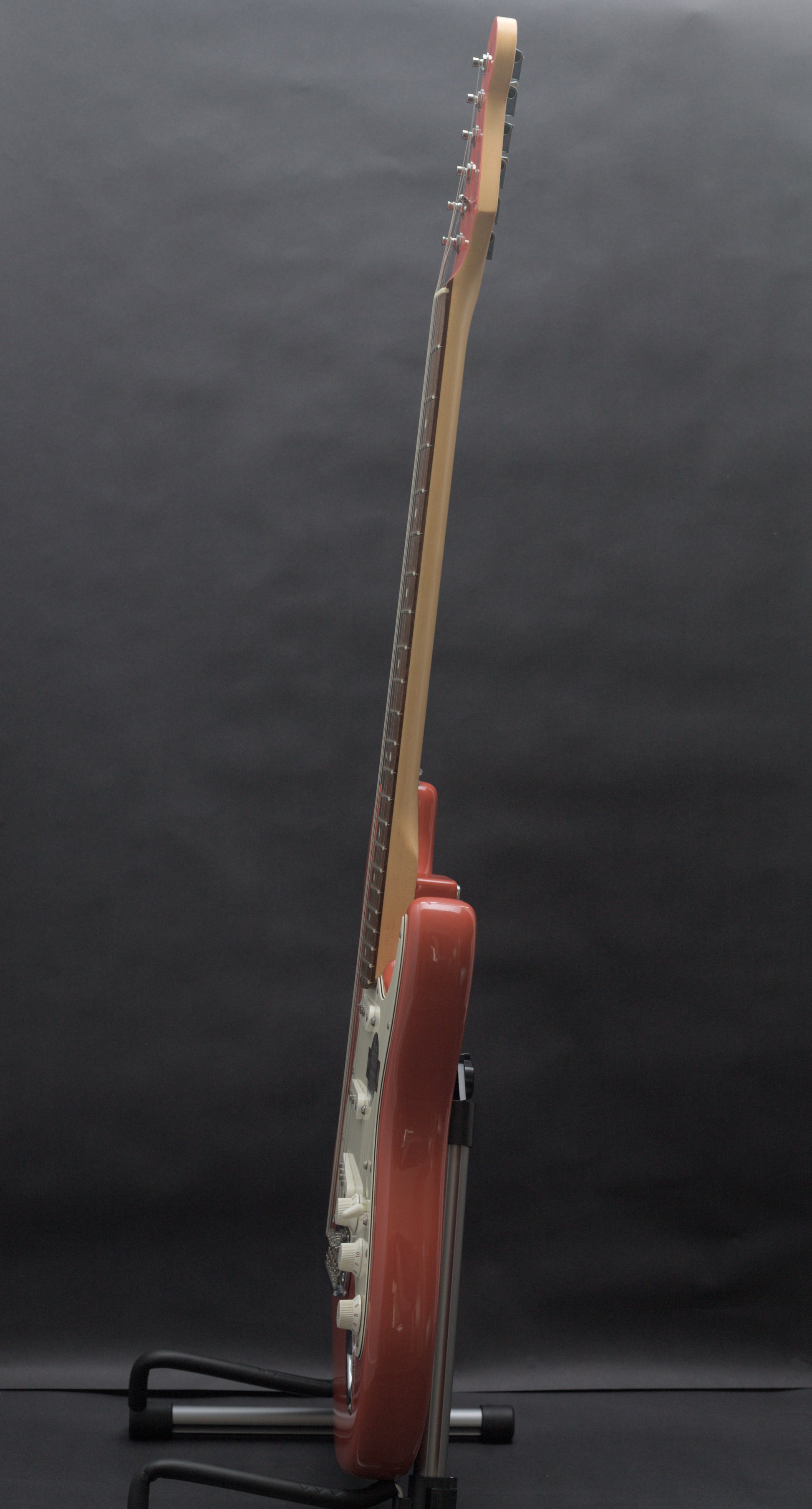 An absolute time capsule piece! Completely mint and unplayed. This ultra snazzy FSR Strat with matching headstock isn’t your standard run-of-the-mill Stratocaster. This FSR model features a two-point tremolo, no-load tone control, and specially voiced USA Strat pickups! It has a modern 'C' shaped neck and 22 medium jumbo frets.