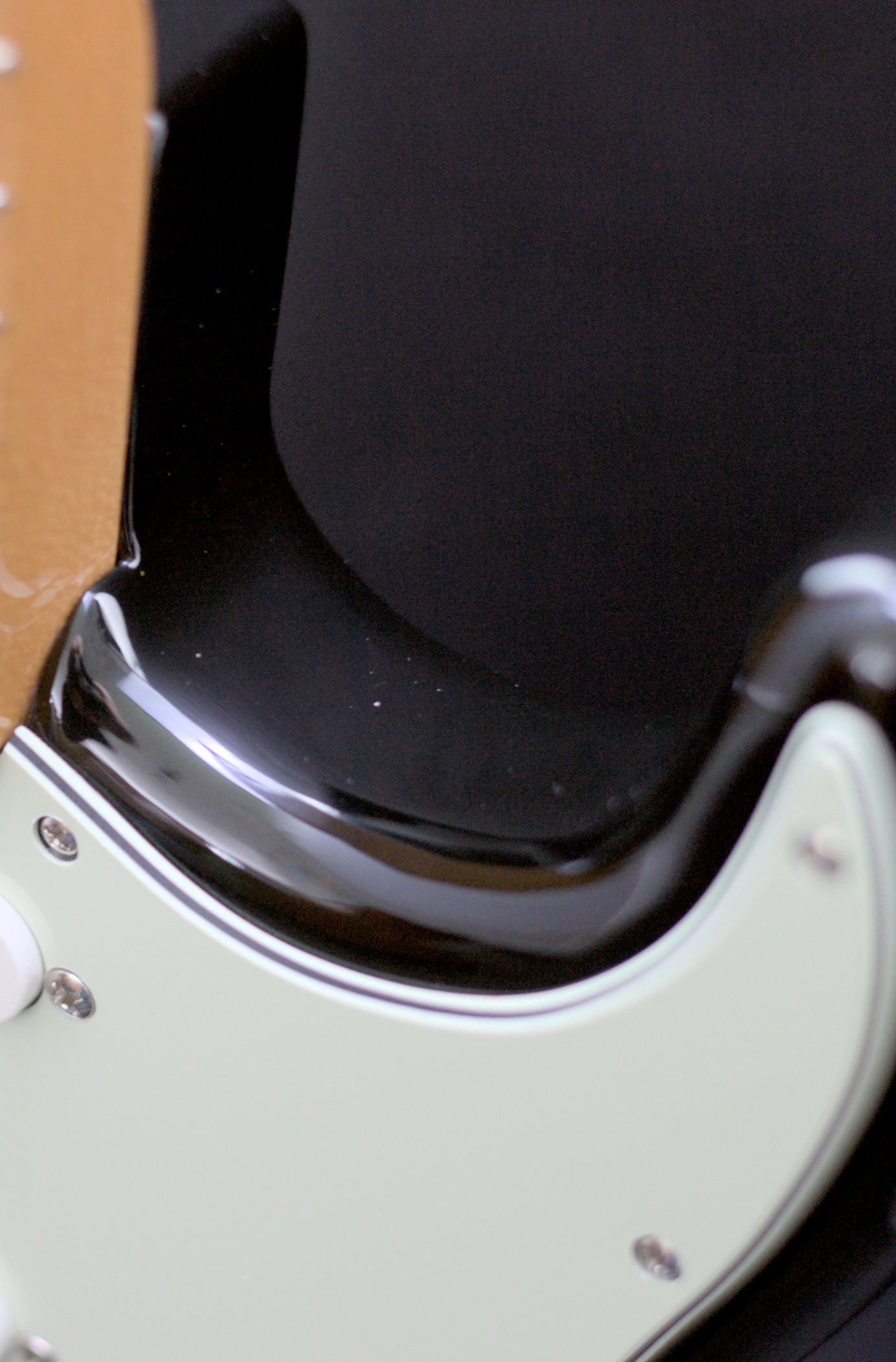 - Bridge: Strings-Through-Body Strat Hardtail Bridge with 6 Curved Steel Bridge Saddles