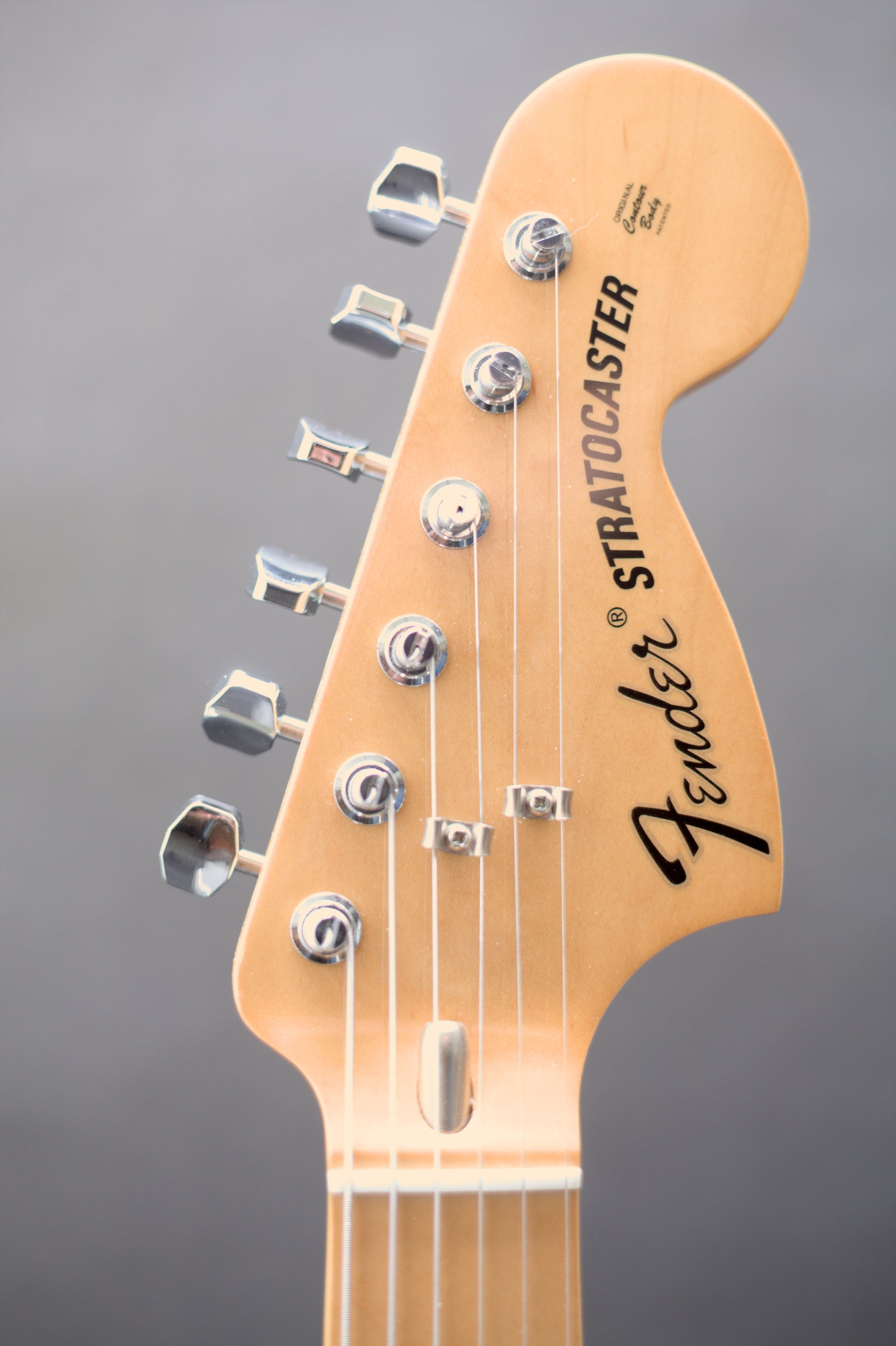 For authentic Fender tone, it features a trio of Custom Shop ‘69 single-coil Stratocaster pickups – crystalline and bell-like, they have the crisp, articulate sound that put Fender on the map. The Early '70s "C”-shaped neck has a 7.25”-radius maple fingerboard with 21 vintage-style frets for classic playing feel. A vintage-style, six-saddle hardtail bridge and period-correct “F”-stamped tuning machines offer original-era aesthetics, rock-solid performance and tuning stability. Other features include three-bolt neck plate, chrome hardware and vintage-style strap buttons.