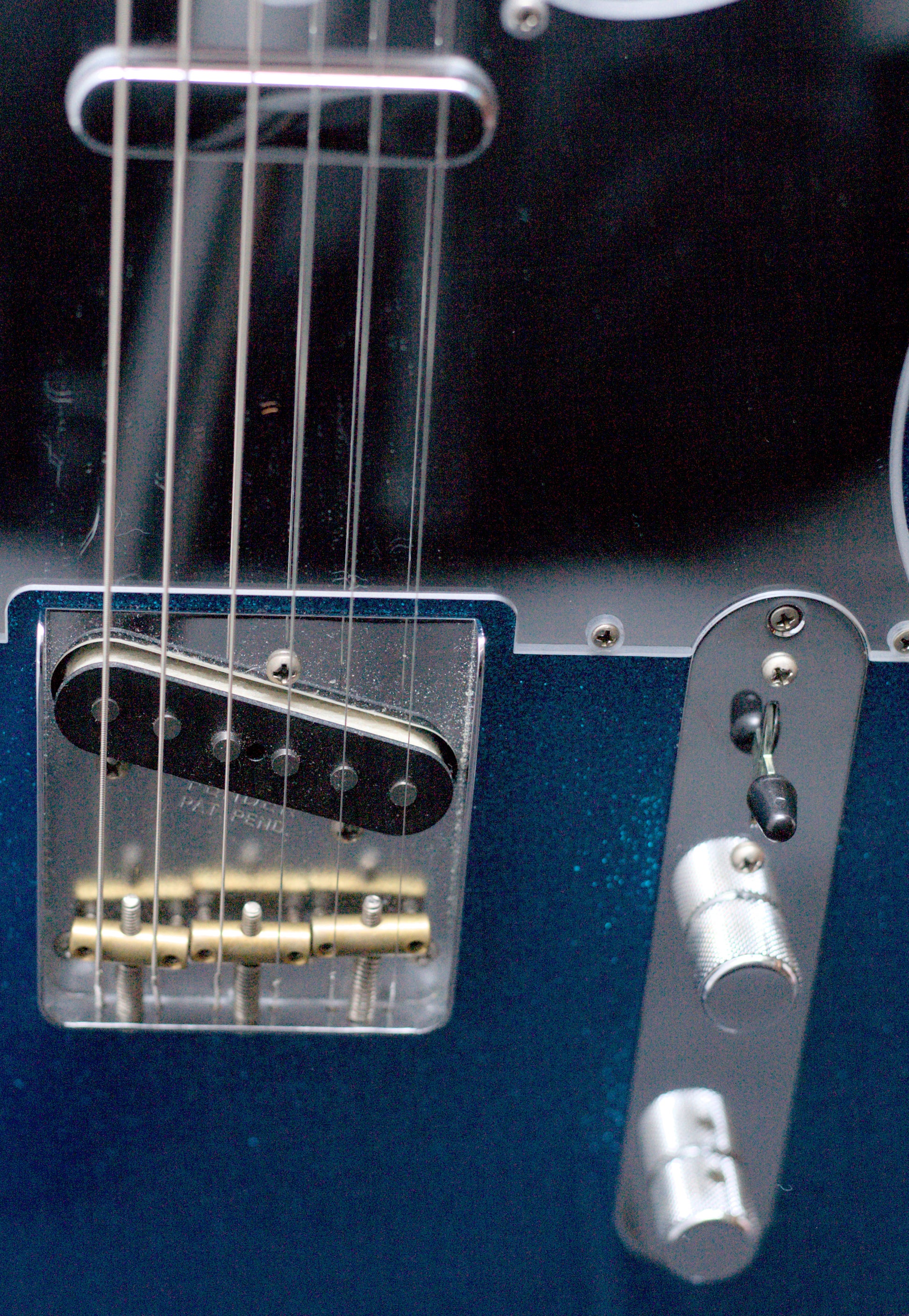Top-Loader Bridge — Strings are thread through the bridge rather than the body, true to the late '50s Tele design.
