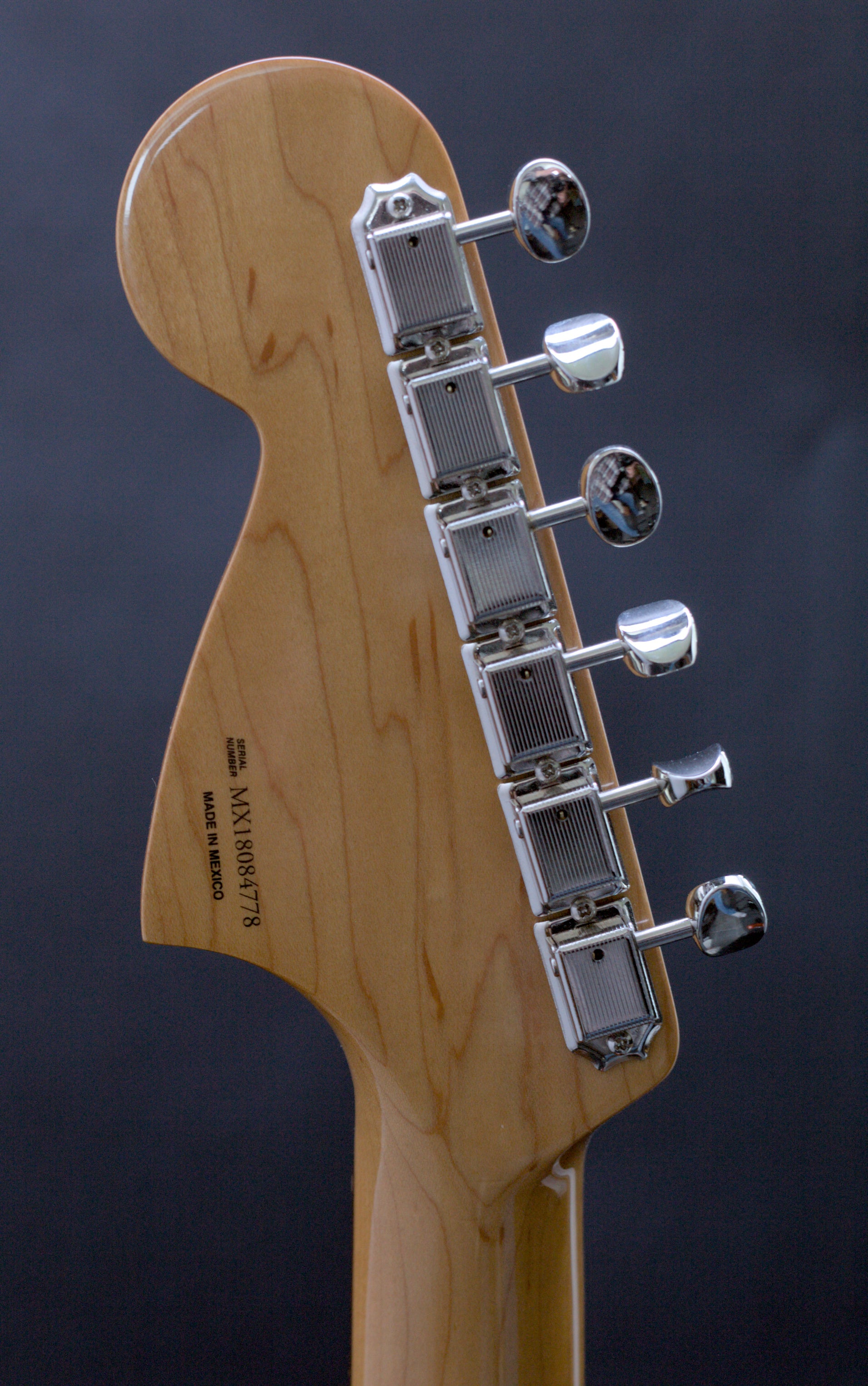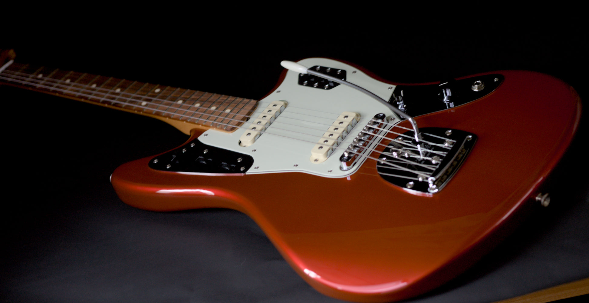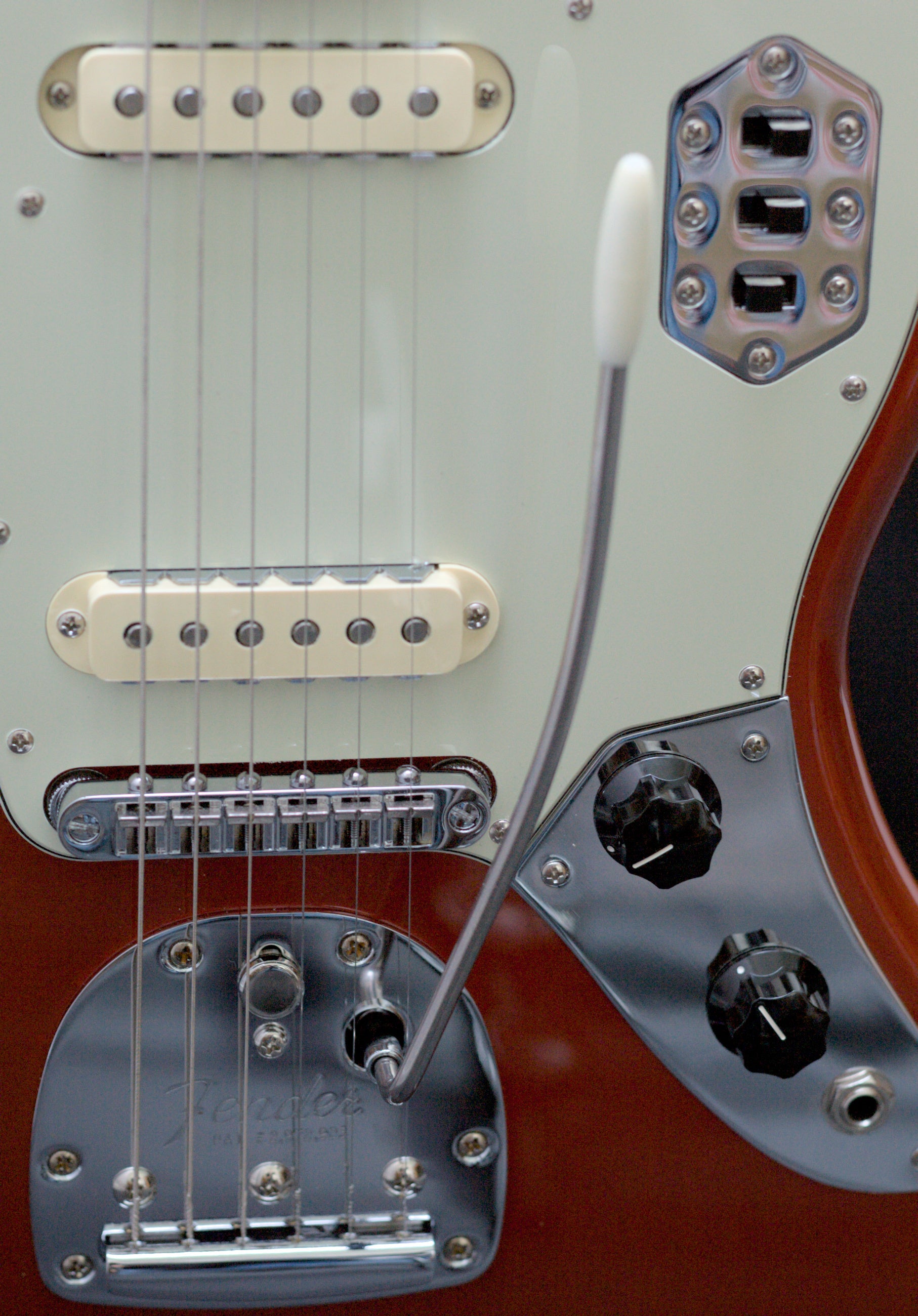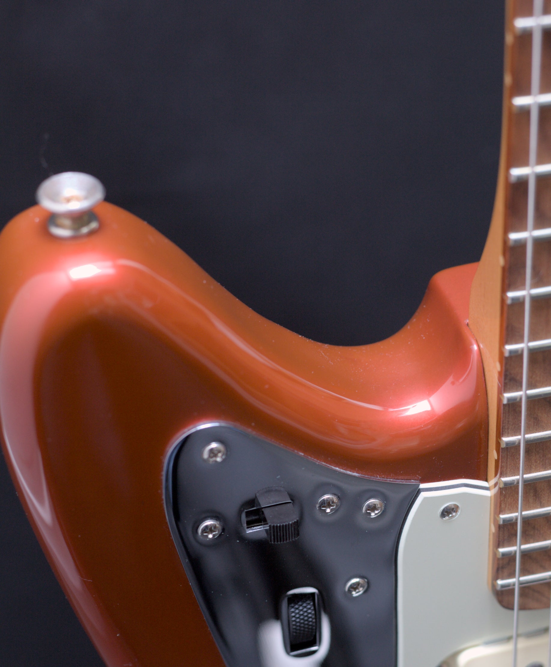 It boasts an Alder body, with a 9.5" radius 'C' shape neck made from Maple with the more desirable Rosewood fretboard. At it's core it has a wonderful tonal balance with the wood composition, offering smooth bass, punchy mids and piercing, expressive treble. This is further enhanced by the strength of the Special Design single coil Jaguar pickups, which are higher output with more bite than the original Jaguar pickups.