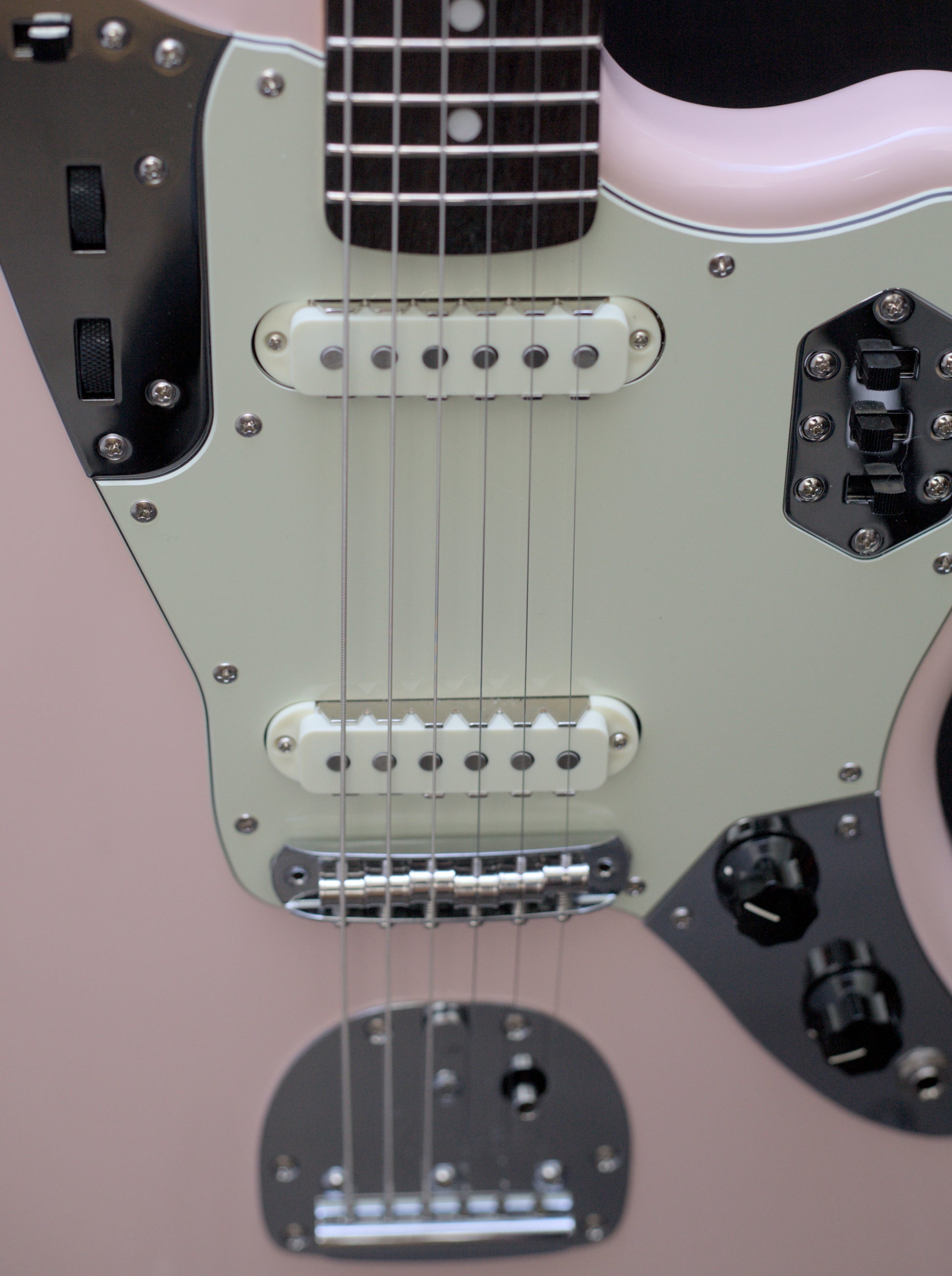 The original bridge has been replaced with a Mustang bridge, a popular upgrade with Jaguar players.