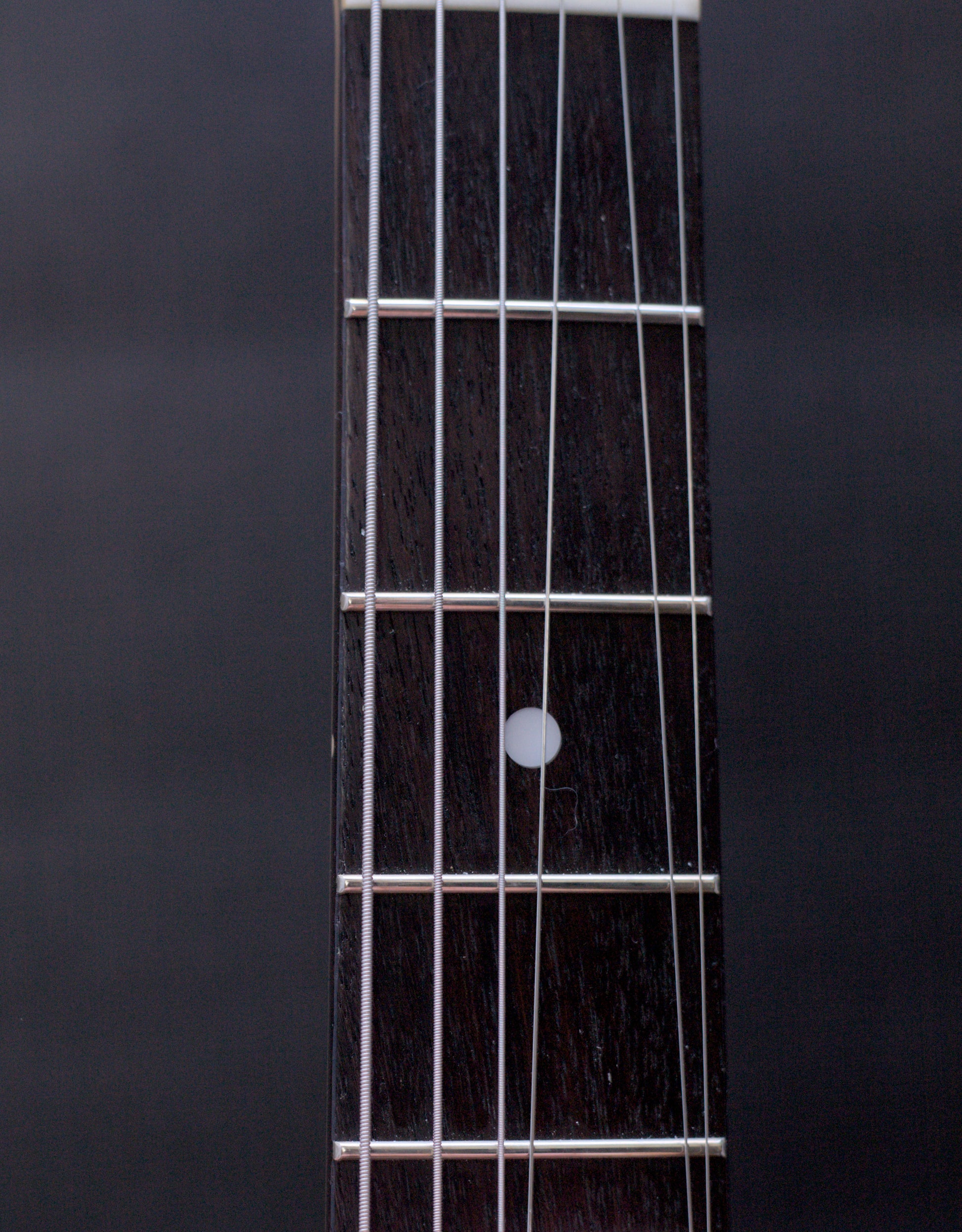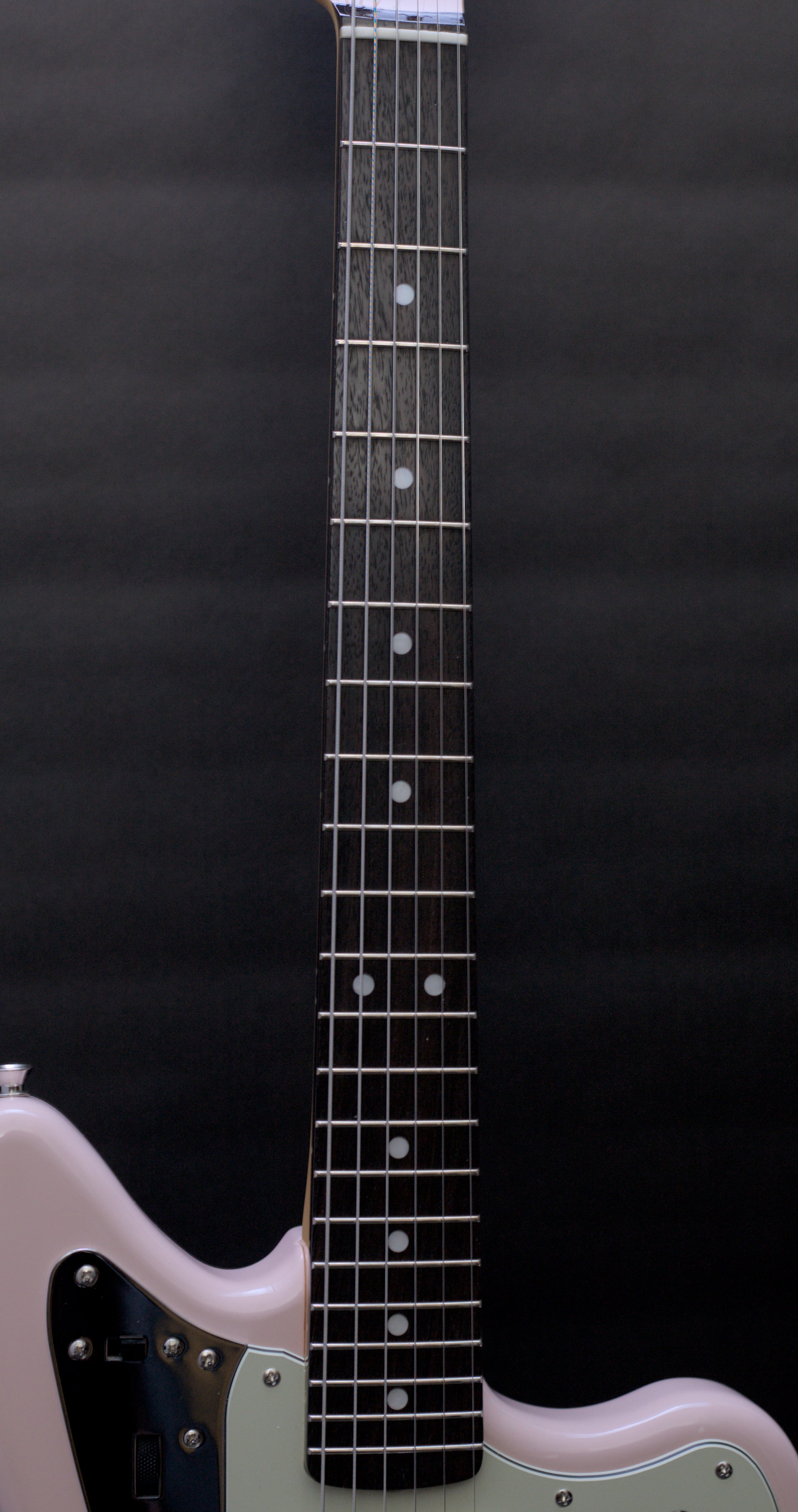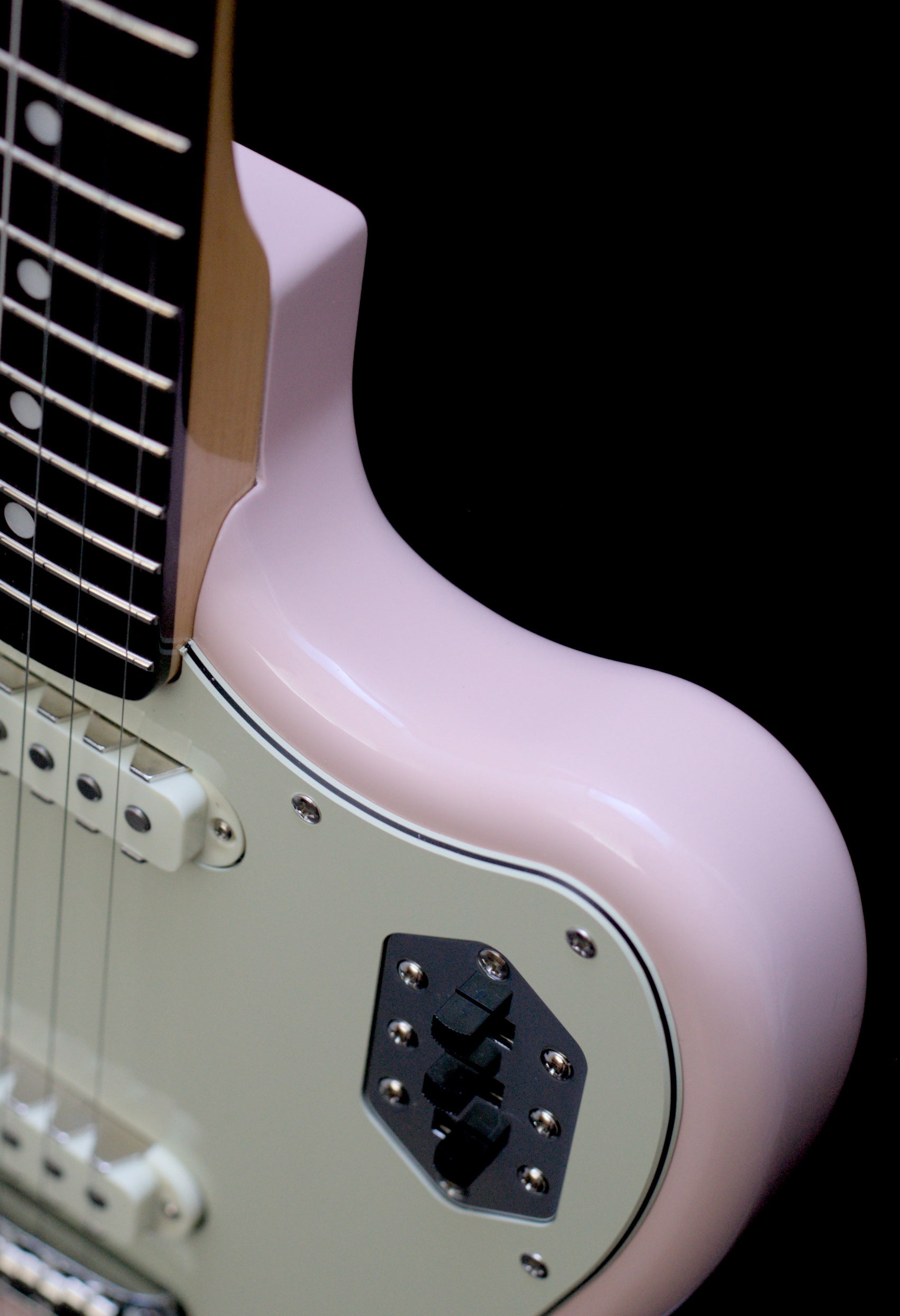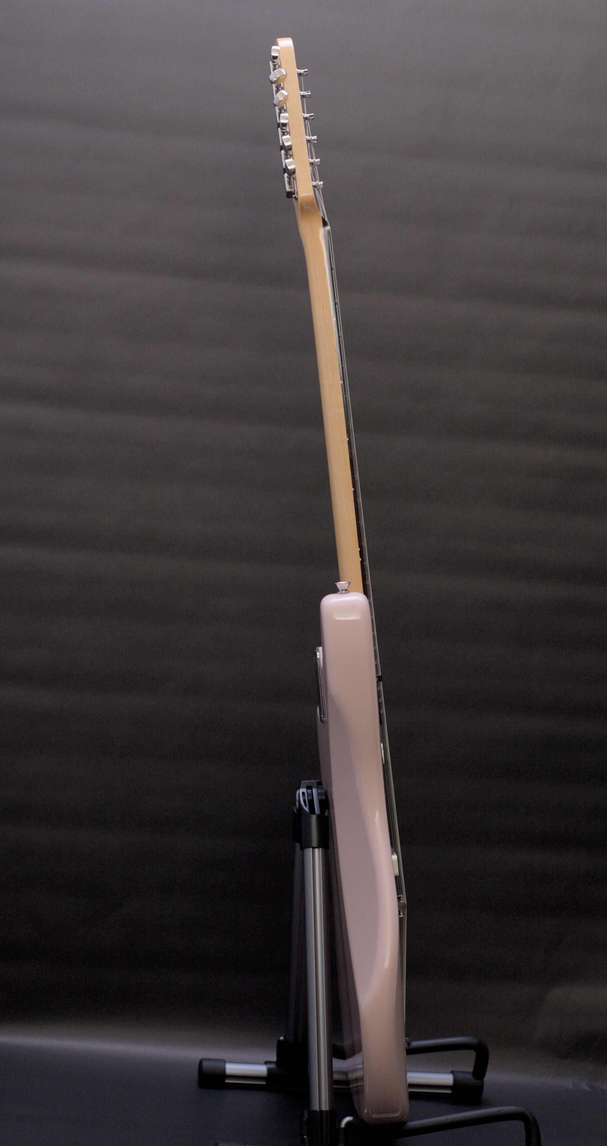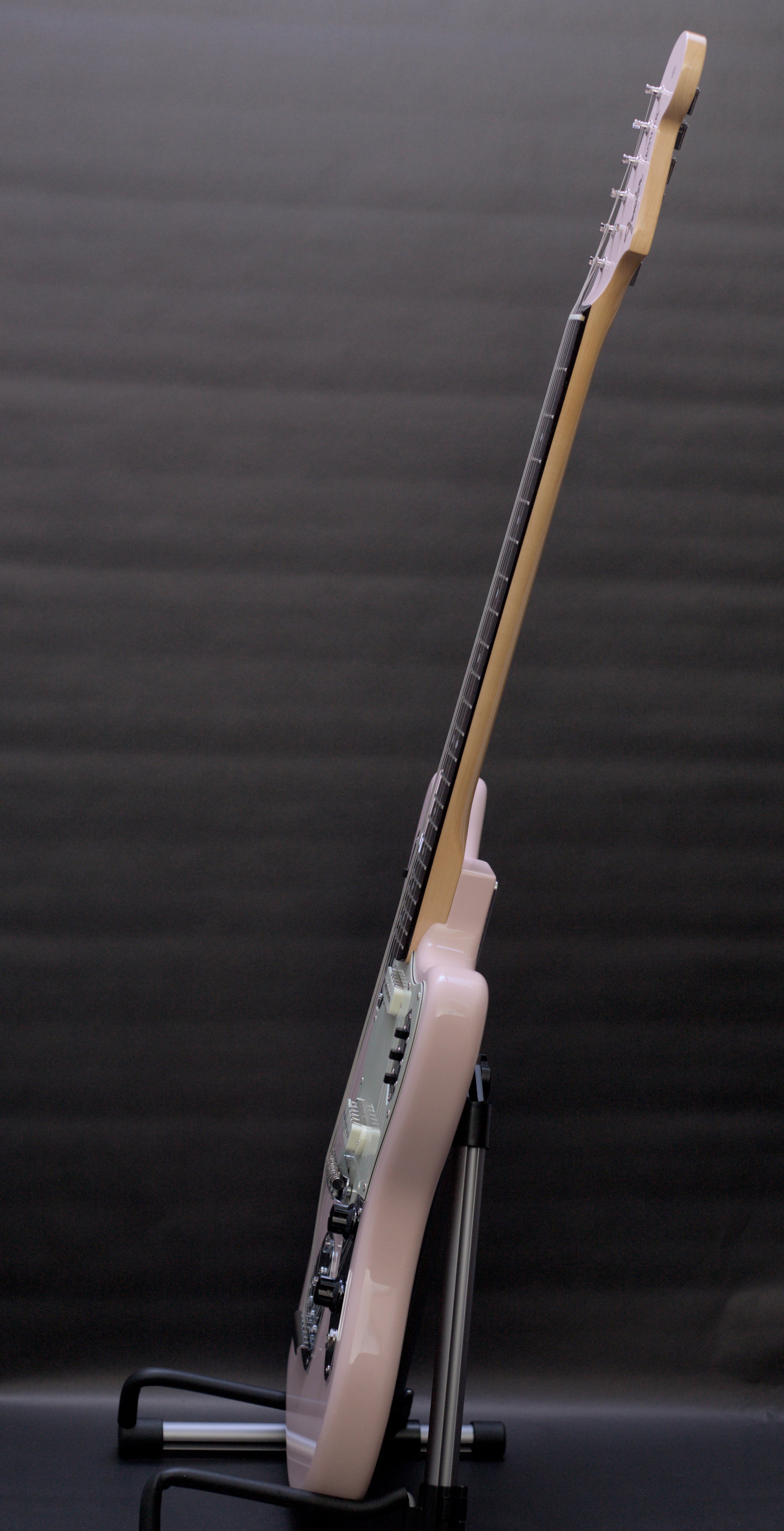 This one is a particular gem as it weighs just 7lbs 4oz. The Indian Rosewood used on the fretboard here is particularly dark and looks great in contrast to the Shell Pink.