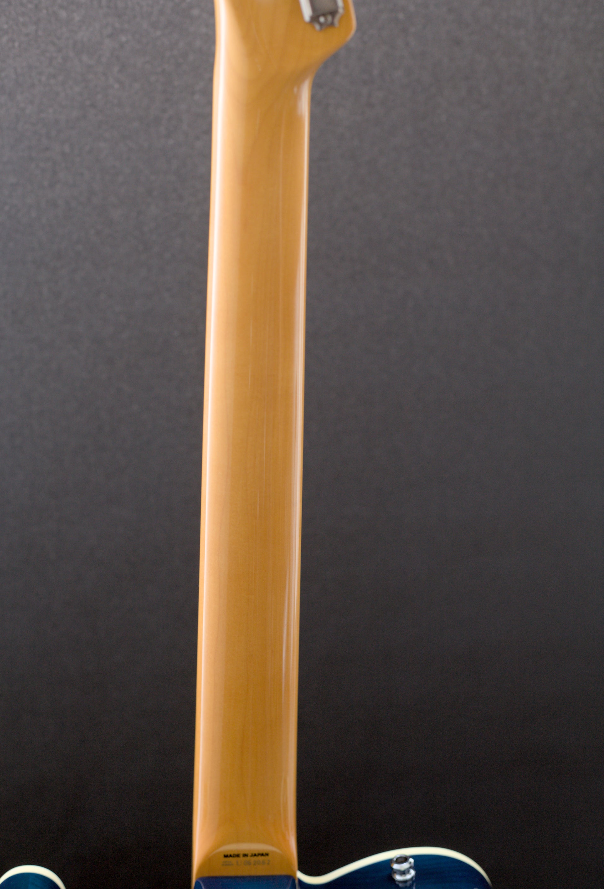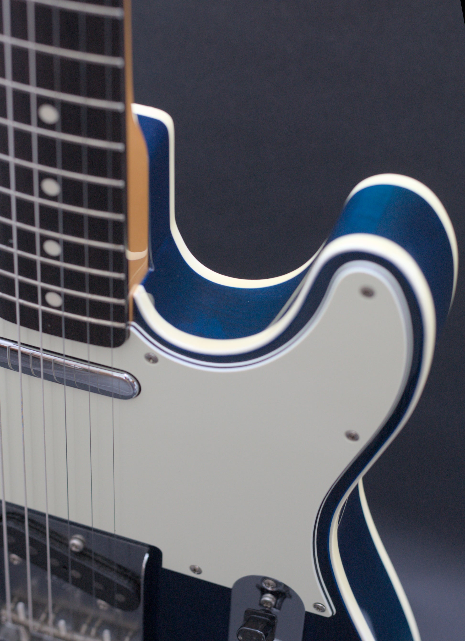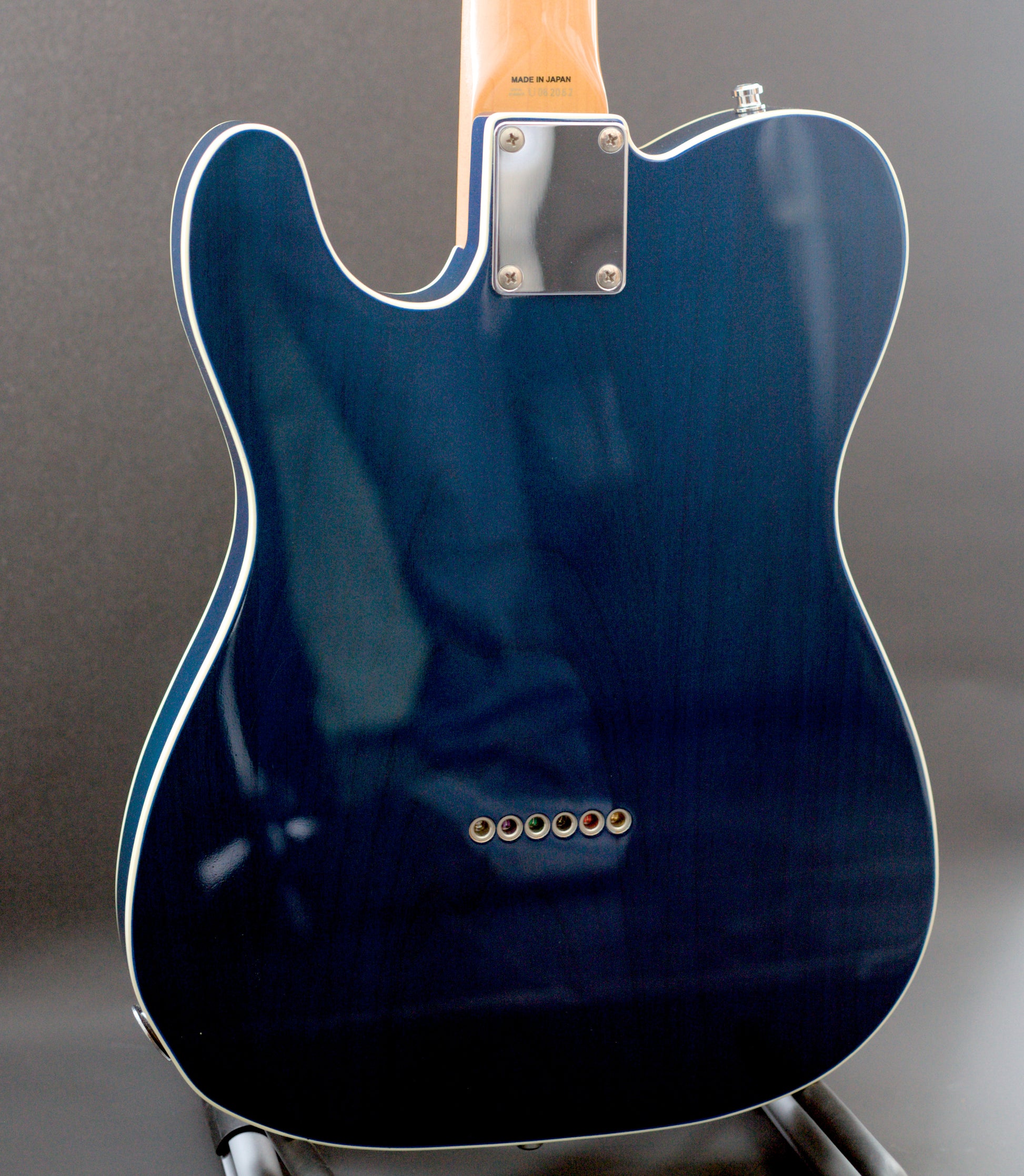 A stunning Japanese Telecaster. In beautiful, deep Transparent Blue which lets the wood grain show through.
