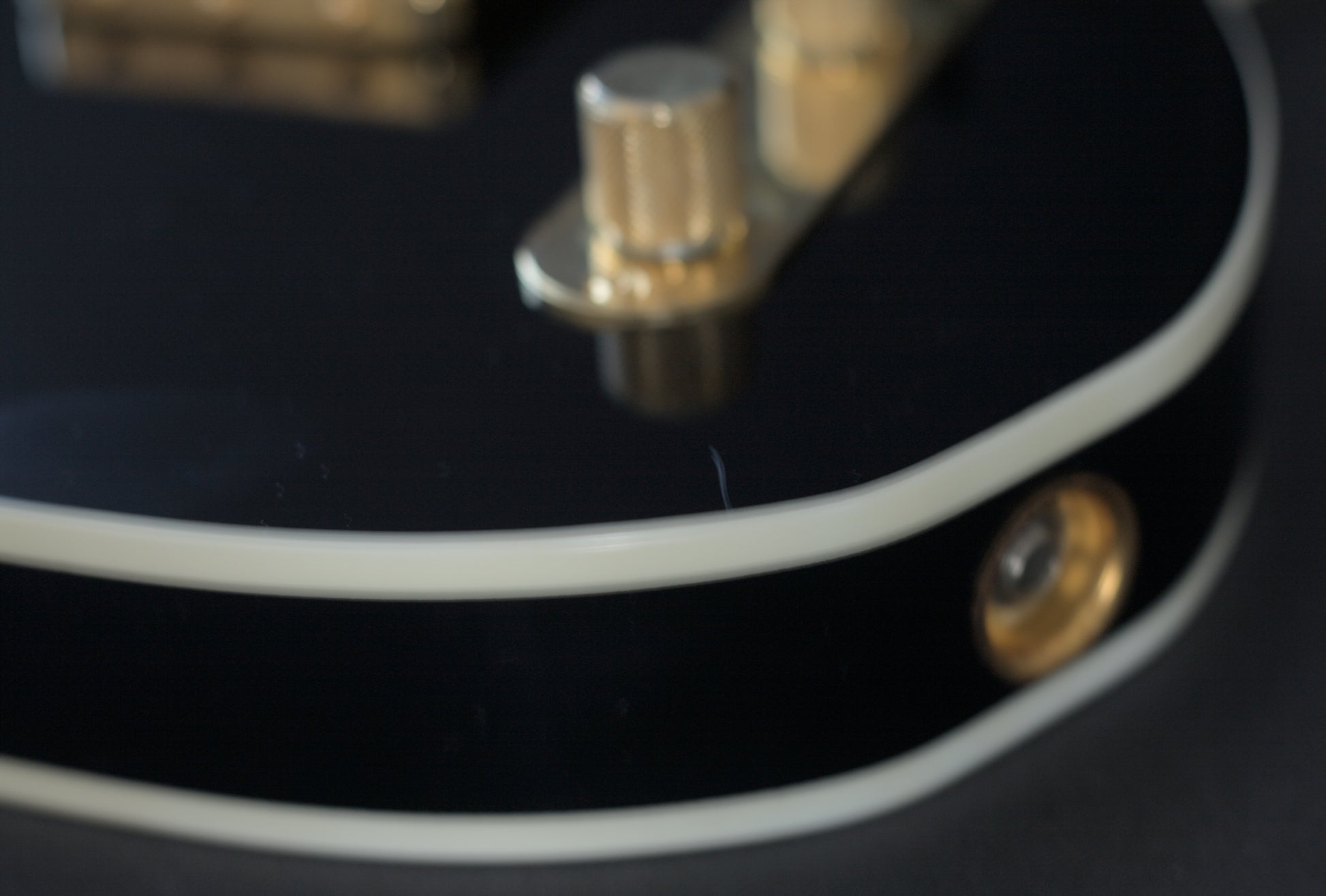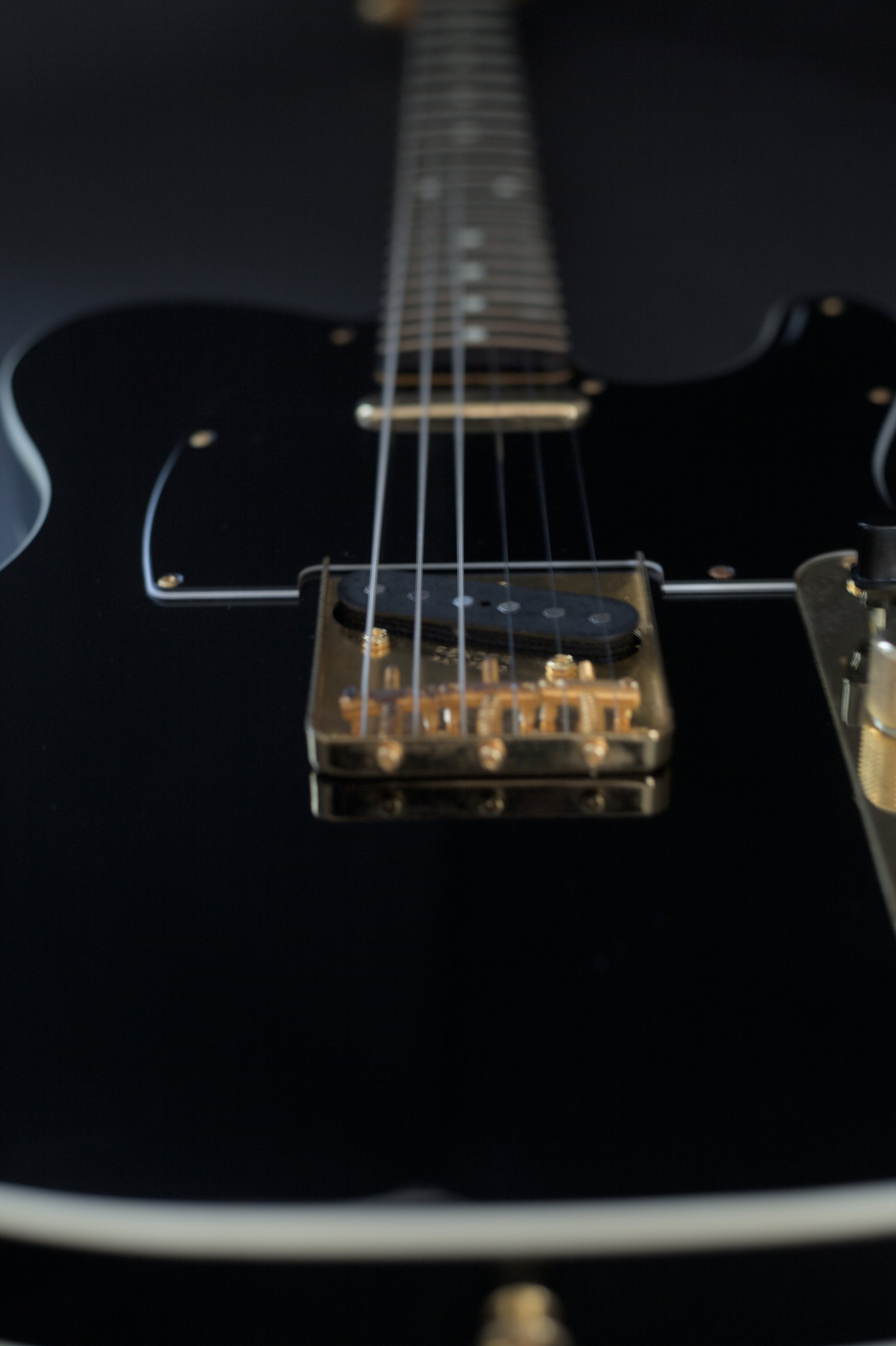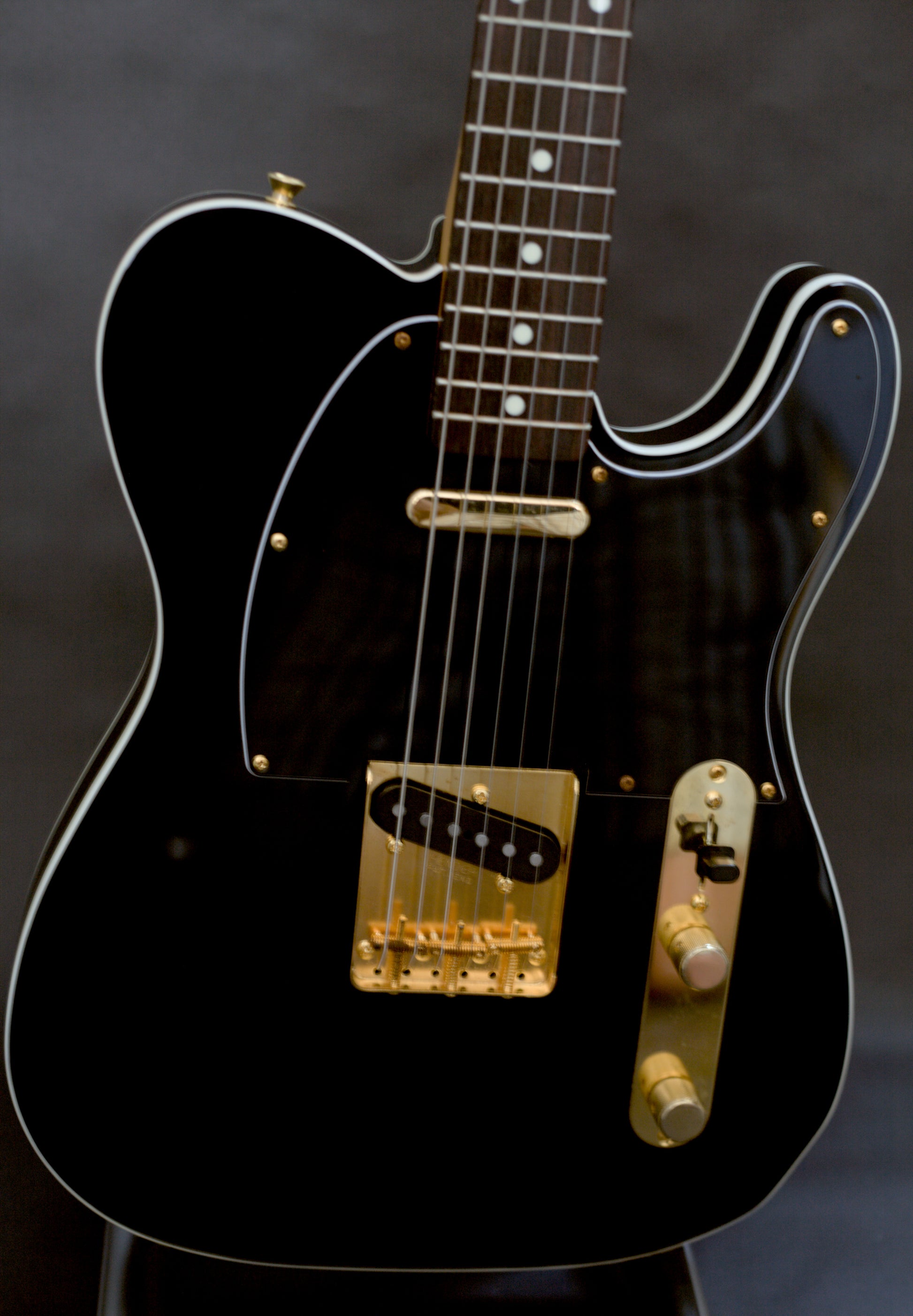 A stunning Japanese Telecaster. In dashing Piano Black with cream binding to the front and back, a matching black headstock and, as if it couldn't get any better, gold hardware! It has an alder body and a dark 7.25 radius rosewood fingerboard and fabulous U.S. TL Vintage pickups. It weighs in at 7lbs 12 oz.