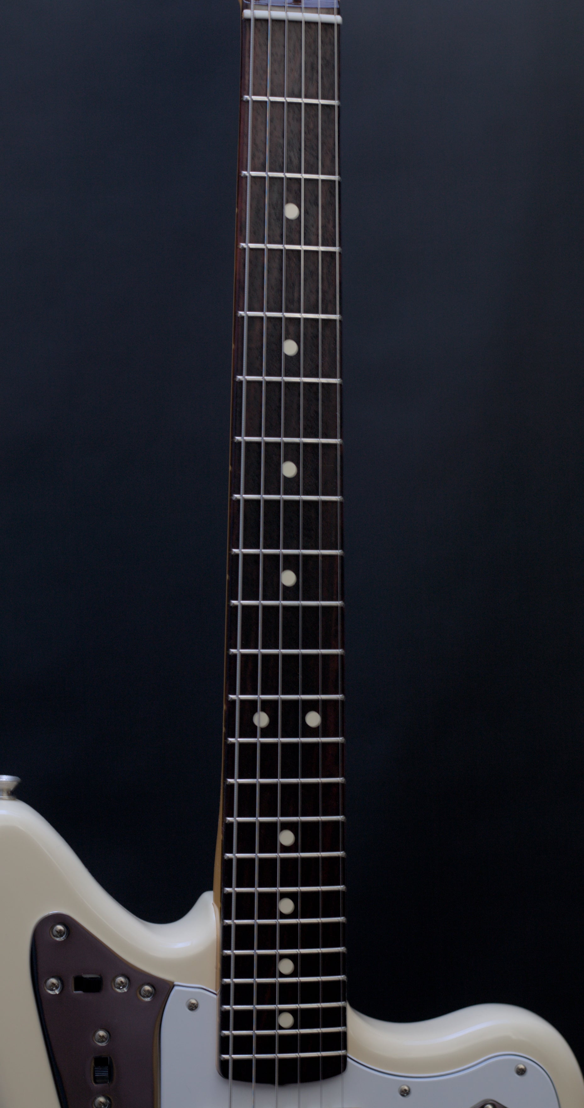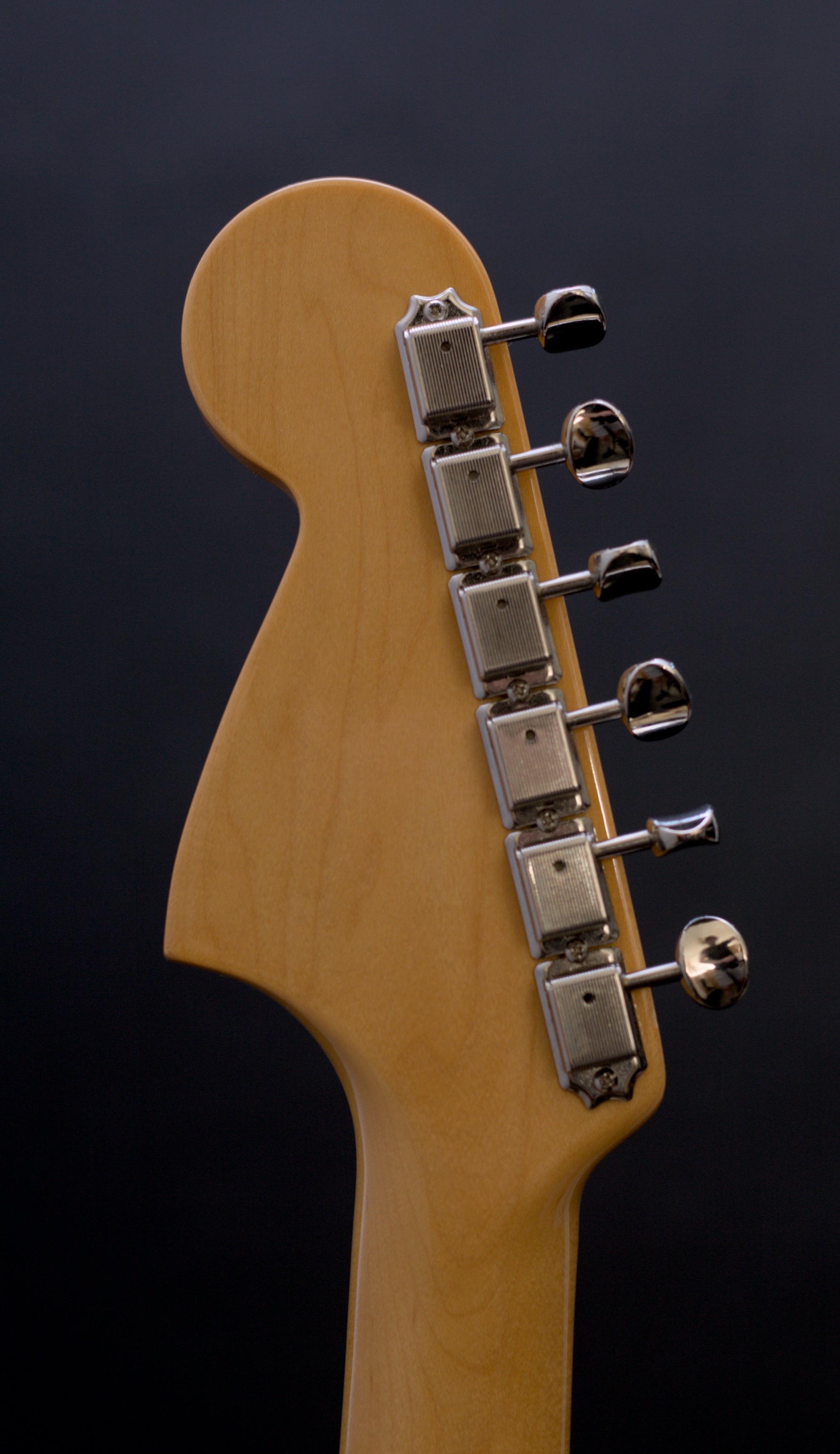 Maple neck based on Marr's 1965 Jaguar, with custom profile and vintage-style heel truss rod adjustment