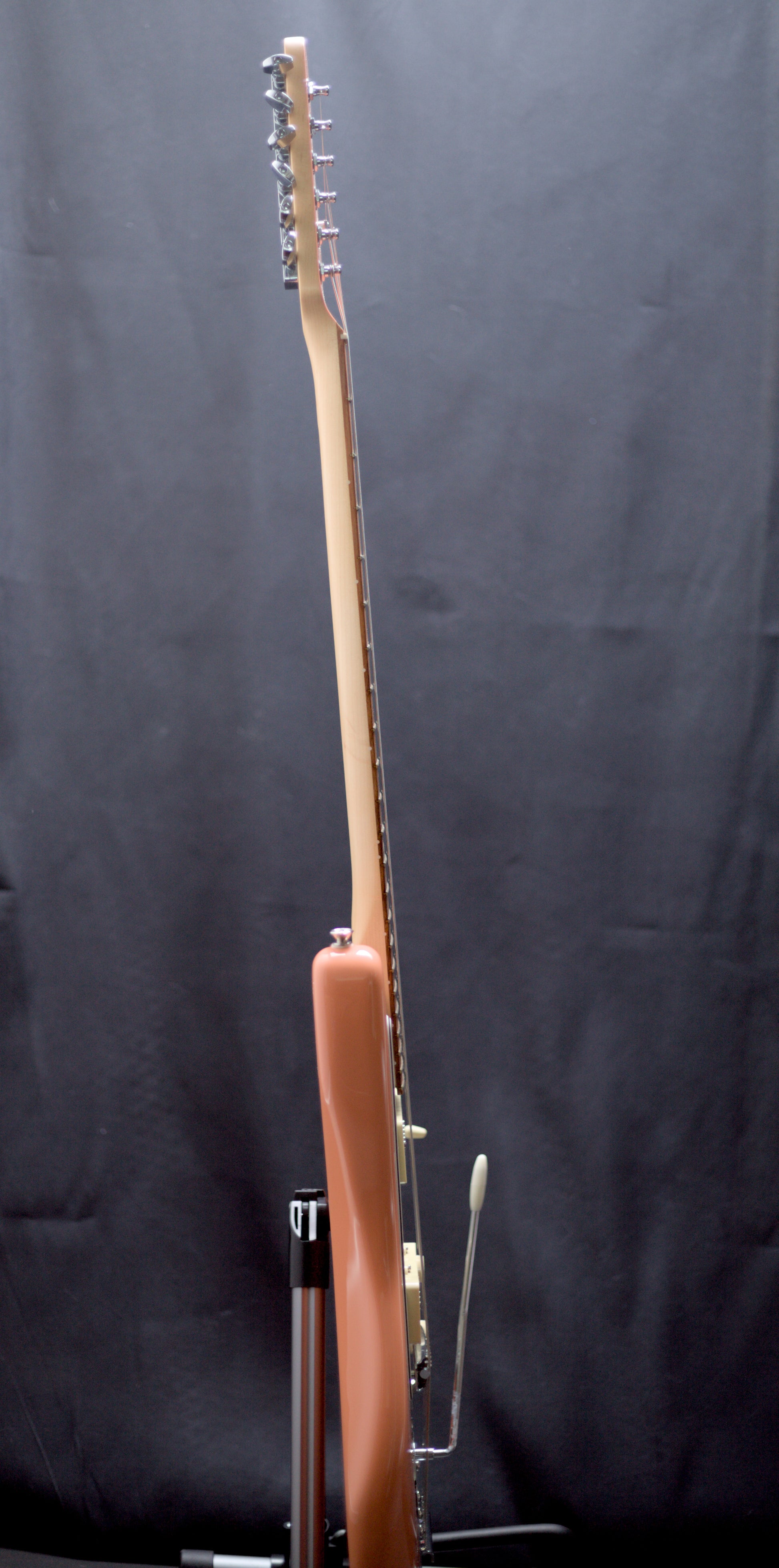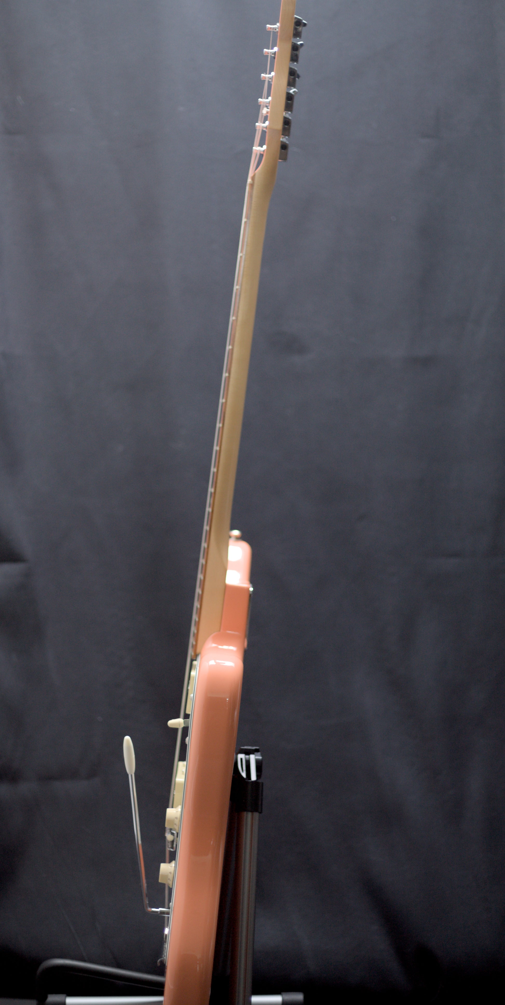 Other highlights include a series/parallel 4-way selector switch for added versatility, and a rare Pacific Peach finish with matching headstock!