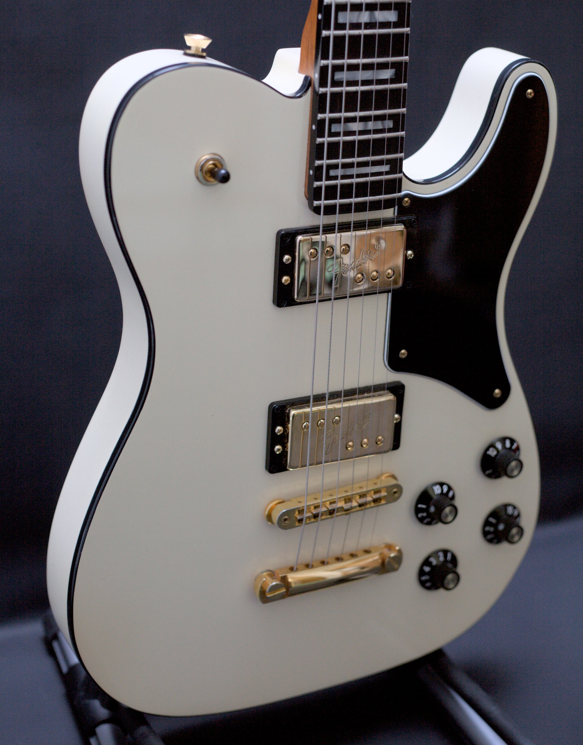 It takes a big personality to show up in a white tux – and the Troublemaker Tele has the swagger to pull it off. The bold Olympic White lacquer finish and swanky gold hardware belies this guitar’s true purpose – to cause an uproar and make a racket.