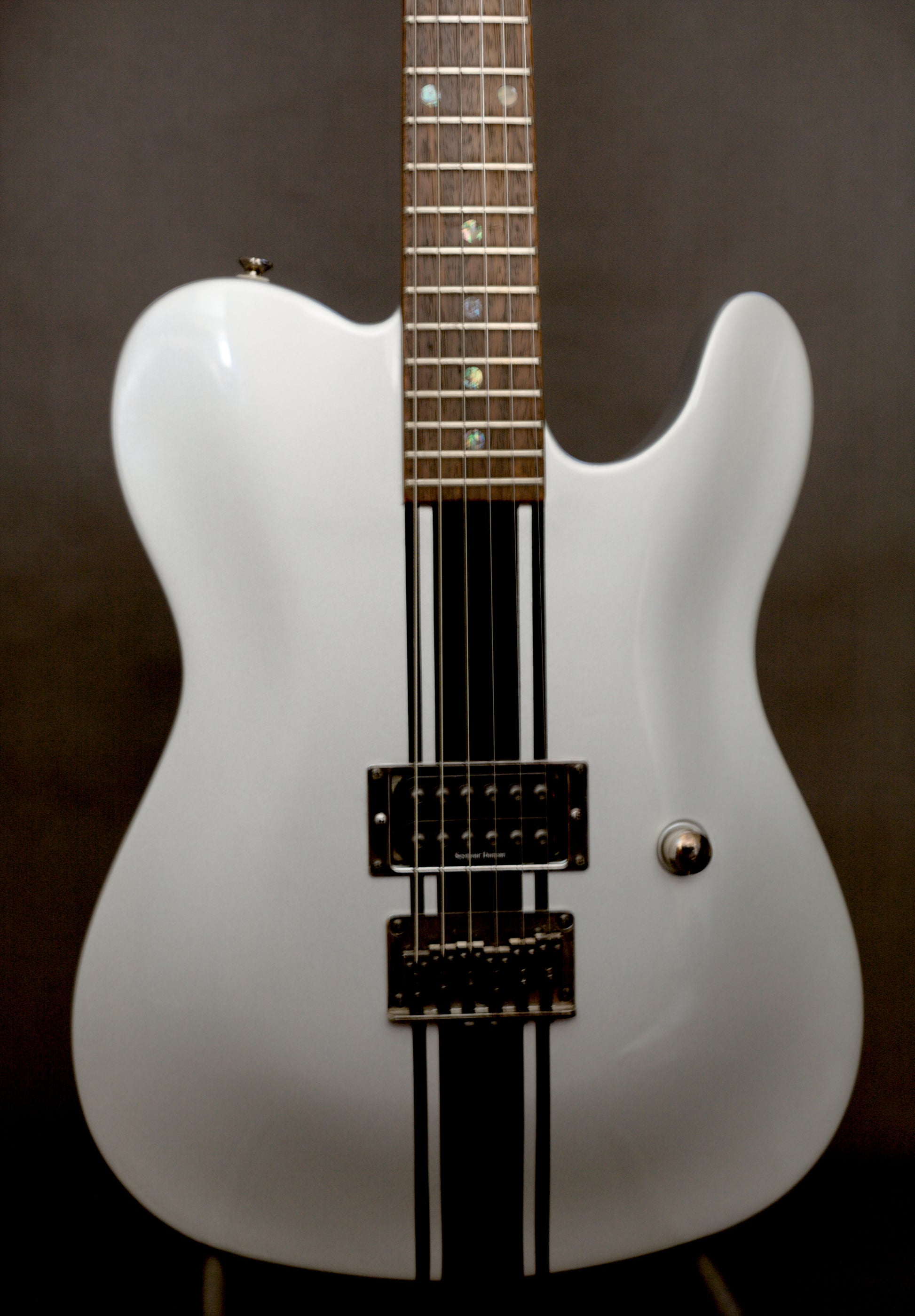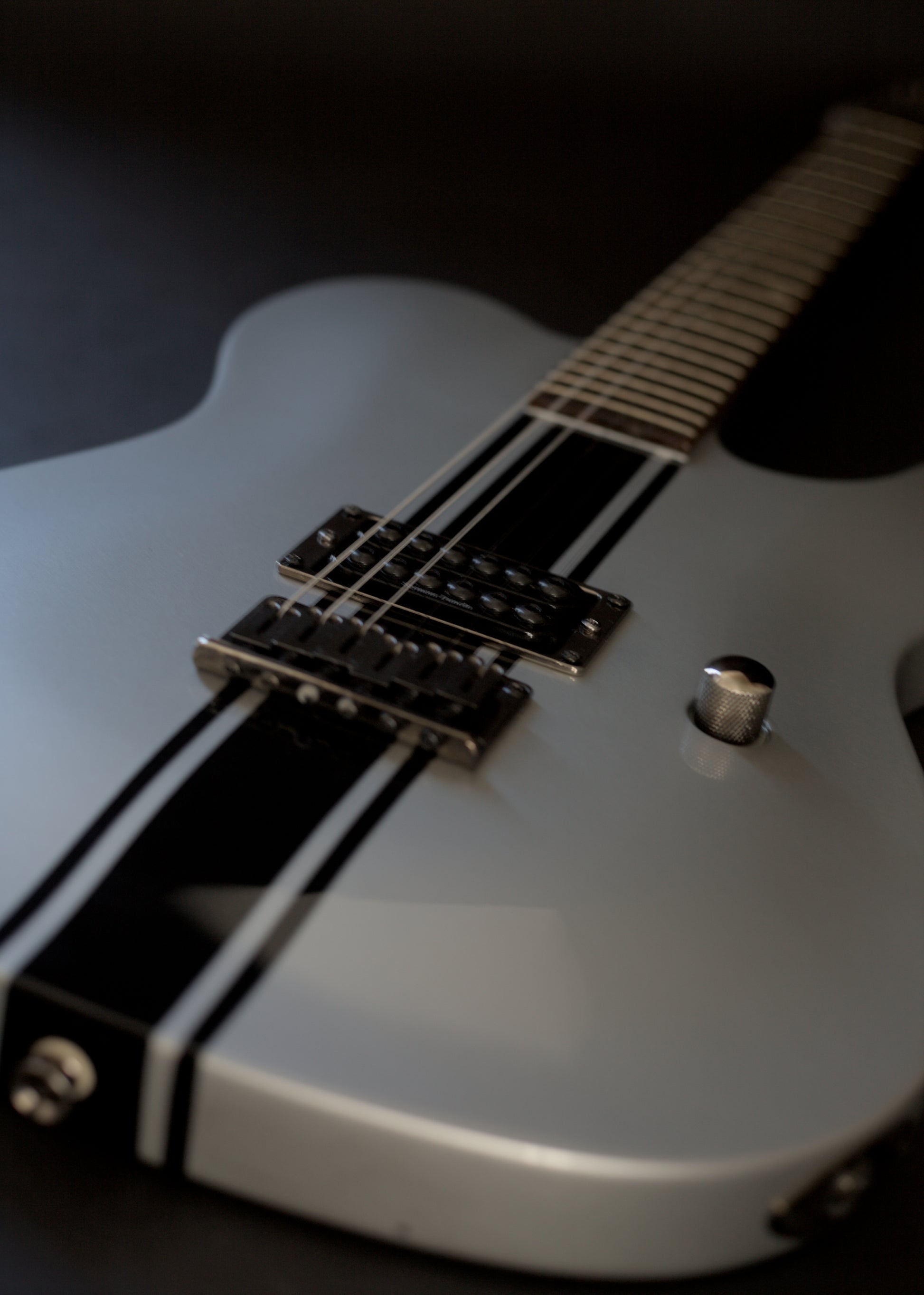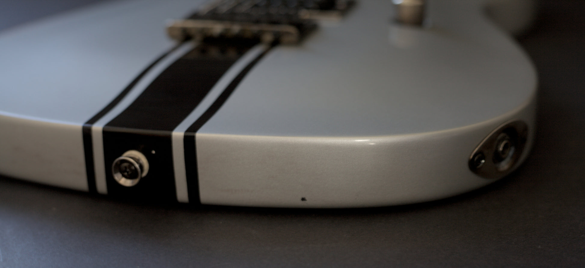 We do get some very cool and rare instruments at Far Out Guitars, even if we do say it ourselves! This is a Limited Edition Korean-made Fender Esquire (the single-pickup precursor to the Telecaster) with a Seymour Duncan humbucking pickup and set-neck, finished in stunning metallic silver to the body, neck and headstock and, as if it couldn't get any cooler, racing stripes which go all around the body! The Rosewood fingerboard is inlayed dot abalone inlays to give it a really premium look.