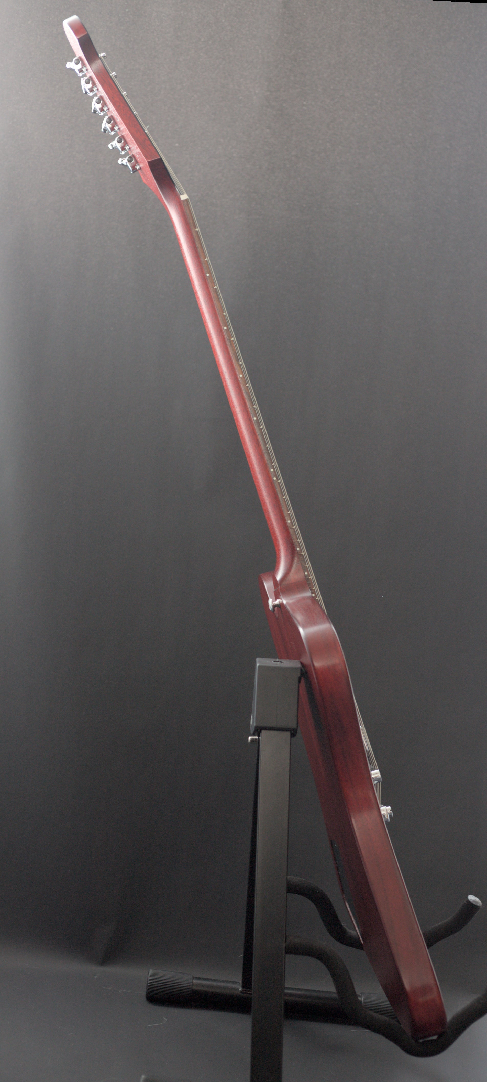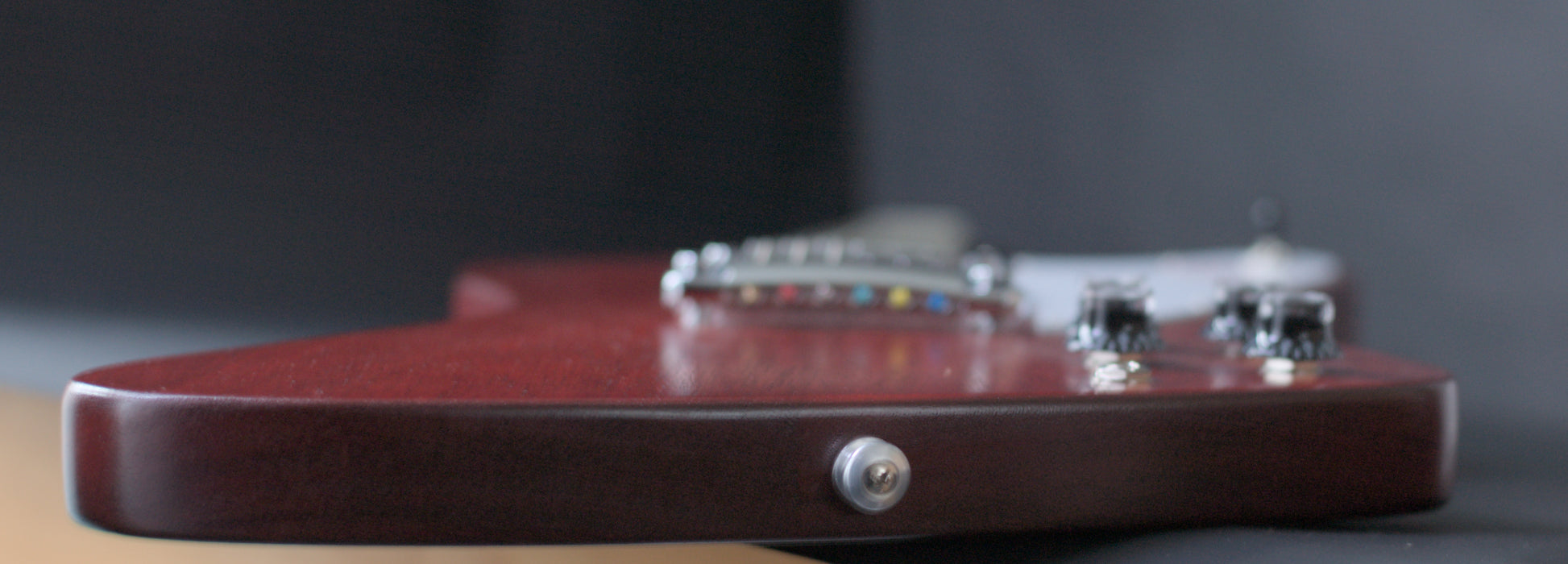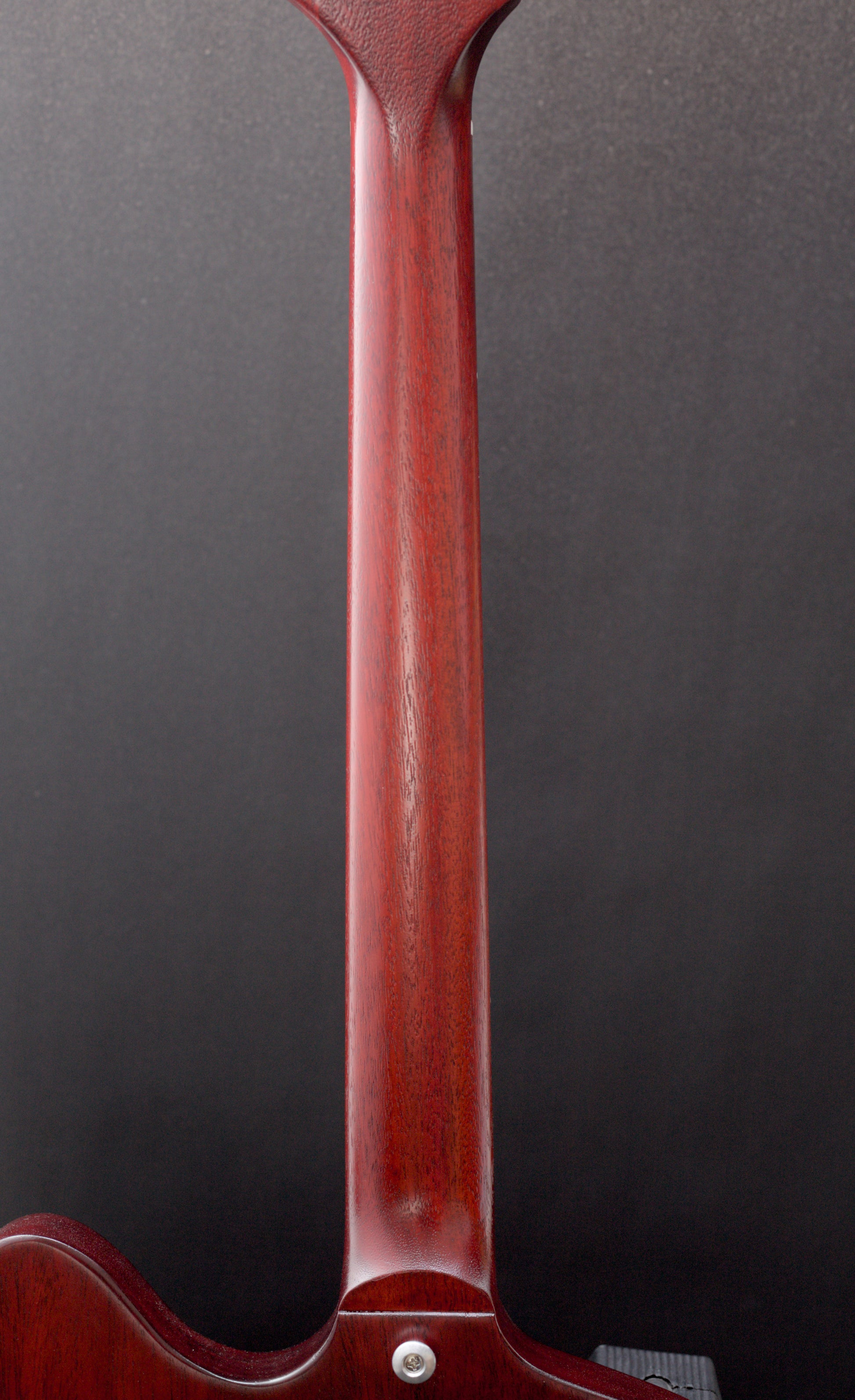 The Mahogany body is finished in a lush Satin Cherry with White pickguard for fresh, vibrant appeal. The Mahogany neck benefits from 22 medium frets, a 24.75" scale length, Slim Taper neck profile and a killer Rosewood fingerboard. It boasts a standard reverse six-in-a-line headstock, giving it a feel that is authentically vintage and modern.