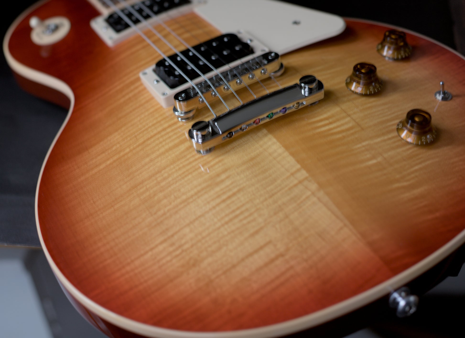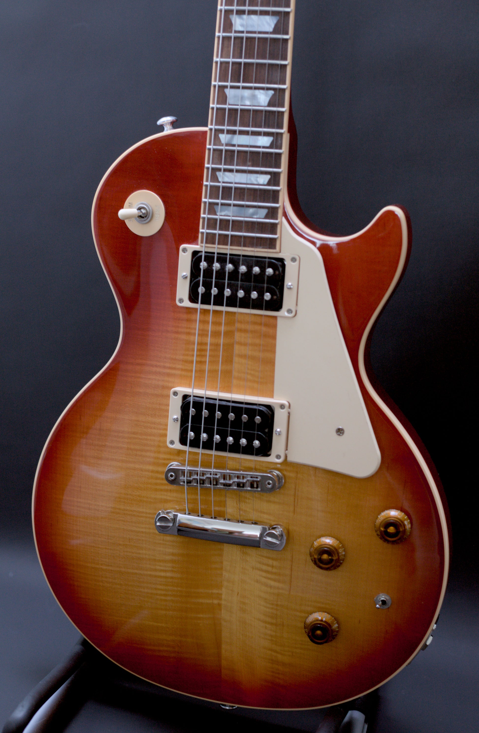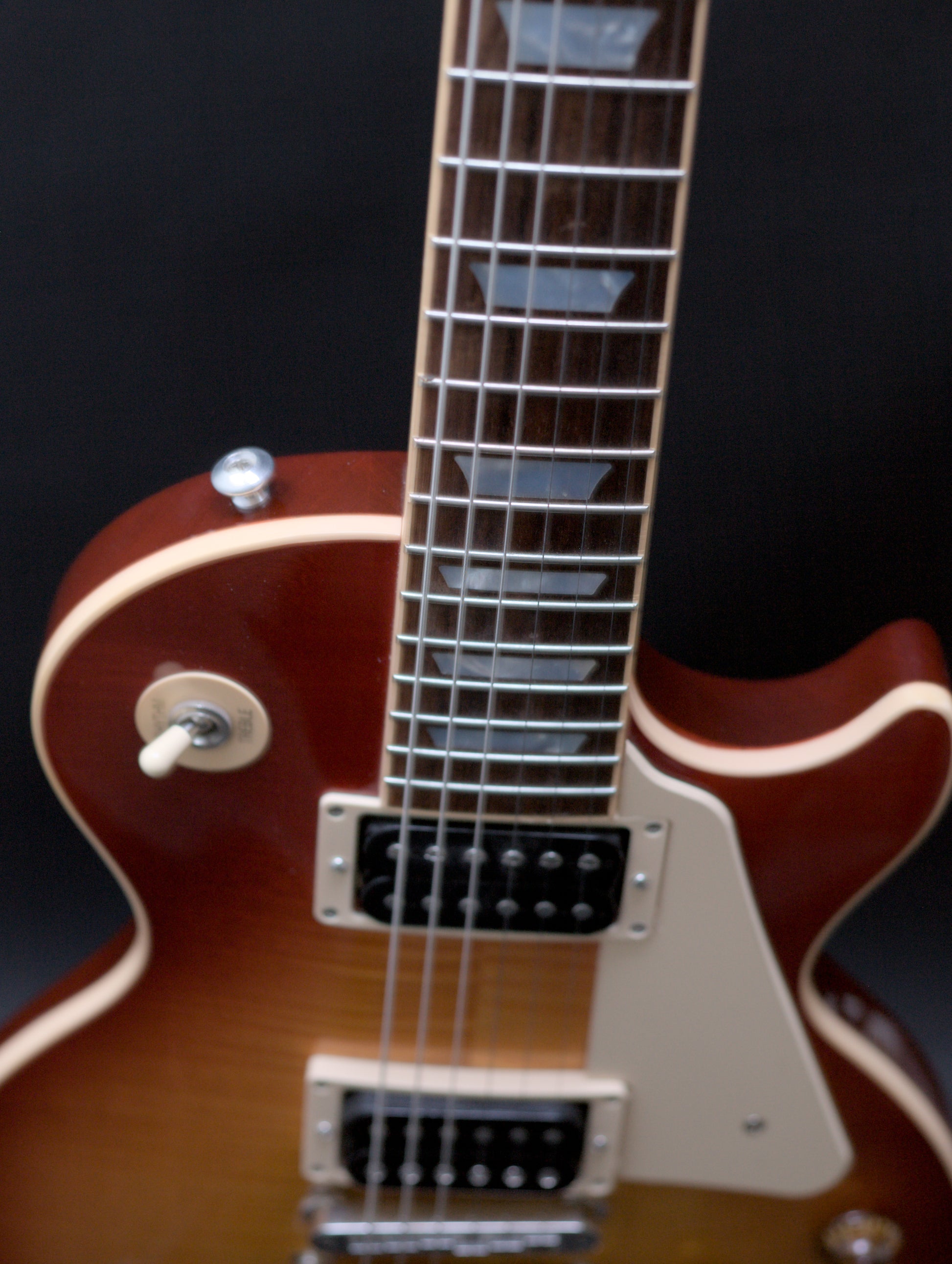 Wood Composition: Mahogany body, Figured Maple top, Rosewood fingerboard