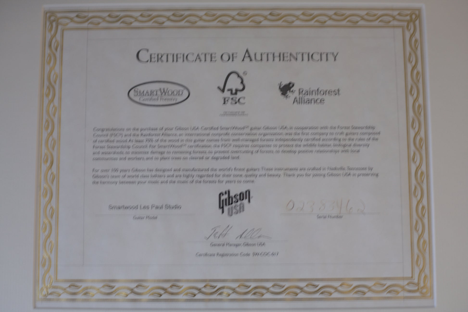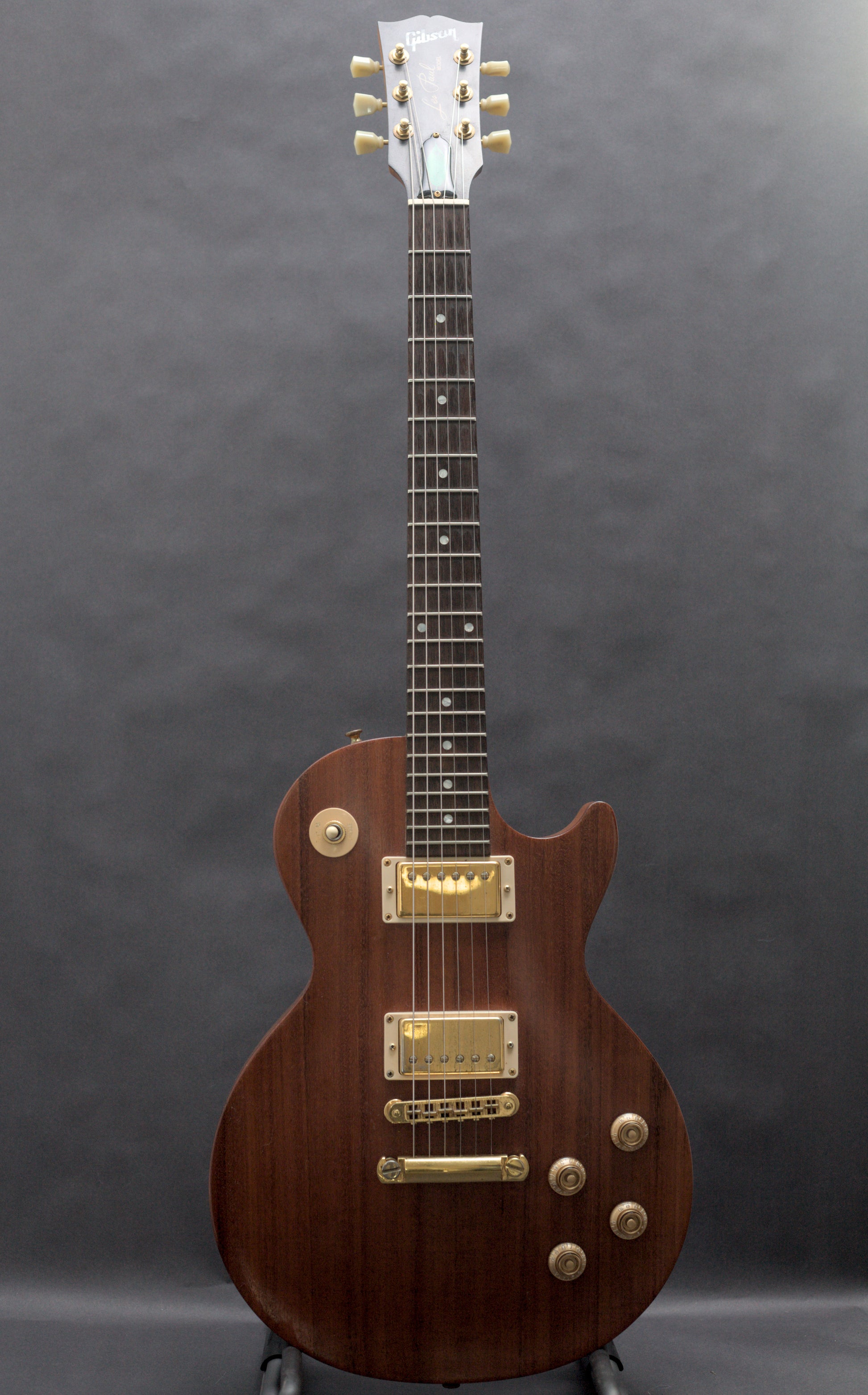 Gibson was one of the first big companies to embrace sustainability and bring sustainably harvested wood into their range. This beautiful guitar is a Smartwood Studio from 2003, the first year of their production. It has a top made from Muiricatiara, and a Preciosa rosewood fingerboard and features a metallic green leaf on the truss rod cover.