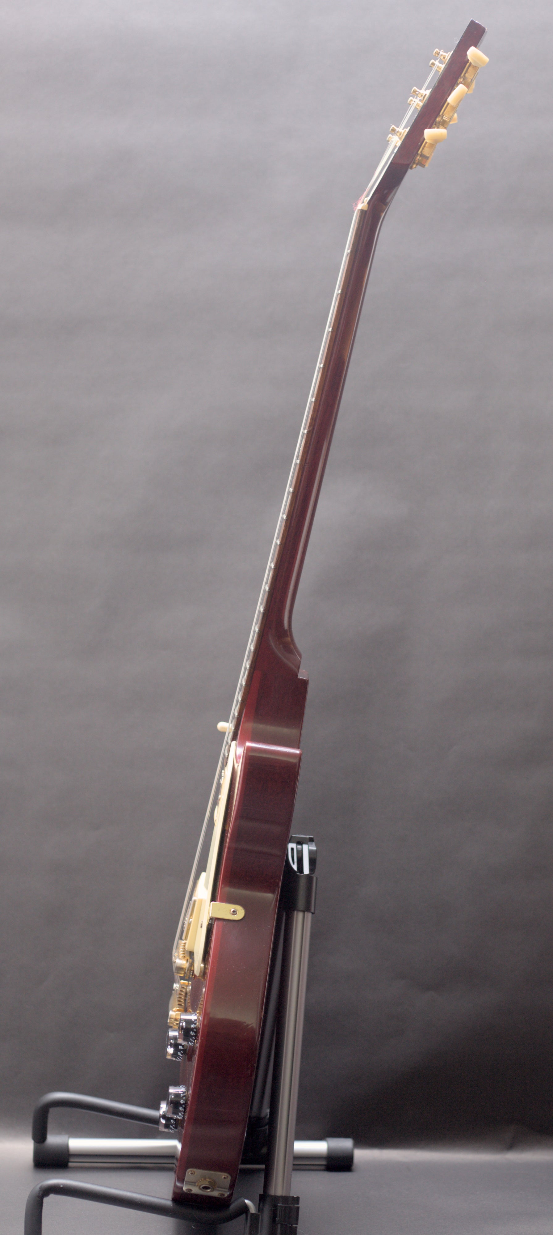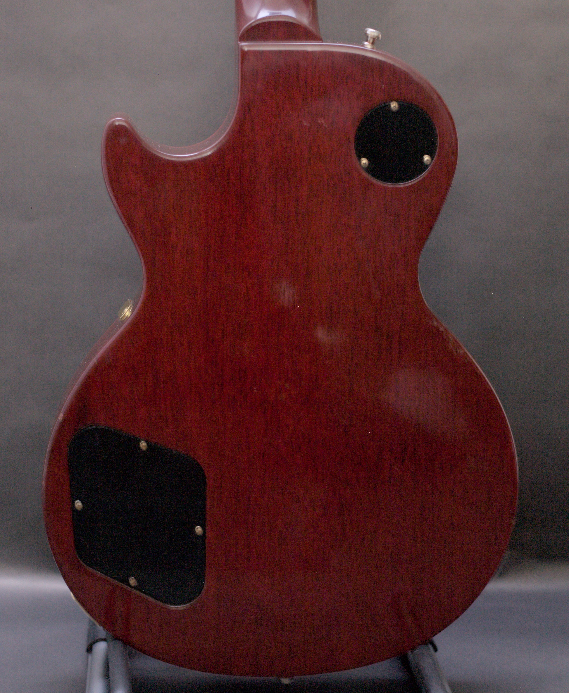 It is in very good condition throughout. There are no breaks, cracks or repairs. The electrics are spot on and are working perfectly. Cosmetically it shows some dings and light scratches across the guitar and some buckle rash to the reverse of the body. There is a fair bit of checking to the lacquer on the front of the headstock, which is not unusual for Gibsons of this era. The gold hardware is tarnished and aged. The frets are in good shape.