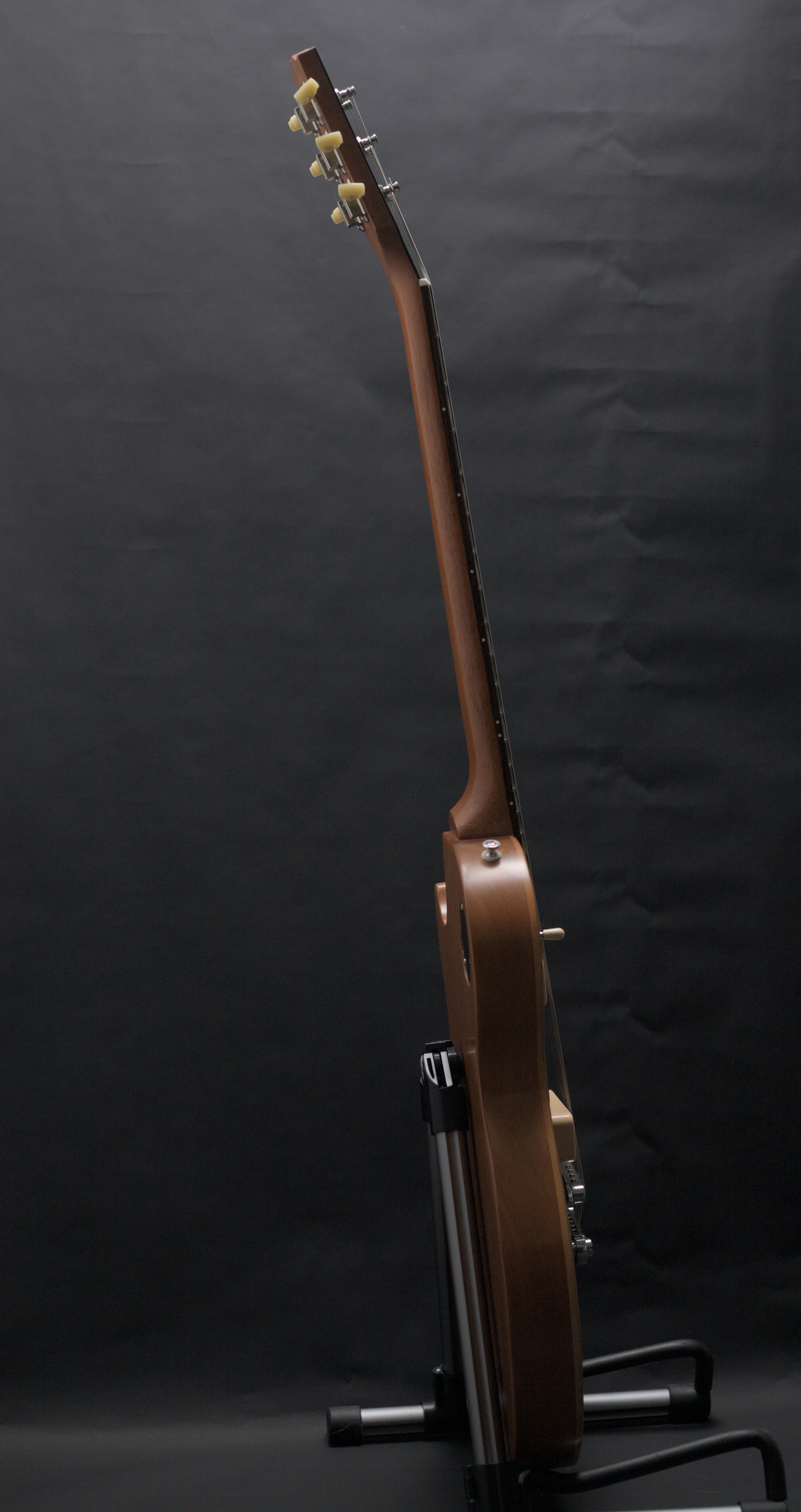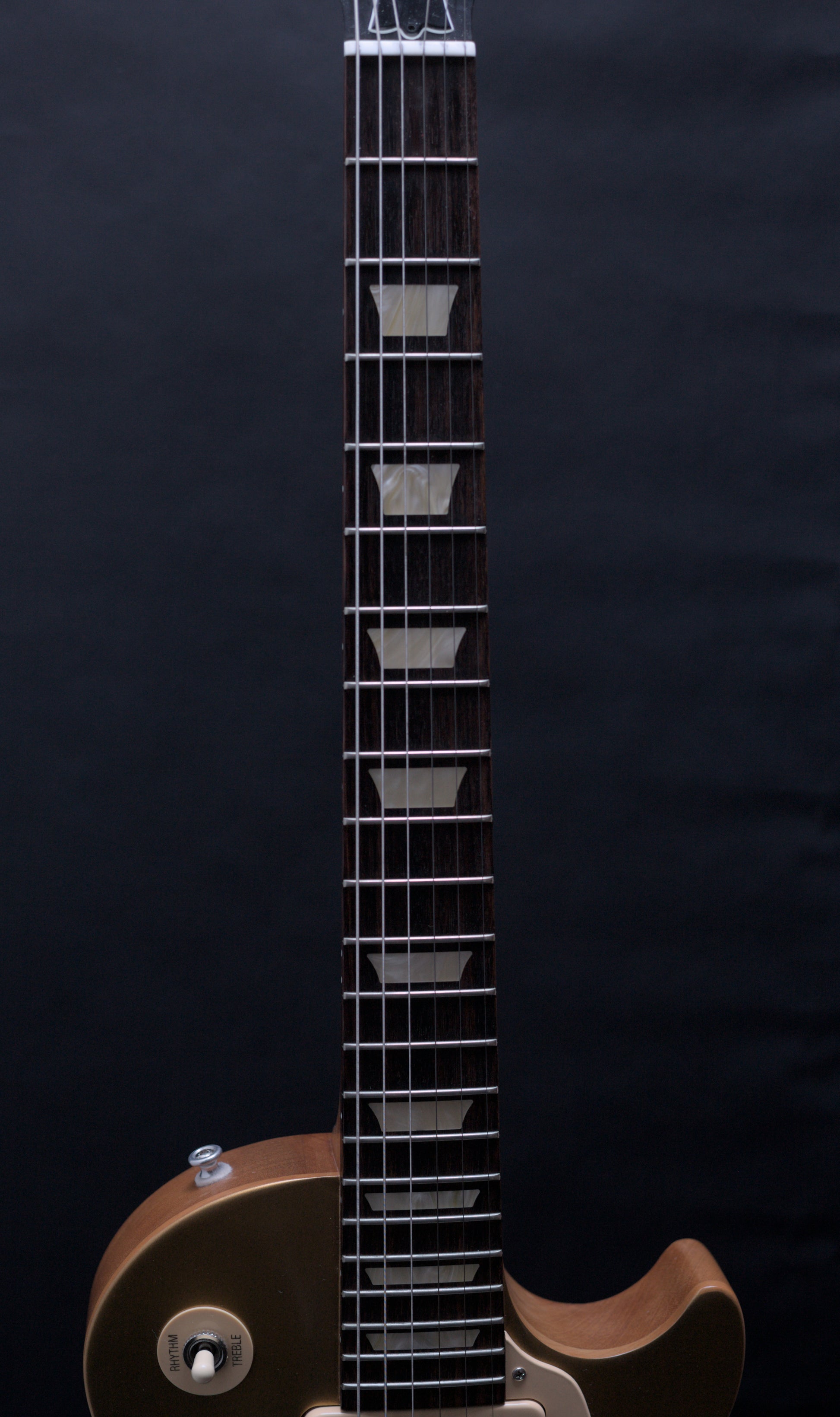 The body is crafted from chambered mahogany, joined to a solid carved maple top. It has a rosewood fretboard. The neck is solid mahogany, and cut using a “quarter sawn” orientation which improves strength and resonance. The full 50s neck replicates the vintage specs of the classic era.