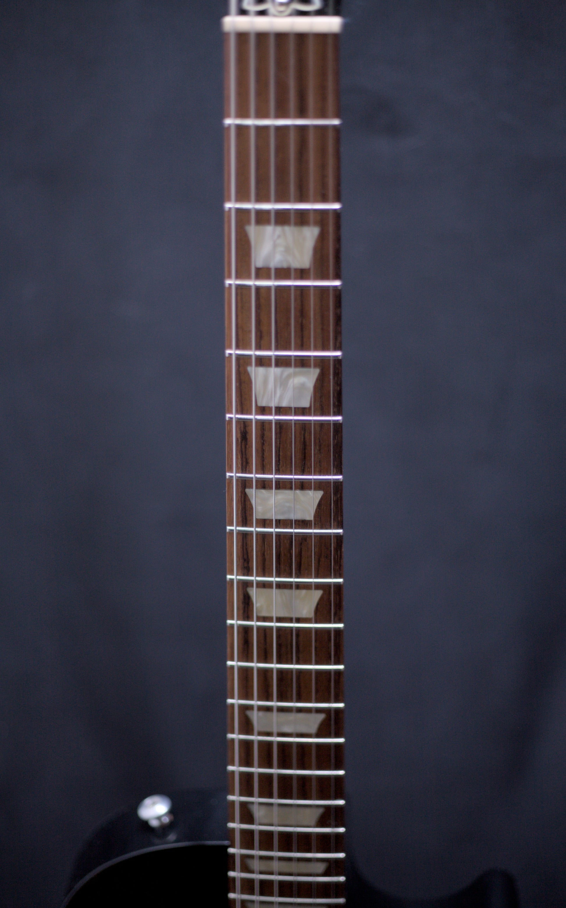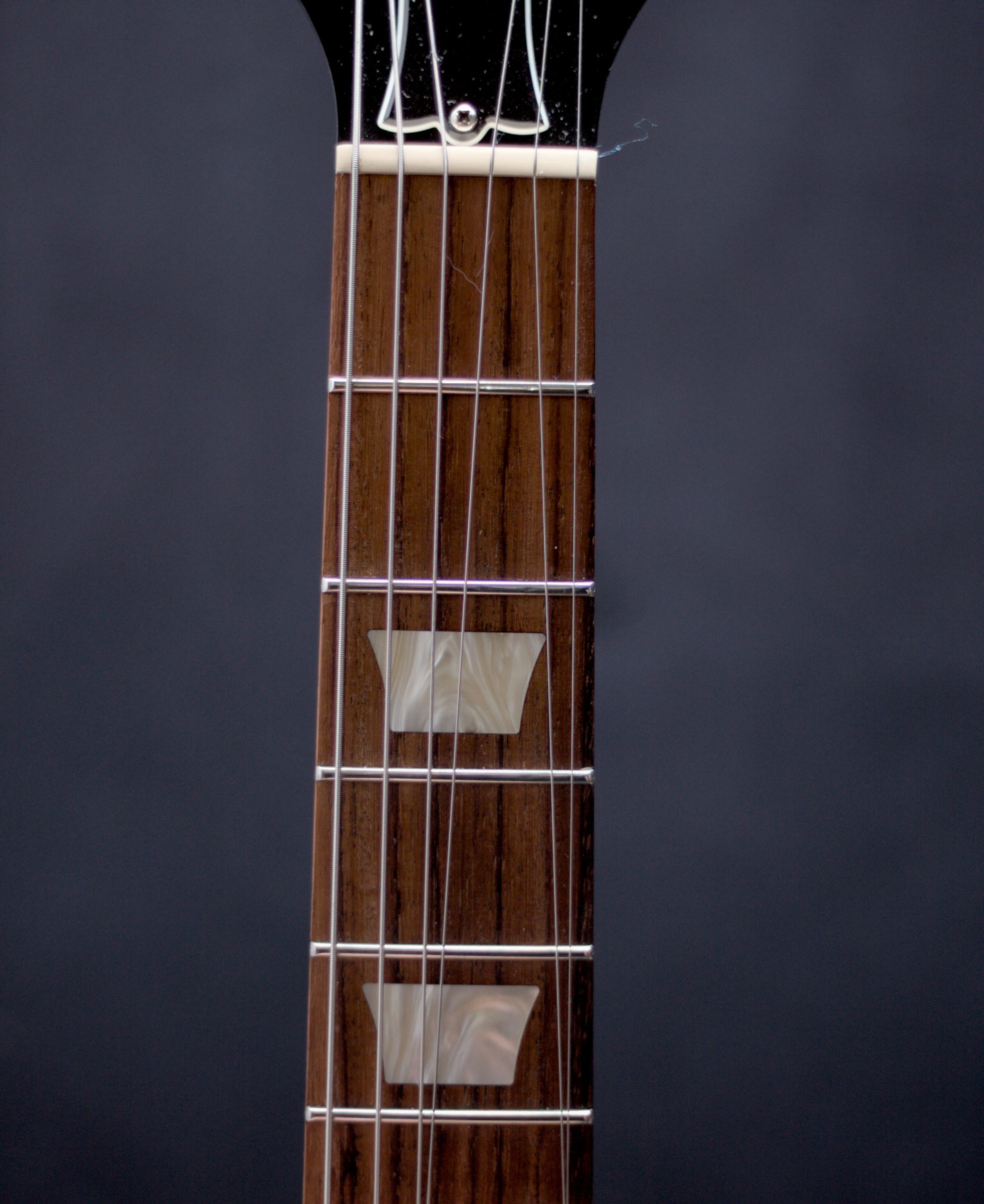 The pickups in this are great. They are lush when played clean, and visceral sounding with a bit of dirt. The body is crafted from chambered mahogany, joined to a solid carved maple top. The neck is solid mahogany, and cut using a “quarter sawn” orientation which improves strength and resonance. The fast and comfortable SlimTaper neck profile reflects the feel of Les Paul Standards from 1960. The fingerboard may look like rosewood, but is, in fact, baked maple.