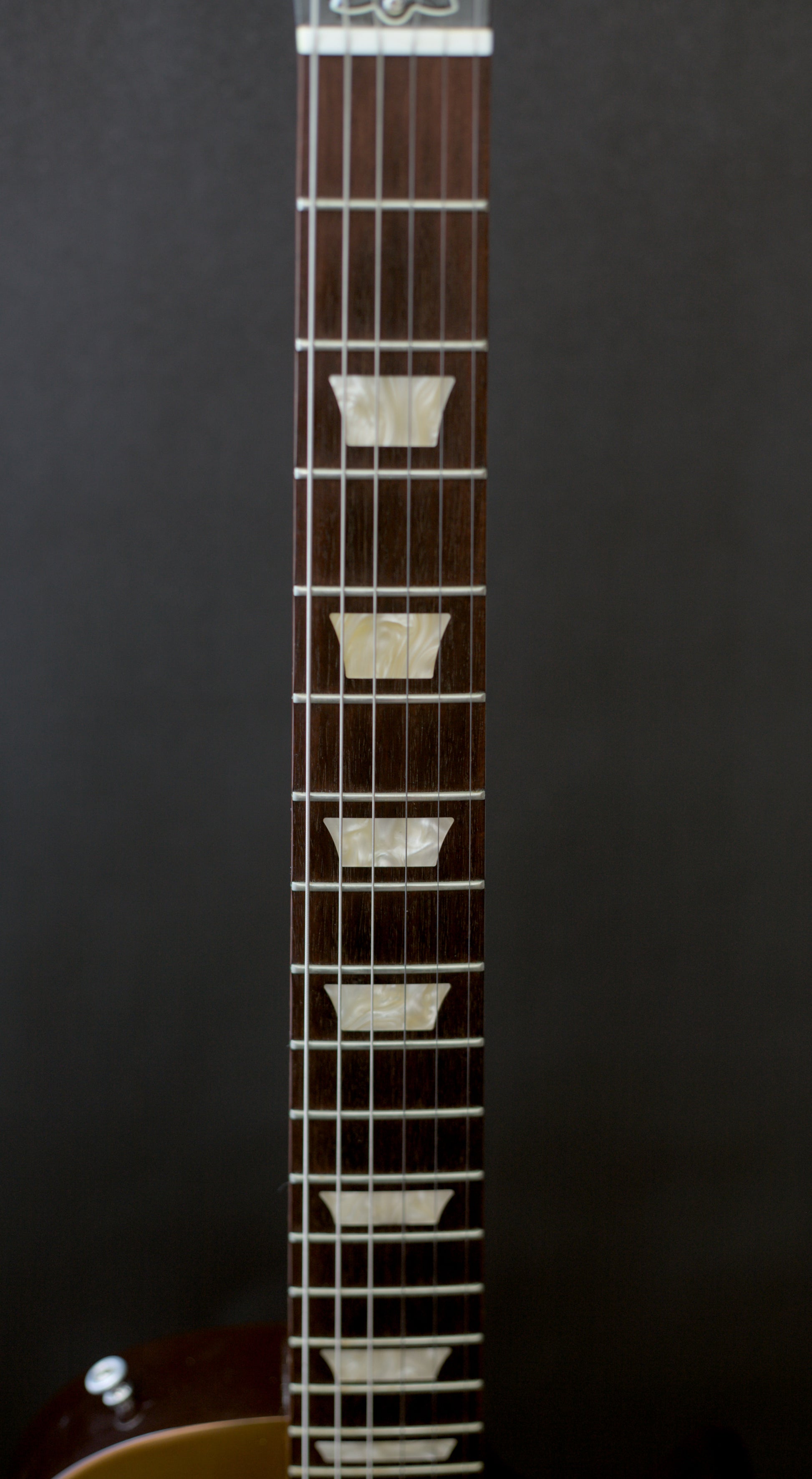 The neck of the guitar is made from solid, quarter-sawn mahogany, carved in the fast 60s SlimTaper profile and glued-in. The rich, brown Granadillo fingerboard has 22 medium-jumbo frets and traditional trapezoid inlays, and is unbound in keeping with the stripped-down look.
