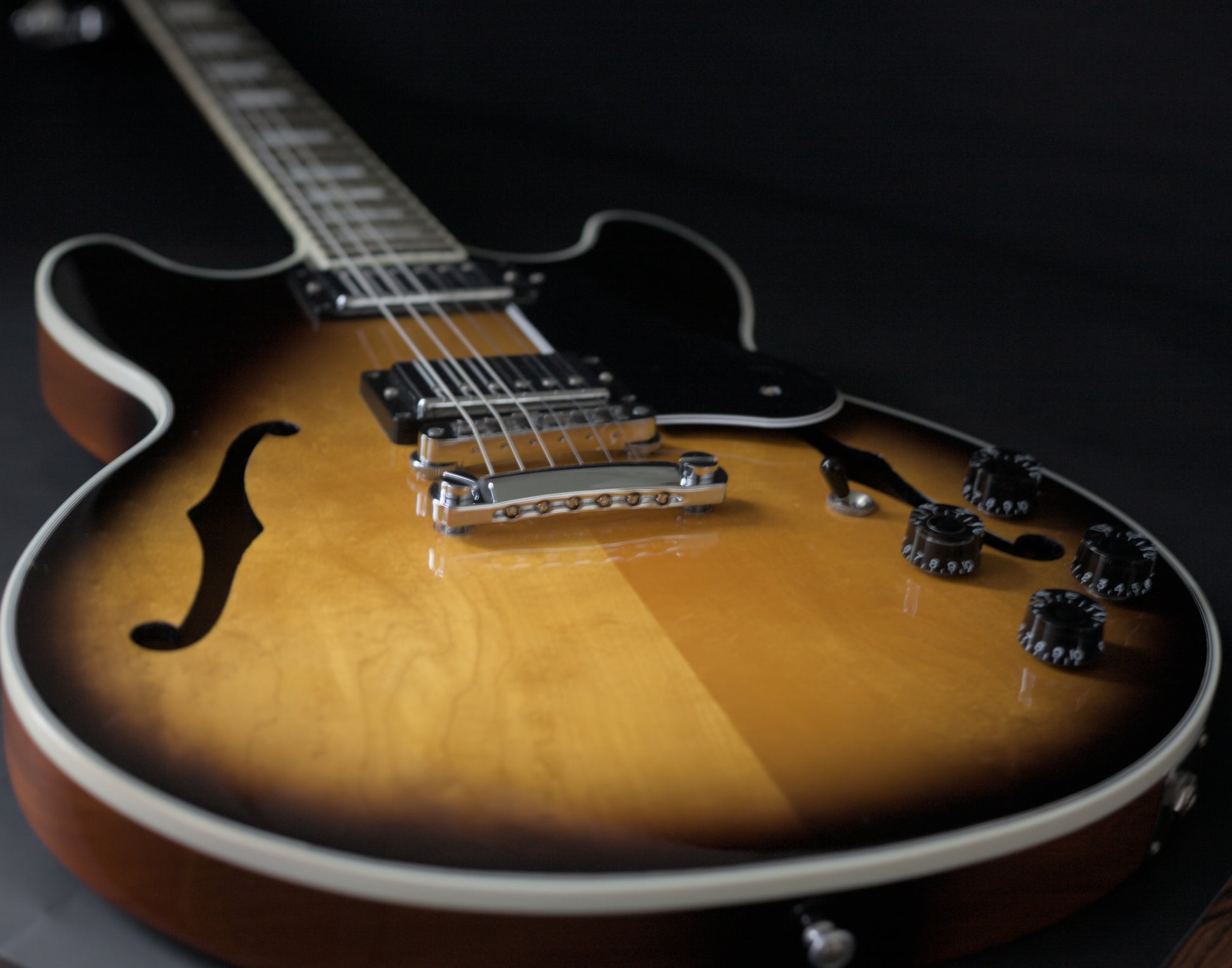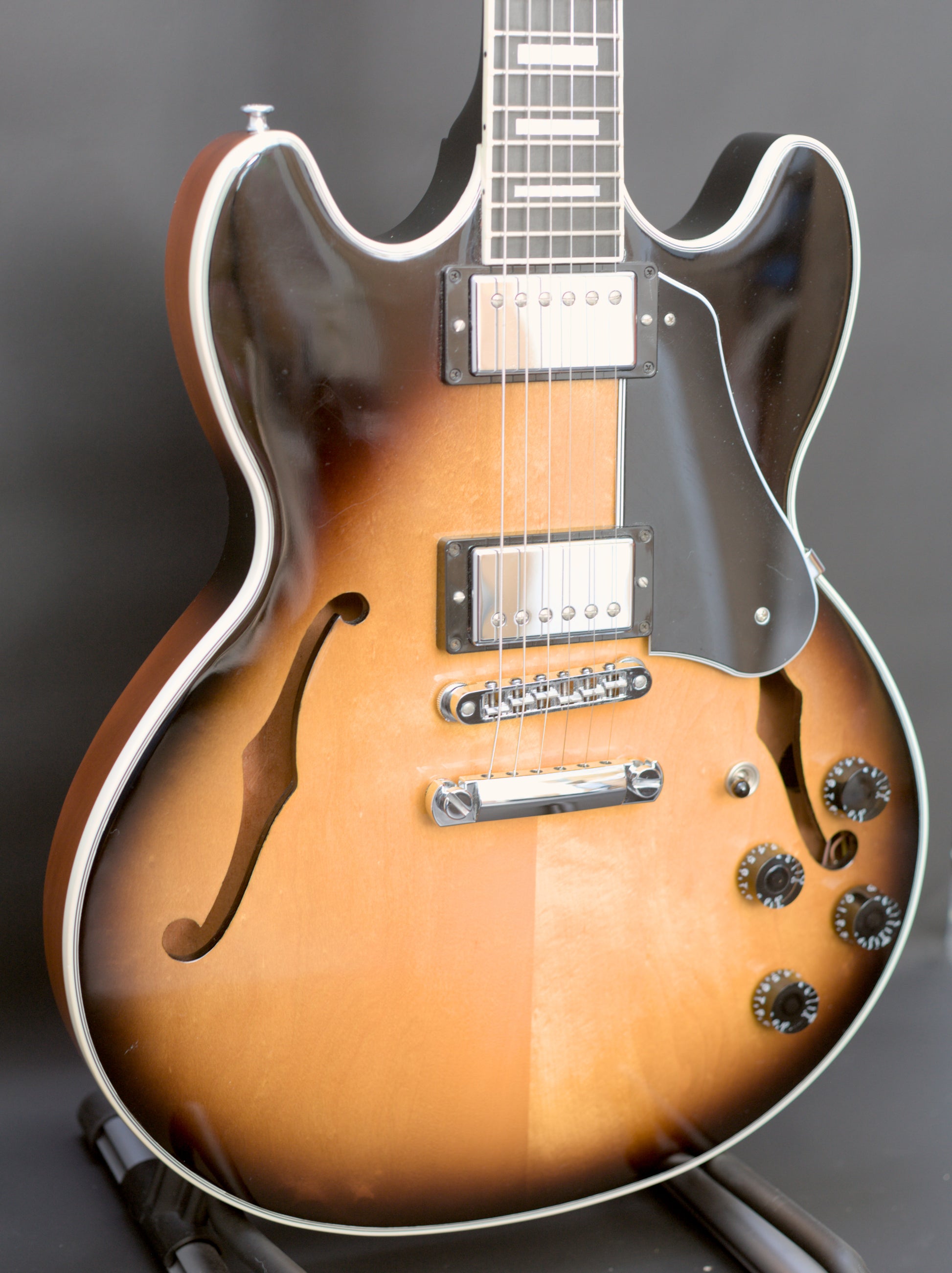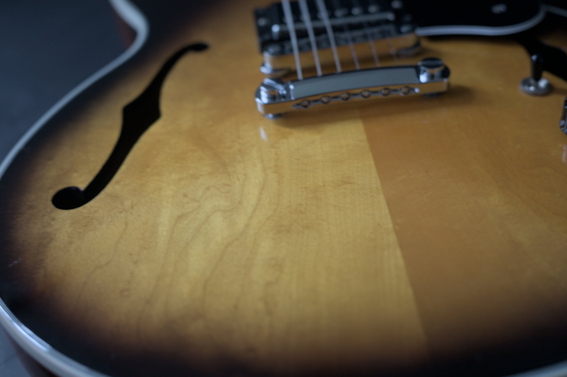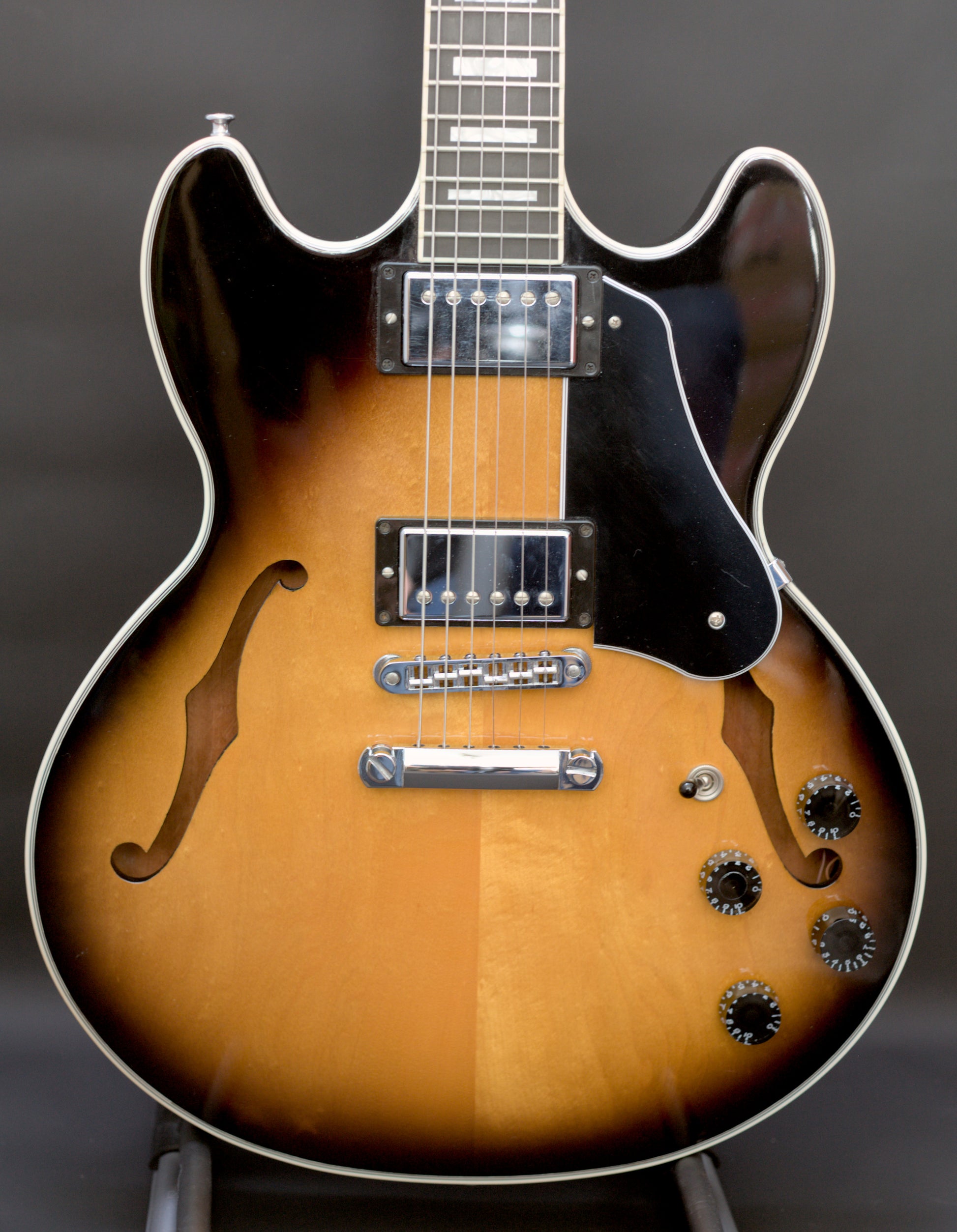The top on this gorgeous semi-hollow is stunning and has a fair bit of movement in it. The condition of this one is fantastic.