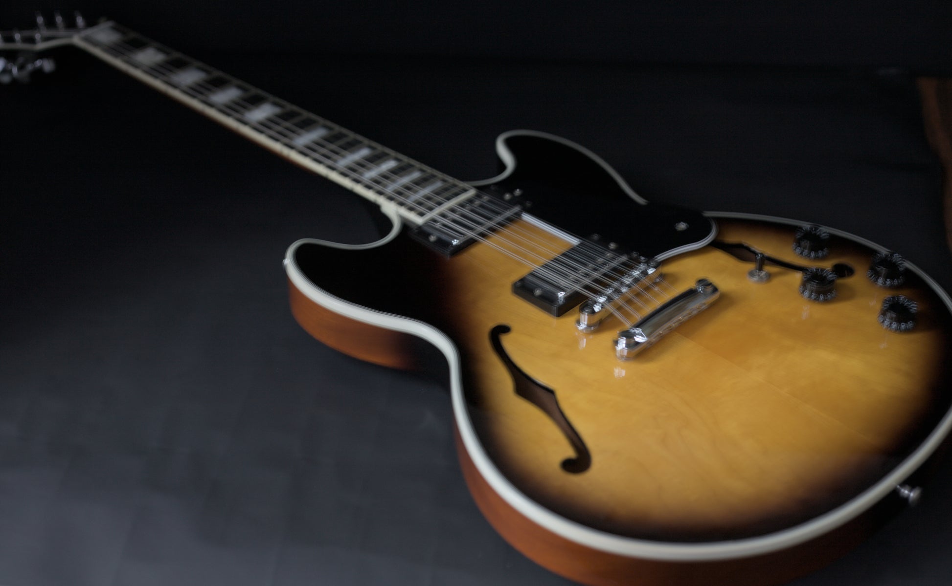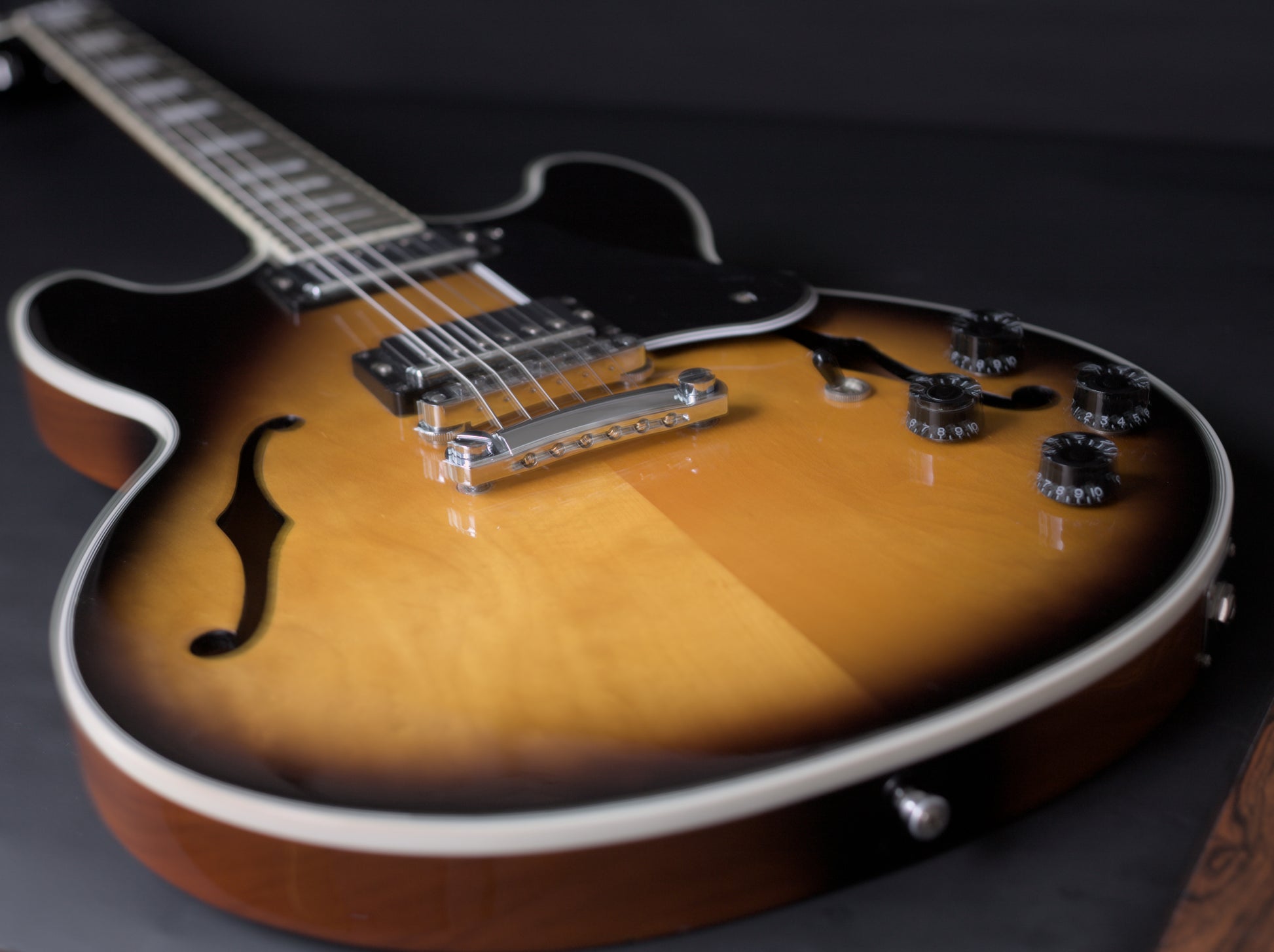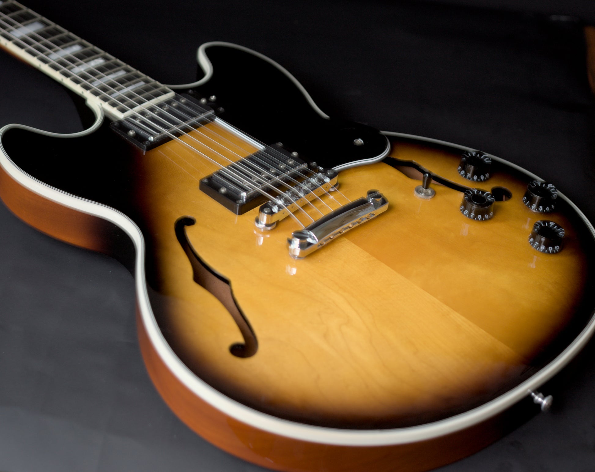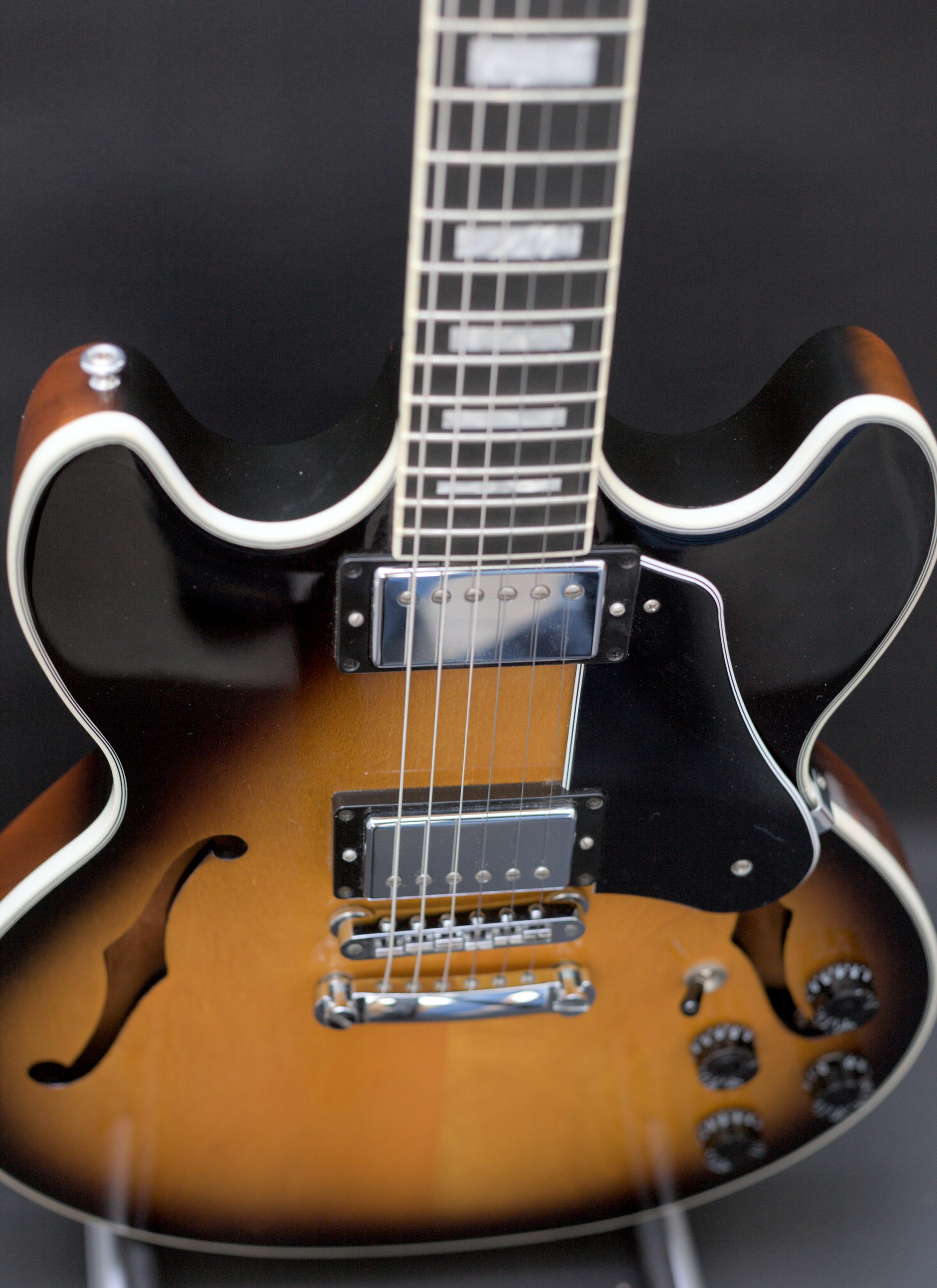 The top on this gorgeous semi-hollow is stunning and has a fair bit of movement in it. The condition of this one is fantastic.