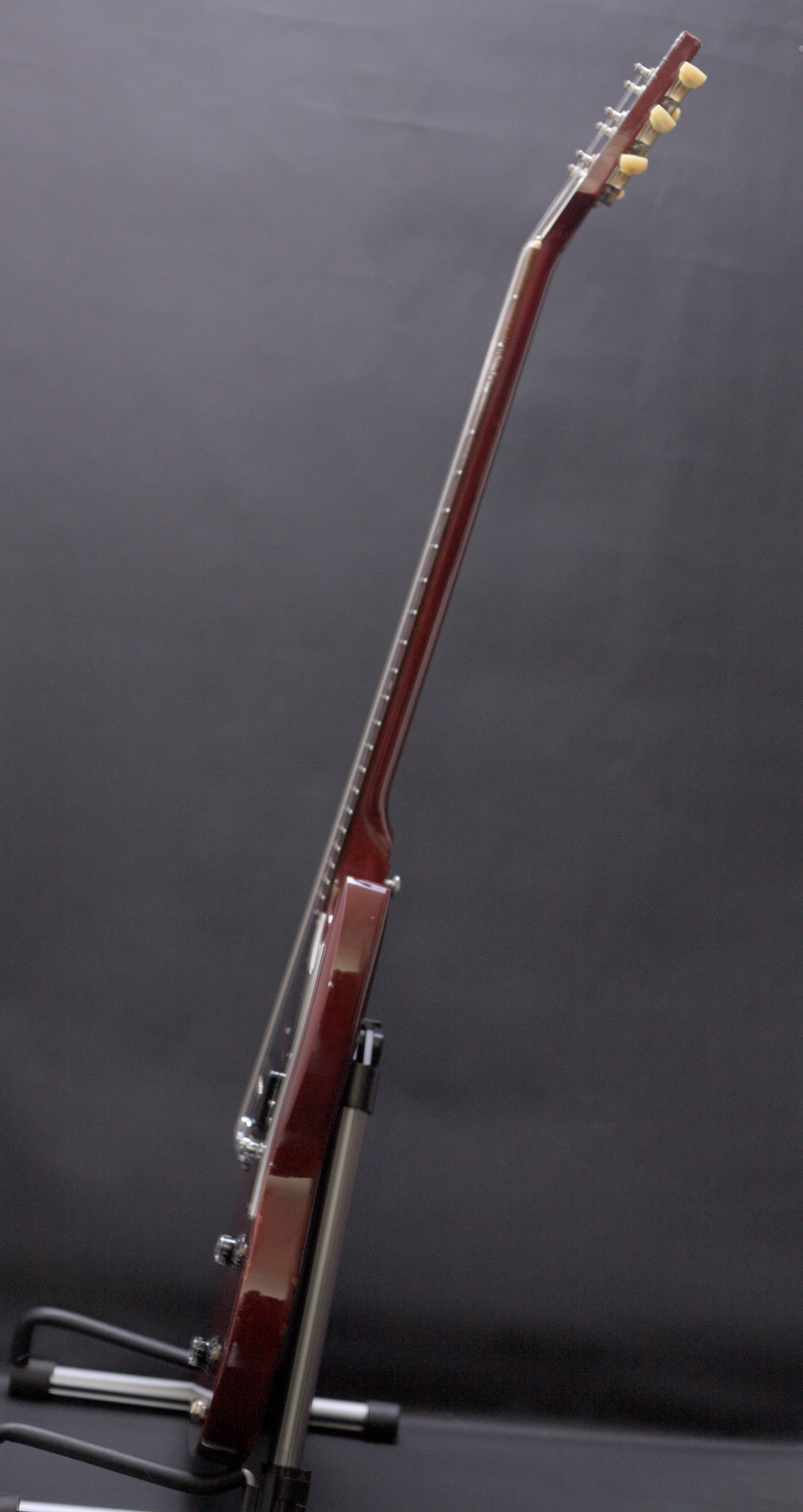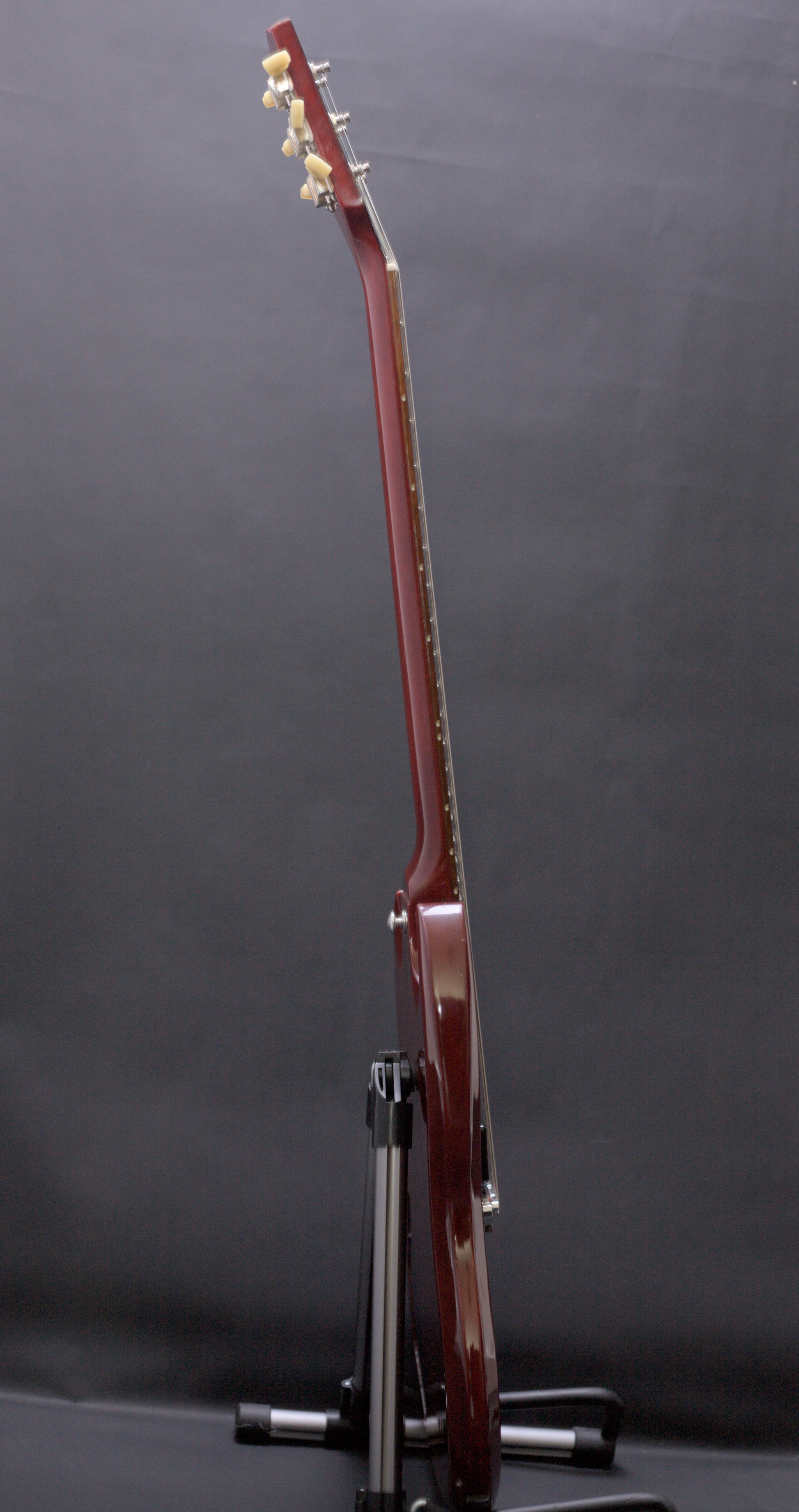 At just 5lbs 13oz this is a lightweight rock n’ roll monster. It has a mahogany body, mahogany neck and dark baked maple fretboard. It features a killer single dog-ear P90 pickup, wrap around stop tailpiece and is finished in classy gloss Heritage Cherry.