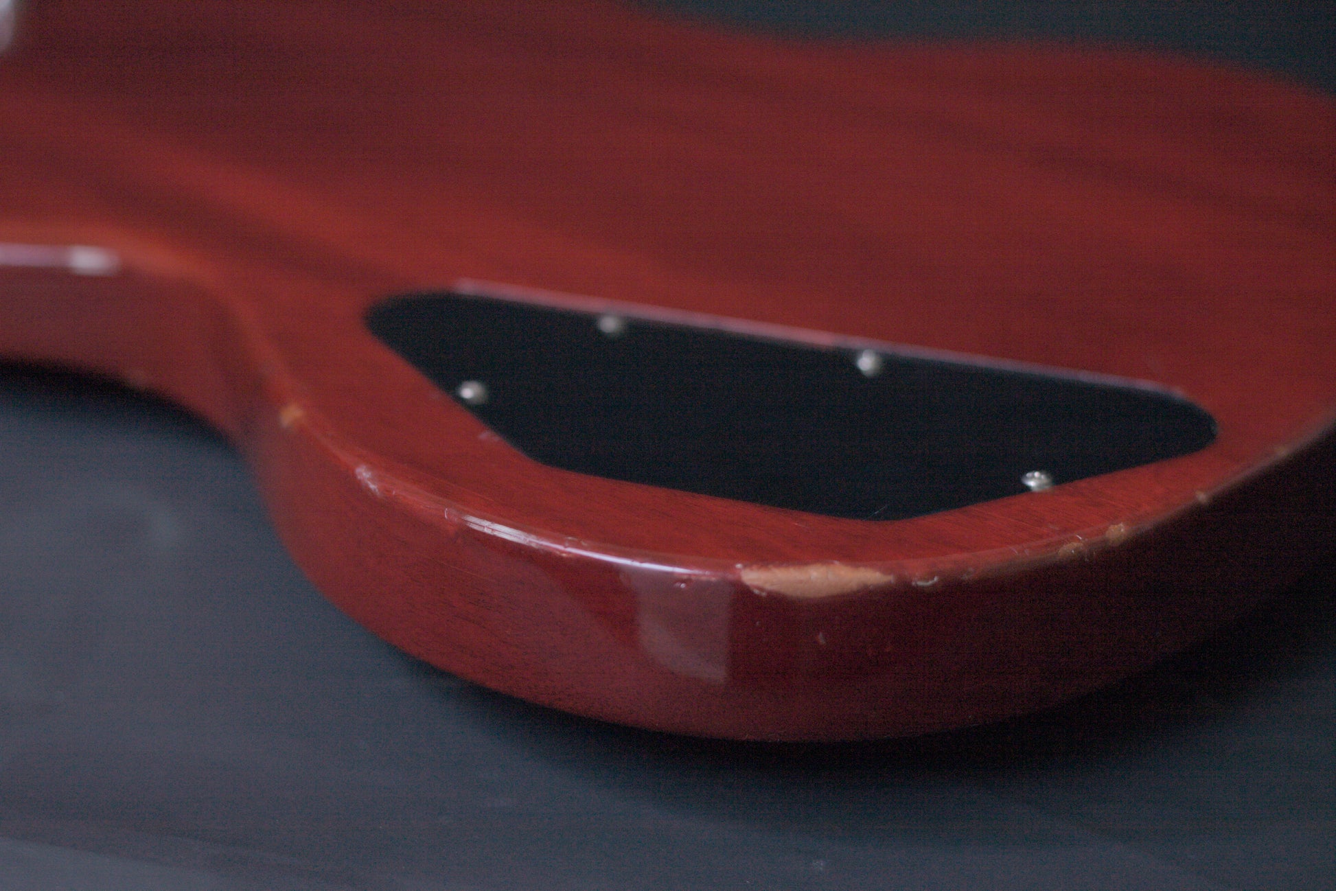 It is 100% original and there are no breaks, cracks or repairs. As with many of the best playing instruments, it has been played and has picked up some nicks and dings. These are most noticeable to the edge of the body. There are a few further dings to the front of the body, a couple to the neck (which don’t impact on its playability at all), there is a dent in the pick up cover and a scuff to the top of the headstock. These are all shown in the photos. The frets are in good shape.
