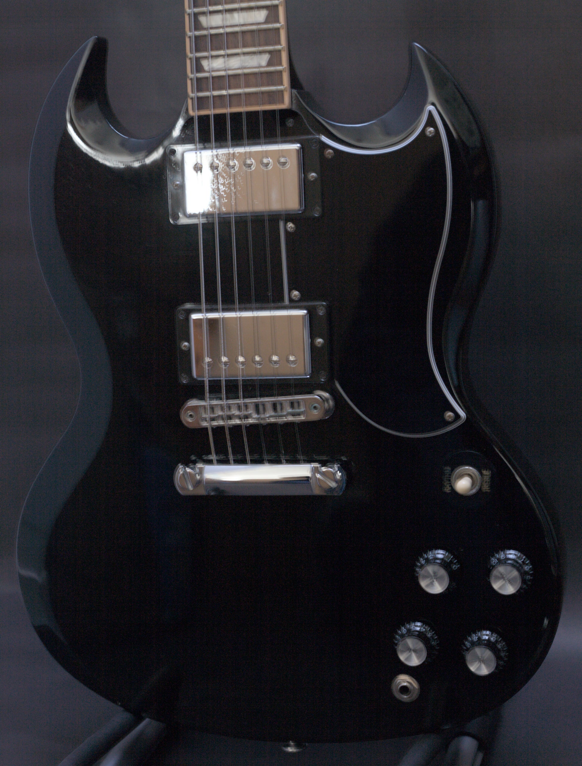 This is an absolute rock monster! This US-made SG Standard in stunning high gloss nitrocellulose ebony sounds superb and plays beautifully.