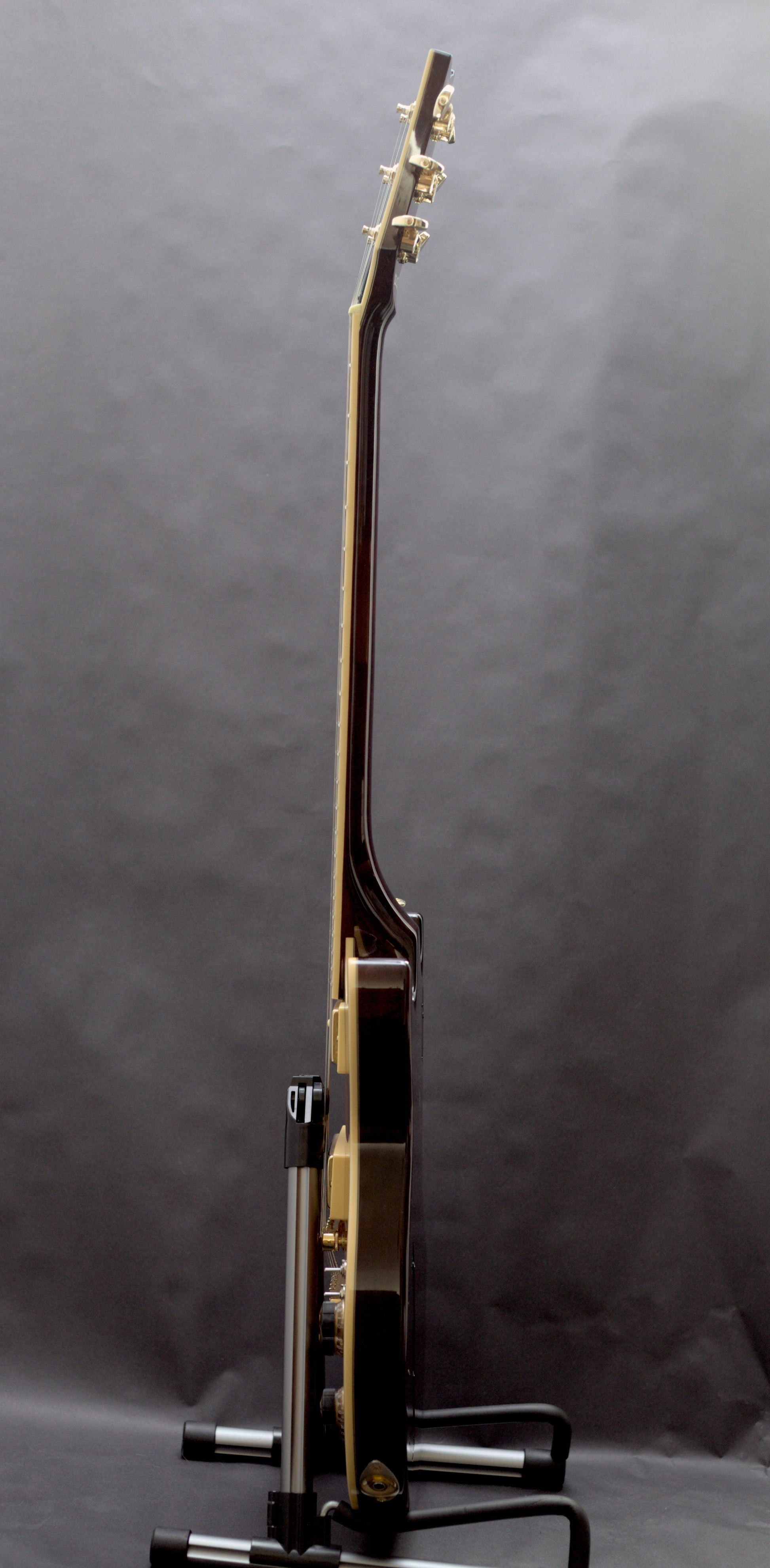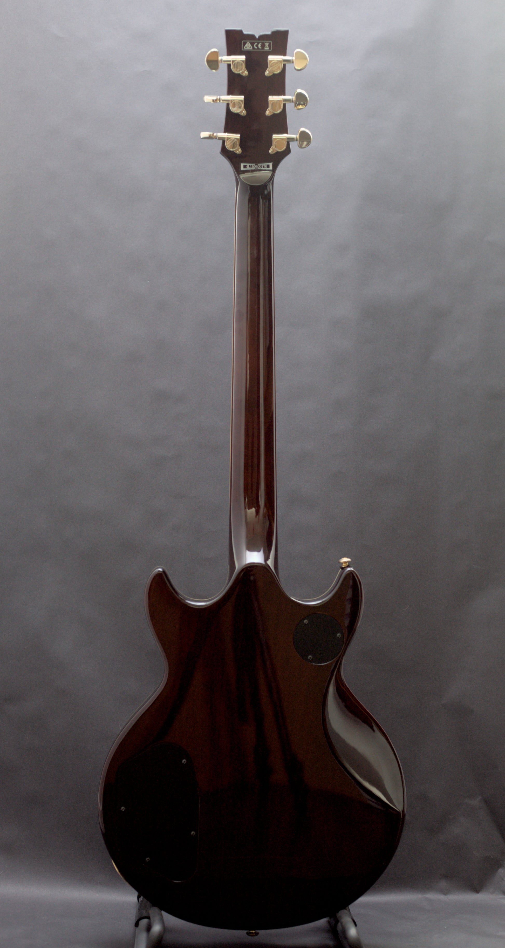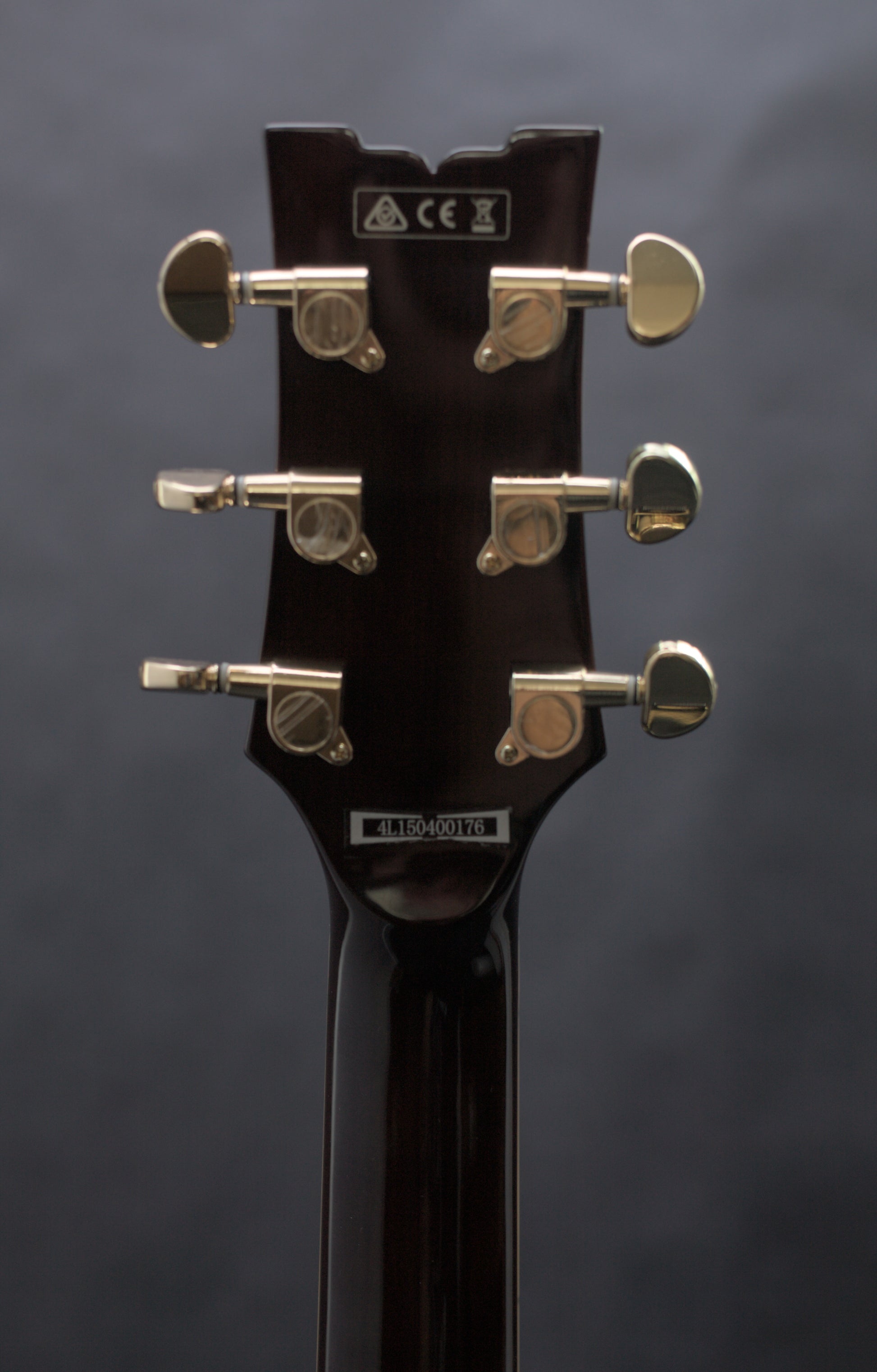 Premium features include a stunning arched flame maple top, binding to the neck and headstock and body, abalone purfling, abalone split block inlays, 2 Mini switches for Tri-Sound, humbucker – single coil – humbucker parallel circuit and classy gold hardwear.