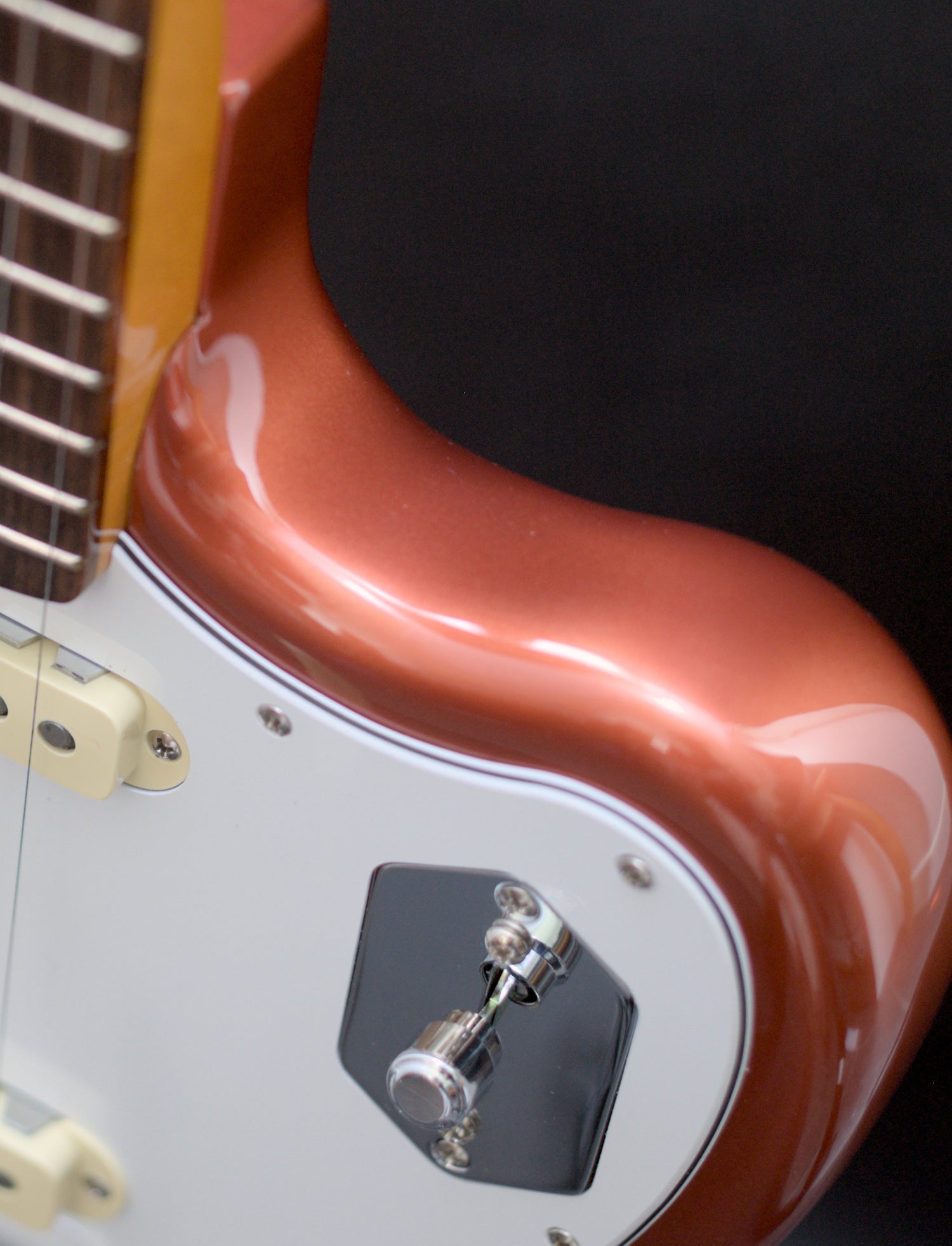 - Maple neck based on Marr's 1965 Jaguar, with custom profile and vintage-style heel truss rod adjustment