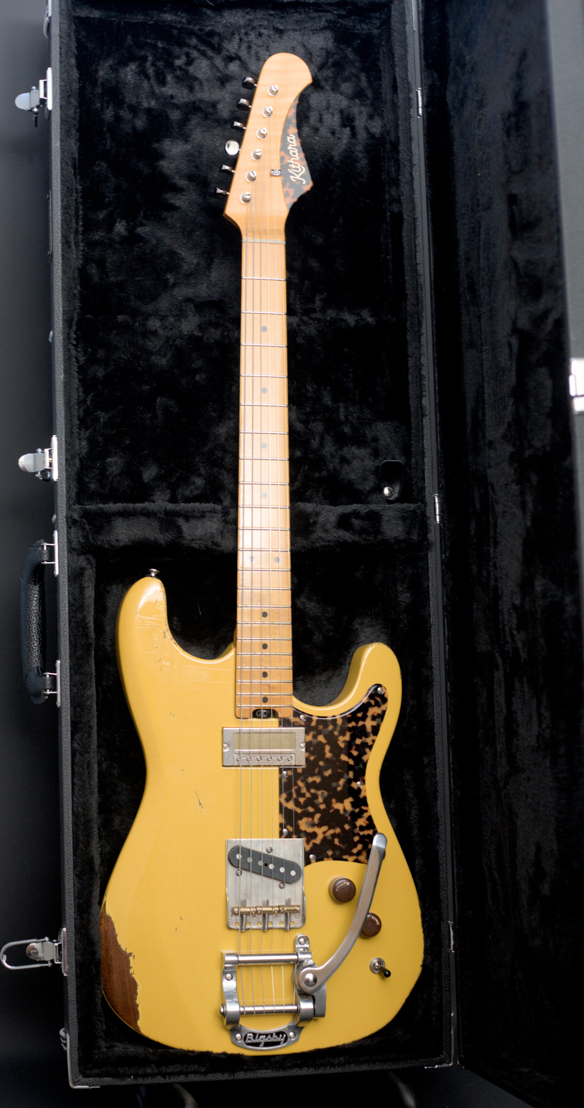 This awesome handcrafted instrument, by boutique Irish builder Kithara (https://www.kitharaguitars.com) has got to be the most rock and roll guitar with some of the best relicing we have ever seen!