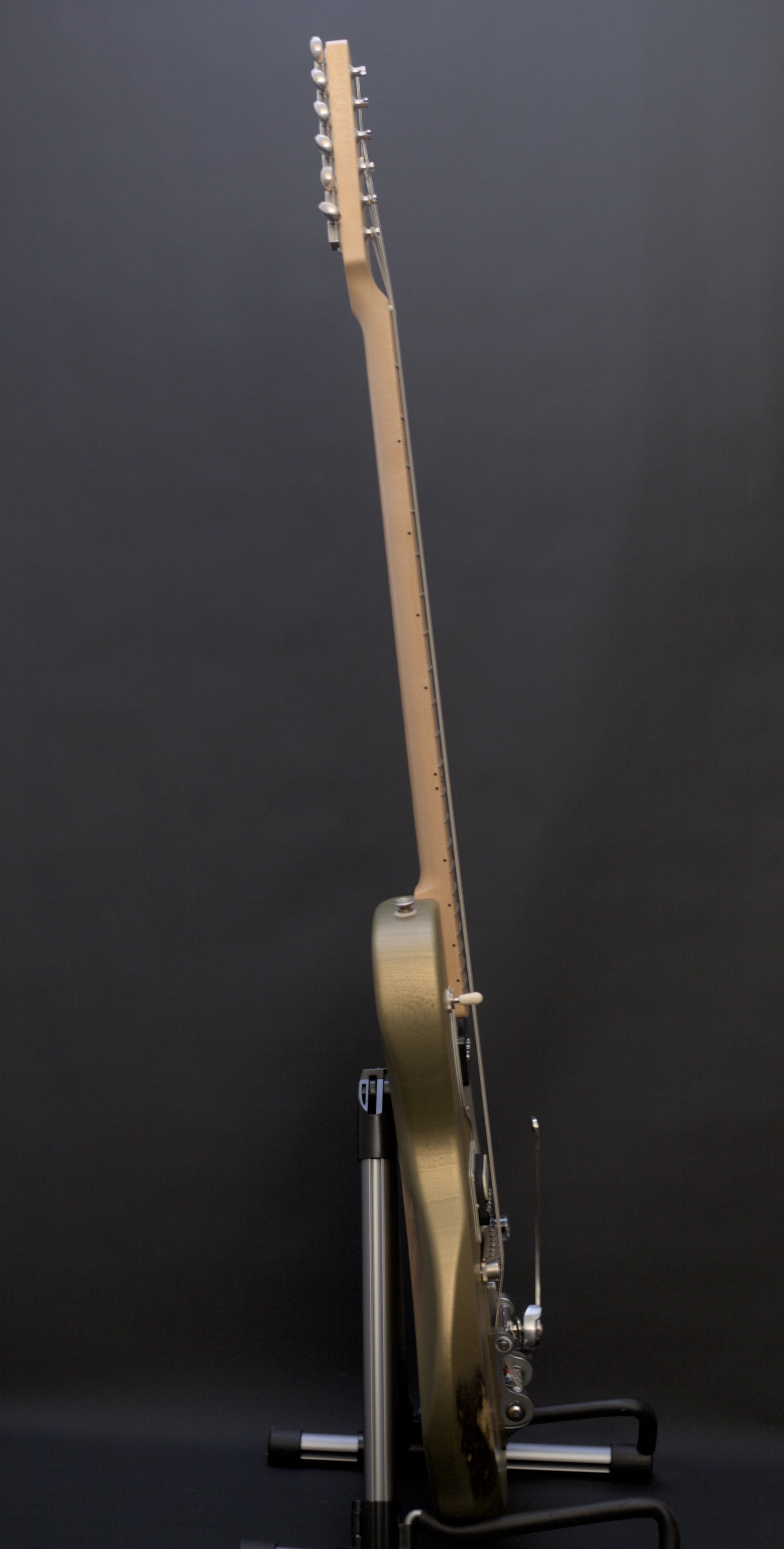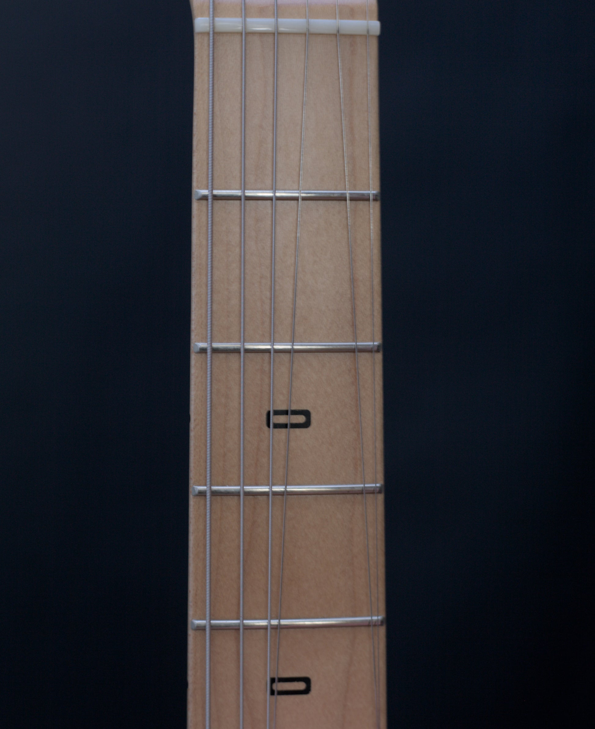 The Maple neck sits comfortably in the hand, with the Standard ‘C’ neck profile feels incredibly ergonomic, allowing for great thumb placement all across the neck, whilst the Nitrocellulose finish provides effortless transitions. The Maple fingerboard and frets provide a robust playing experience that feels rock solid under the fingers, whilst enhancing string bending and vibrato techniques at speed. The 10” Radius provides an even and balanced feel across the strings, aiding in even tension across the string and up and down register. The single-cutaway body design provides the player with unobstructed access to the higher frets, whilst the light weight aids with comfort in both standing and seating positions.