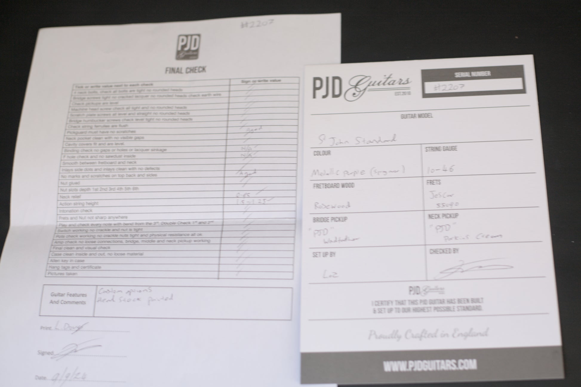 It is the only purple with matching headstock St. John PJD have produced so far (out of around 2000 made to date overall).