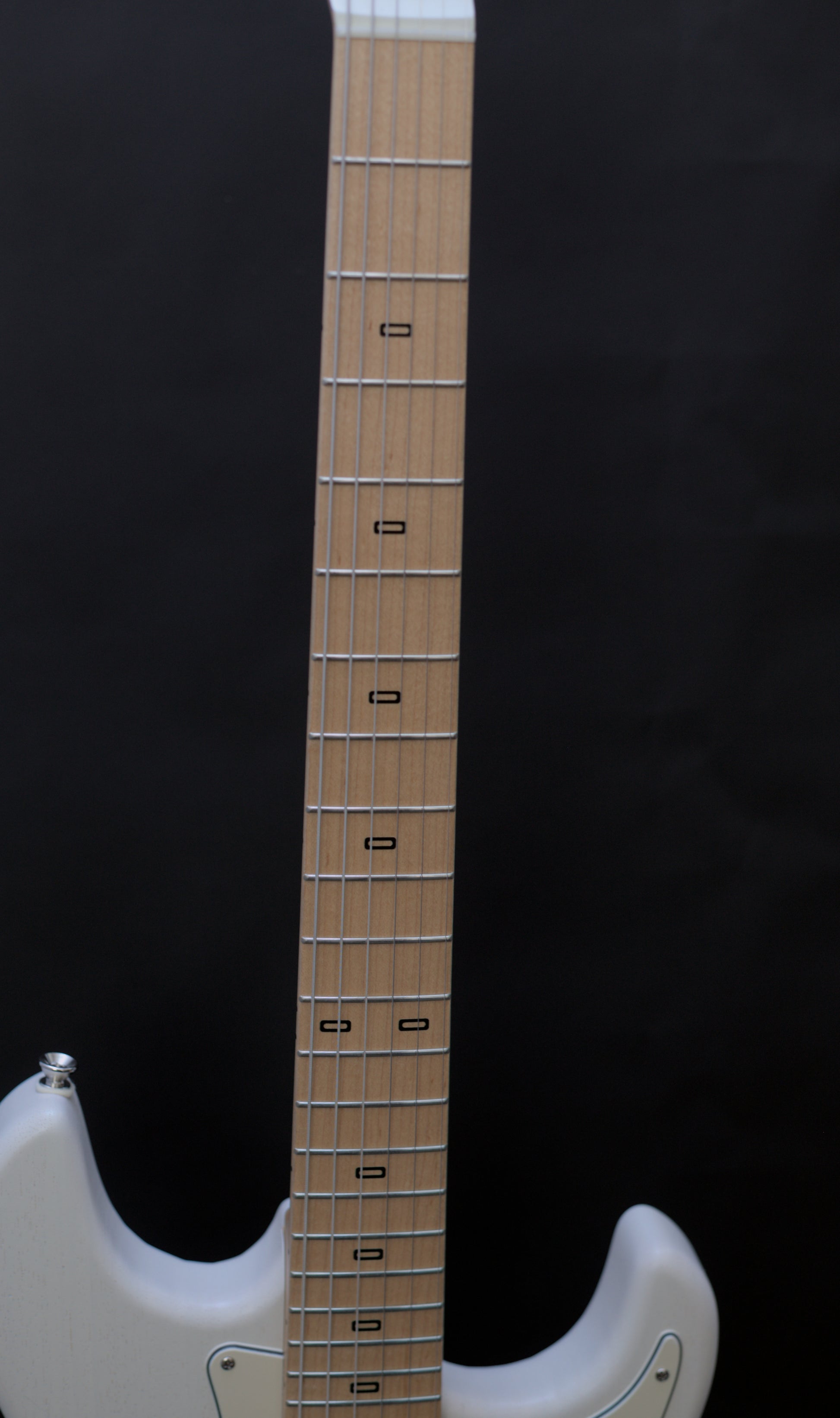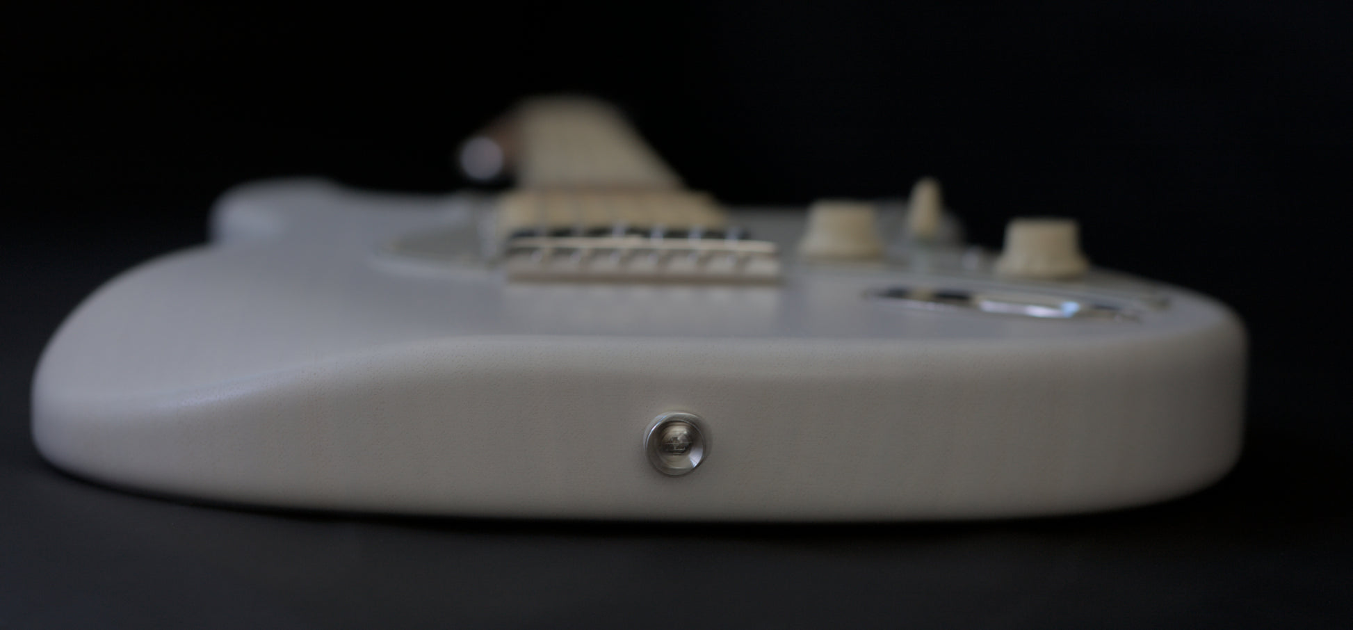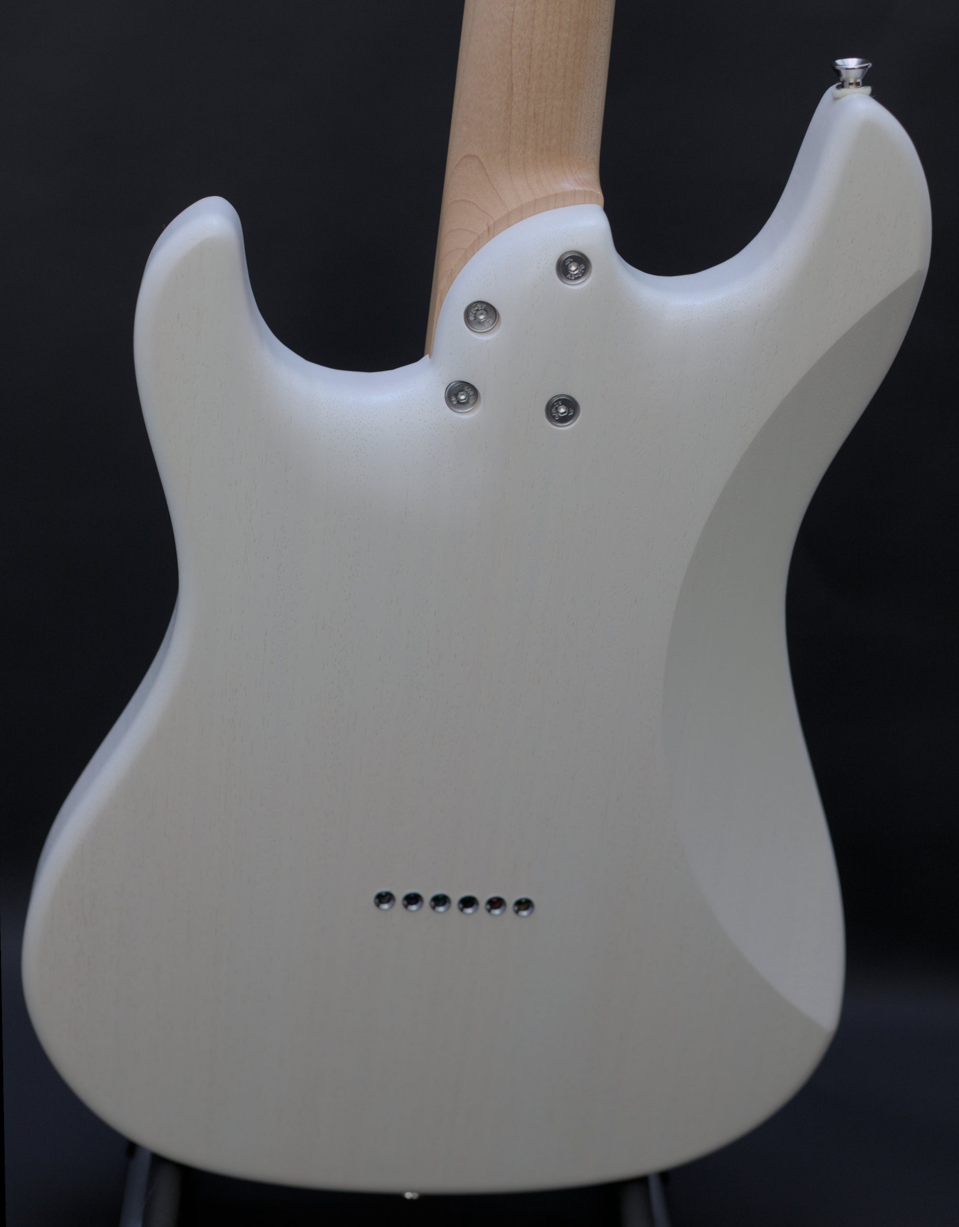 The ultra-thin finish, which shows the beautiful woodgrain, allows the guitar to mature and develop quickly. The matching headstock on this custom order elevates the look giving a ultra clean and modern aesthetic.